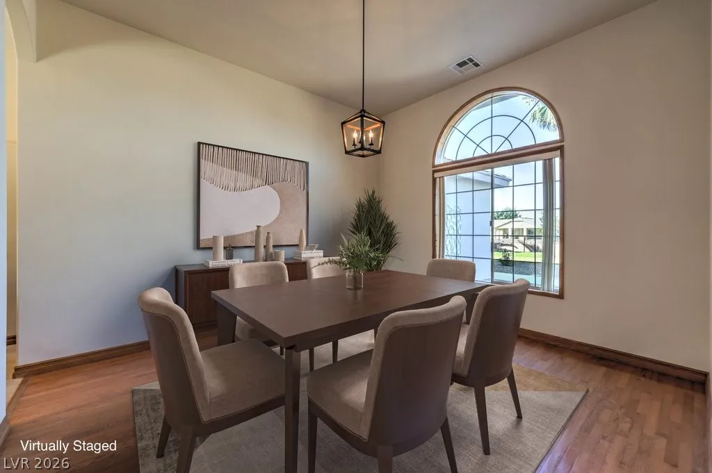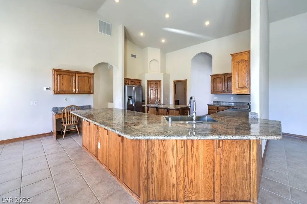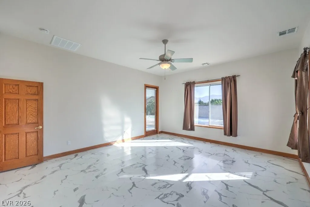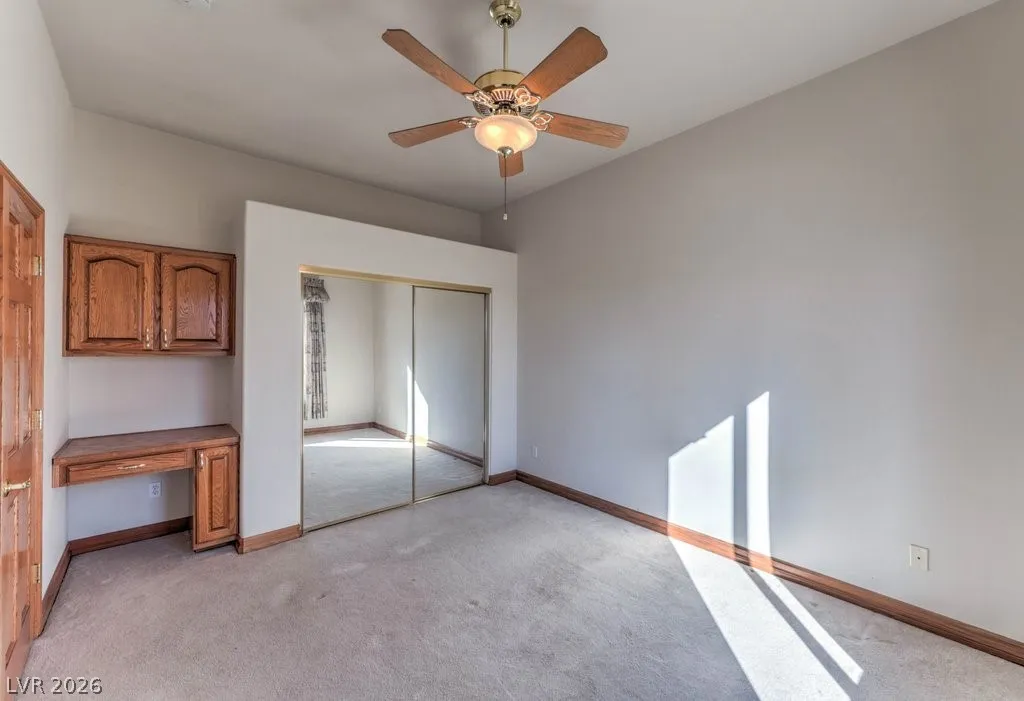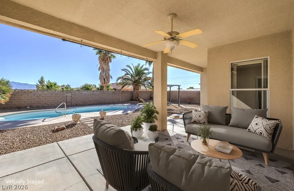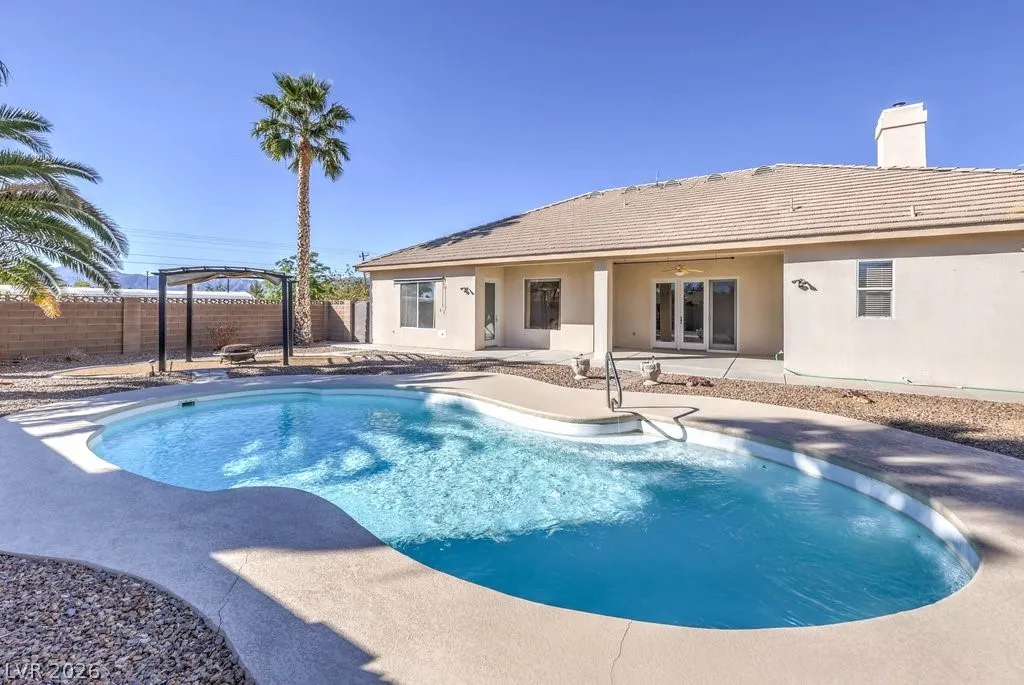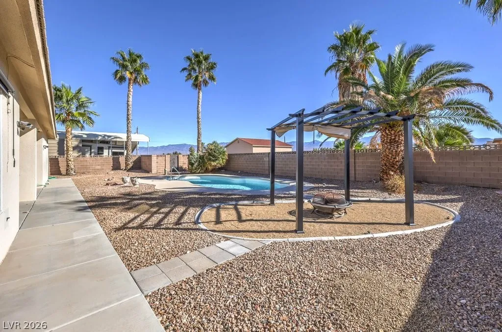 Dream property on 2.2 acres — perfect blend of comfort, functionality, & country luxury! Nearly 3,000 sq ft home features 4 bed + 4 bath. Kitchen is a chef’s dream w/granite countertops, stainless appliances, & ample cabinetry. Great room features vaulted ceilings, cozy fireplace, & wet bar. Formal dining room + chandelier-lit foyer set the tone for refined living. Primary suite offers pool access, walk-in closets, & 5-piece bath. Step outside to enjoy 6’-deep in-ground pool & beautifully landscaped grounds. Car enthusiasts and hobbyists will love the 876sqft attached garage, 1,800sqft detached RV carport + hookups, & massive 2,400sqft 3-bay shop complete w/car lift and 30/30/120 amp power. Horse lovers will appreciate the 1,296sqft barn featuring six 12×12 stalls, pen, arena, & separate gated access for easy trailer entry. With private well, septic system, multiple gated entry points, and garden area, this estate offers it all— one hour from Vegas + Harry Reid International Airport.