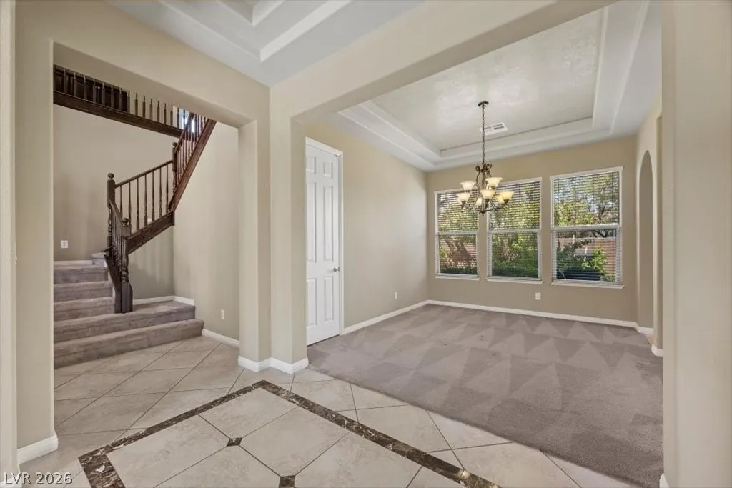 Spacious 4-bedroom, 3-bath home in the heart of Summerlin! Featuring 10-foot ceilings and elegant coffered detailing, this home offers both style and comfort throughout.