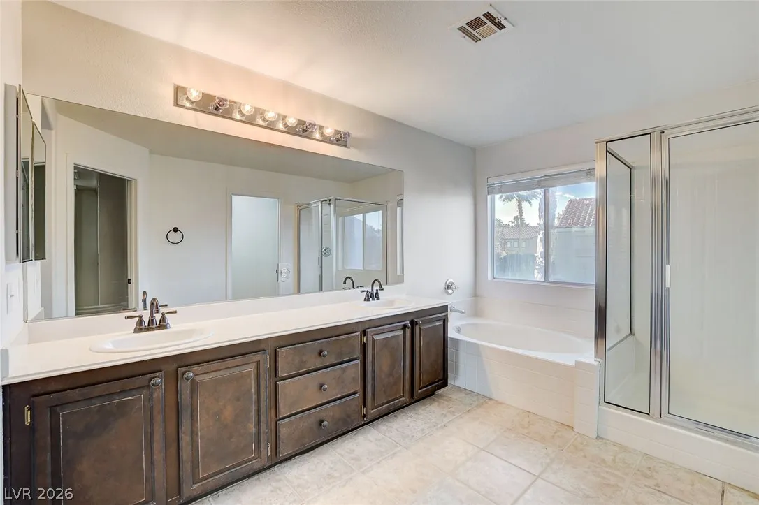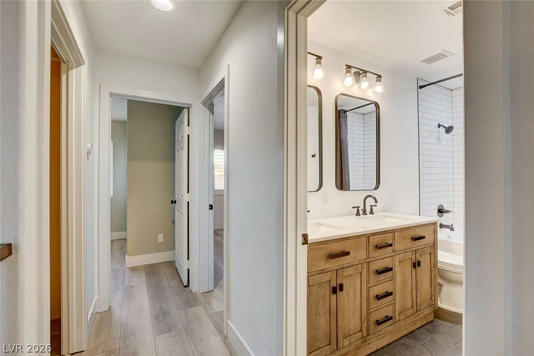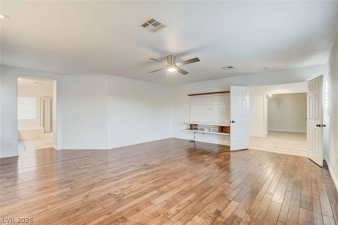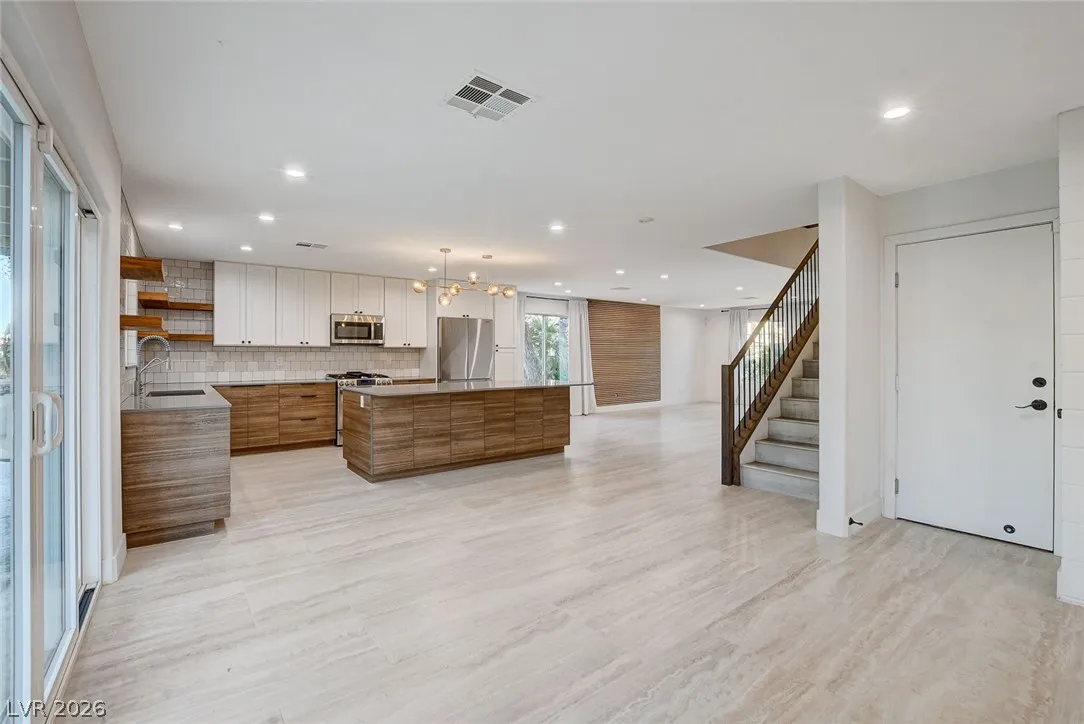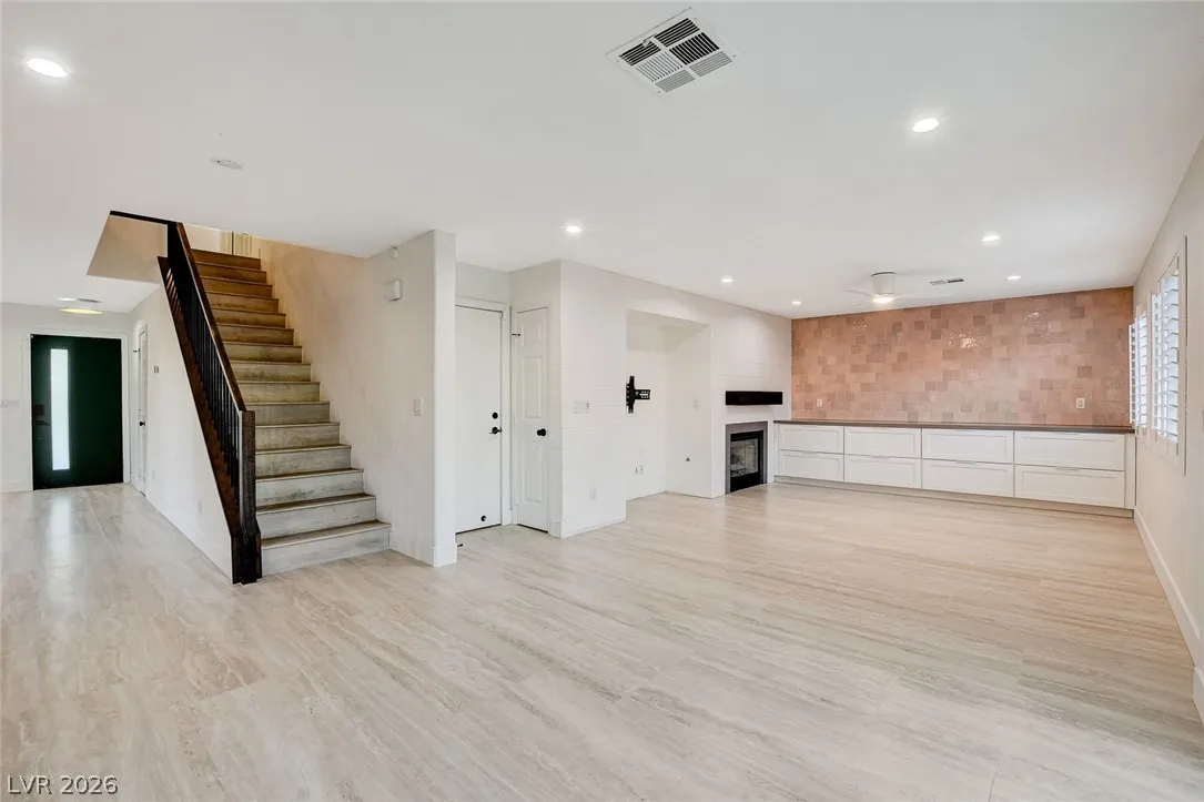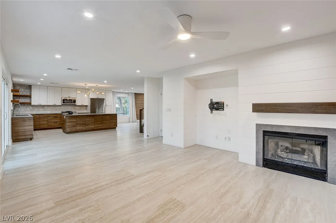 Stunning upgraded home in Peccole Ranch, situated on one of the largest lots in the neighborhood. This beautifully updated 4 bed, 3 bath home features open-concept living with designer finishes throughout. Step inside to a bright and expansive great room with wide plank flooring, recessed lighting, and a custom wood accent wall. The fully remodeled kitchen is a showstopper, complete with a large waterfall island, sleek cabinetry, stainless steel appliances, subway tile backsplash and stylish open shelving. Step outside to your private backyard oasis featuring a resort style pool with rock waterfall, hot tub, covered patio with pergola, built-in outdoor kitchen, fire pit seating area and lush landscaping with mature palm trees. Enjoy access to scenic walking trails, greenbelts, tennis courts and a prime location just minutes from Downtown Summerlin, shopping, dining, and entertainment. Homes with lots of this size and level of upgrades rarely come available—this is a must-see.