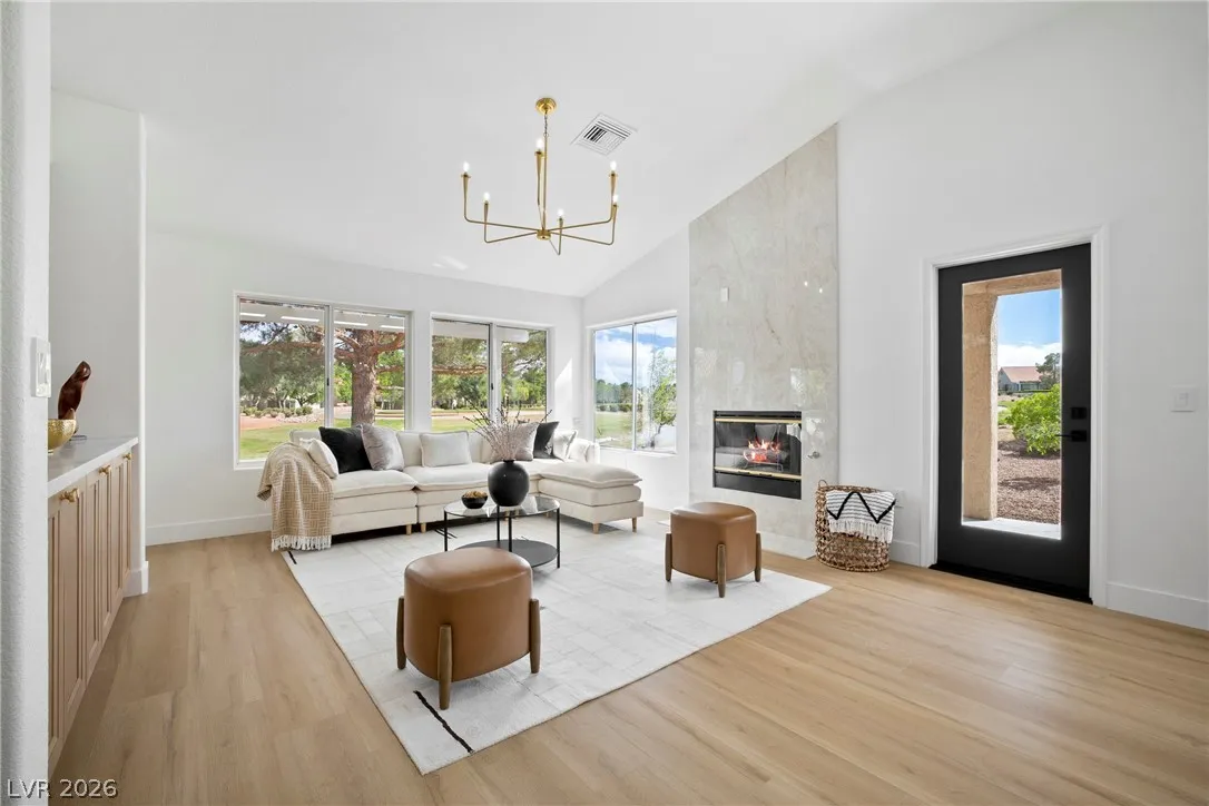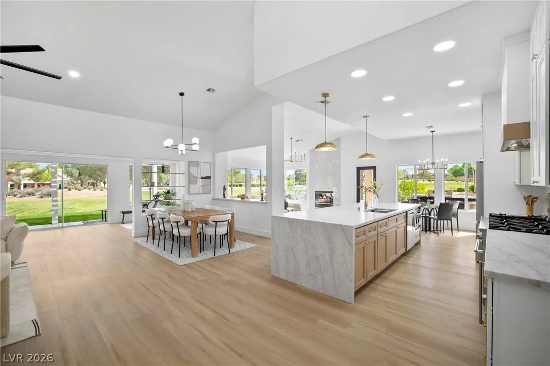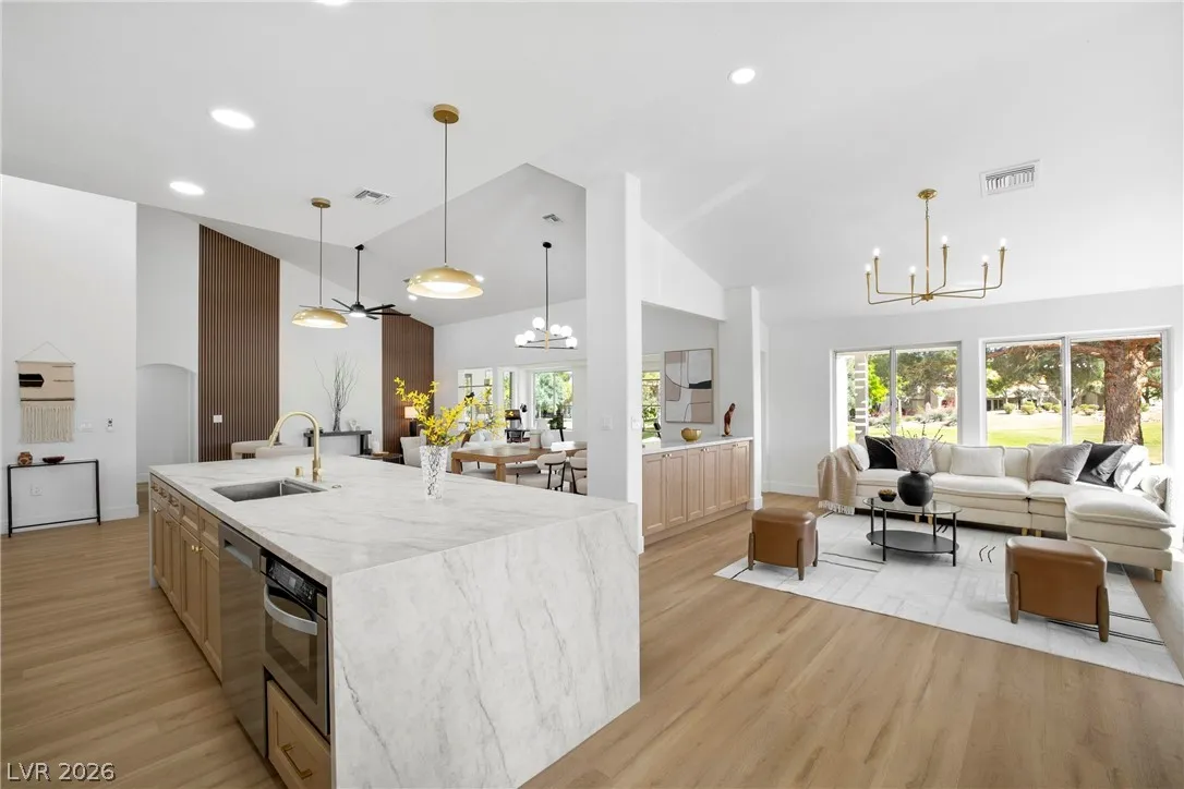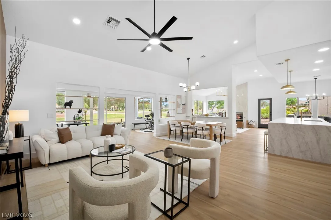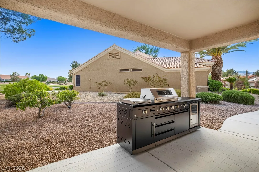 Rare opportunity to own a truly unique home set on a large premium golf course lot with stunning water, golf, greenbelt and mountain views. This updated 3 BR, 2.5 BTH home has an open layout, vaulted ceilings, new entry doors, luxury plank floors, gas FP and custom finishes. Gourmet kitchen with large quartz island, 8 burner double oven range, wine fridge, coffee bar & extensive storage. A heated/cooled builder’s rear extension offers addl sqft for office/gym. Primary suite has a spacious walk-in shower, soaking tub, closet built-ins, plus a multi-use room as a 2nd huge closet or hobby room. Entertainer’s dream yard with multiple sitting areas, pergolas, firepit patio, covered BBQ, garden room, and serene golf course and water views! Garage has golf cart parking, epoxied floors, storage, auto shut door, and new water heater and softener. Main A/C is just a few yrs old. This spectacular view home is truly a hidden treasure in the 55+ Sun City Community with clubs, pools, and golf.
