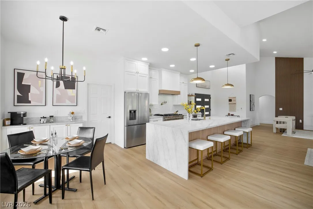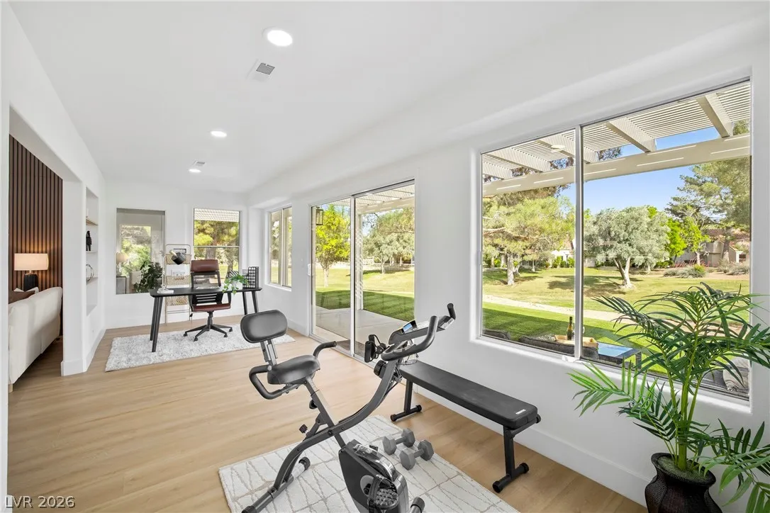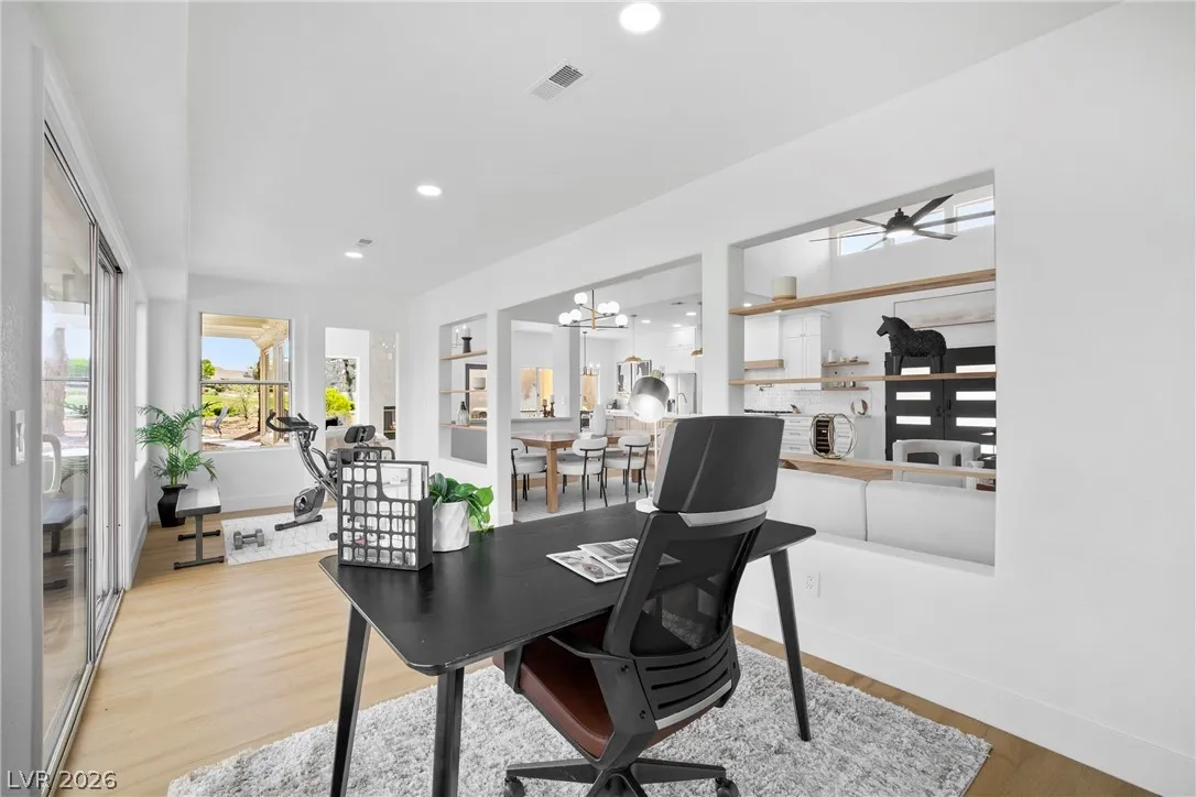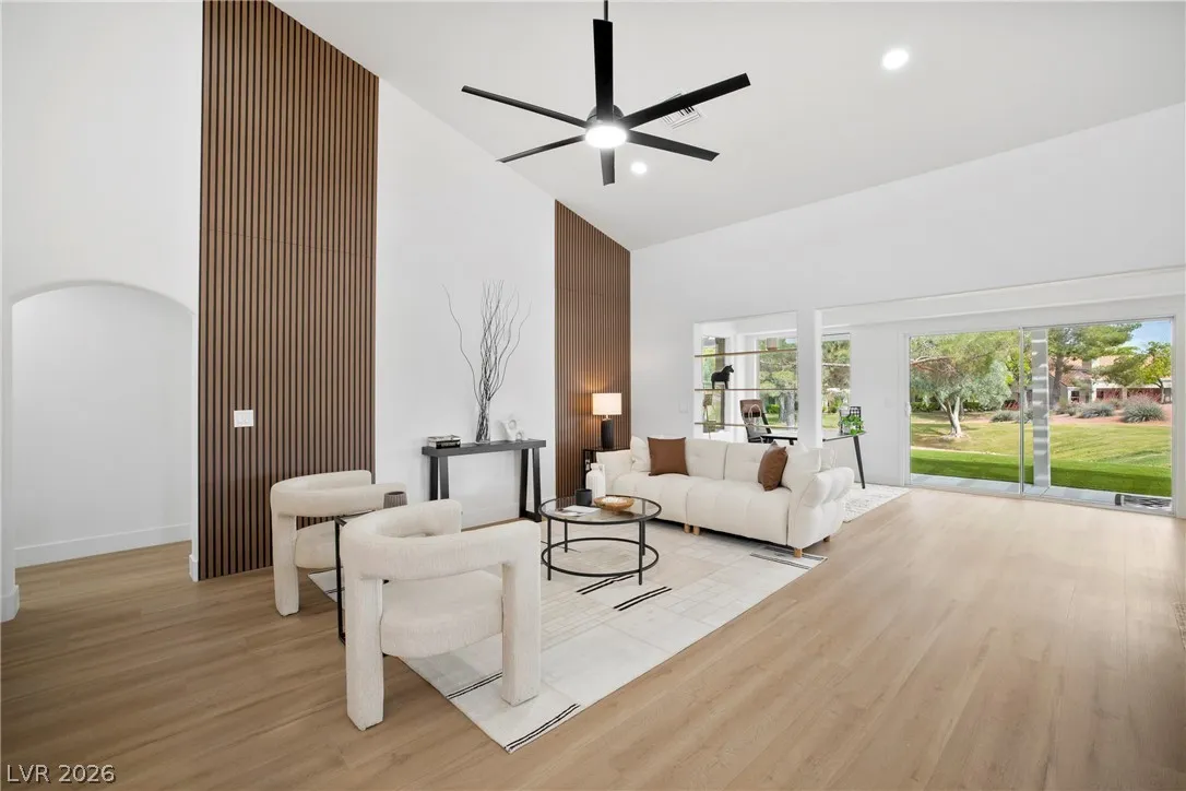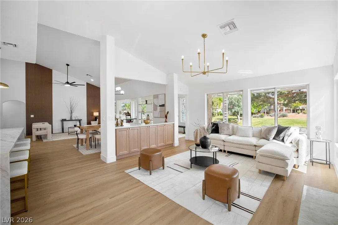Rare opportunity to own a truly unique home set on a large premium golf course lot with stunning water, golf, greenbelt and mountain views. This updated 3 BR, 2.5 BTH home has an open layout, vaulted ceilings, new entry doors, luxury plank floors, gas FP and custom finishes. Gourmet kitchen with large quartz island, 8 burner double oven range, wine fridge, coffee bar & extensive storage. A heated/cooled builder’s rear extension offers addl sqft for office/gym. Primary suite has a spacious walk-in shower, soaking tub, closet built-ins, plus a multi-use room as a 2nd huge closet or hobby room. Entertainer’s dream yard with multiple sitting areas, pergolas, firepit patio, covered BBQ, garden room, and serene golf course and water views! Garage has golf cart parking, epoxied floors, storage, auto shut door, and new water heater and softener. Main A/C is just a few yrs old. This spectacular view home is truly a hidden treasure in the 55+ Sun City Community with clubs, pools, and golf.