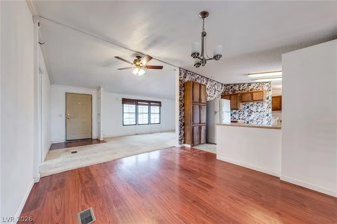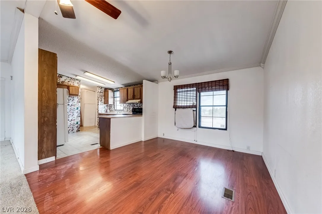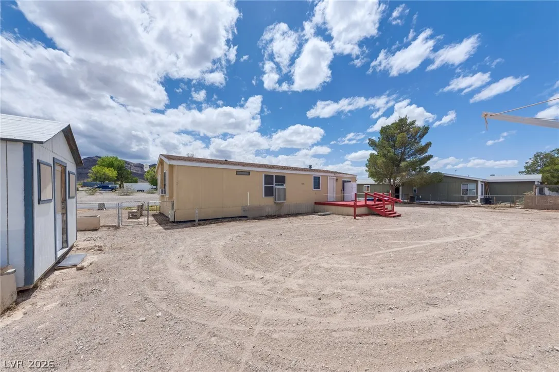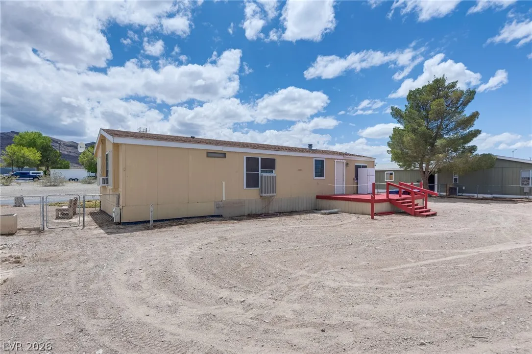 Welcome to affordable desert living in Indian Springs, NV. This 2-bedroom, 2-bath manufactured home—converted to real property—sits on a spacious 11,326 sq ft lot, offering room to expand, customize, or enjoy open space. The functional layout provides comfortable living areas, ideal for both owner-occupants and investors. The large lot allows for RV parking, additional structures, or outdoor entertaining under Nevada skies. Located just a short drive from Las Vegas and near Creech Air Force Base, this property offers a quieter lifestyle with convenient access to the city. Enjoy privacy, mountain views, and the charm of small-town living. A great opportunity to own real property in Southern Nevada at an accessible price point.