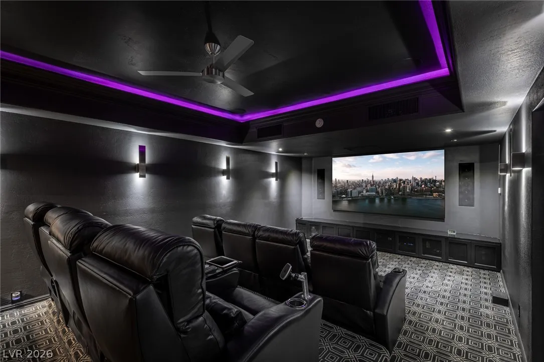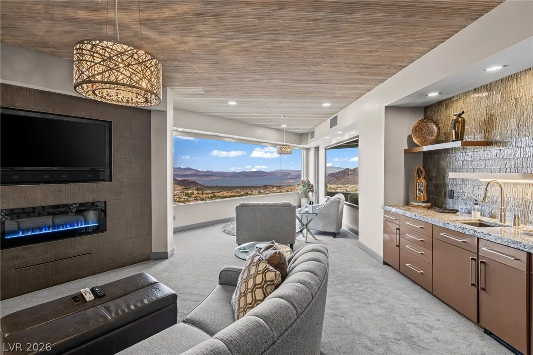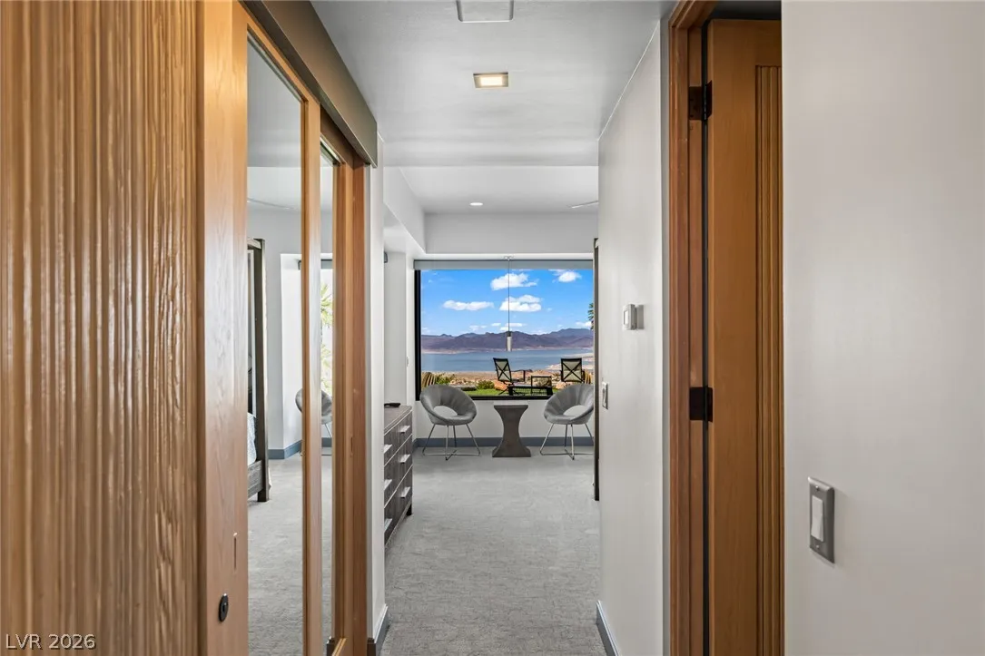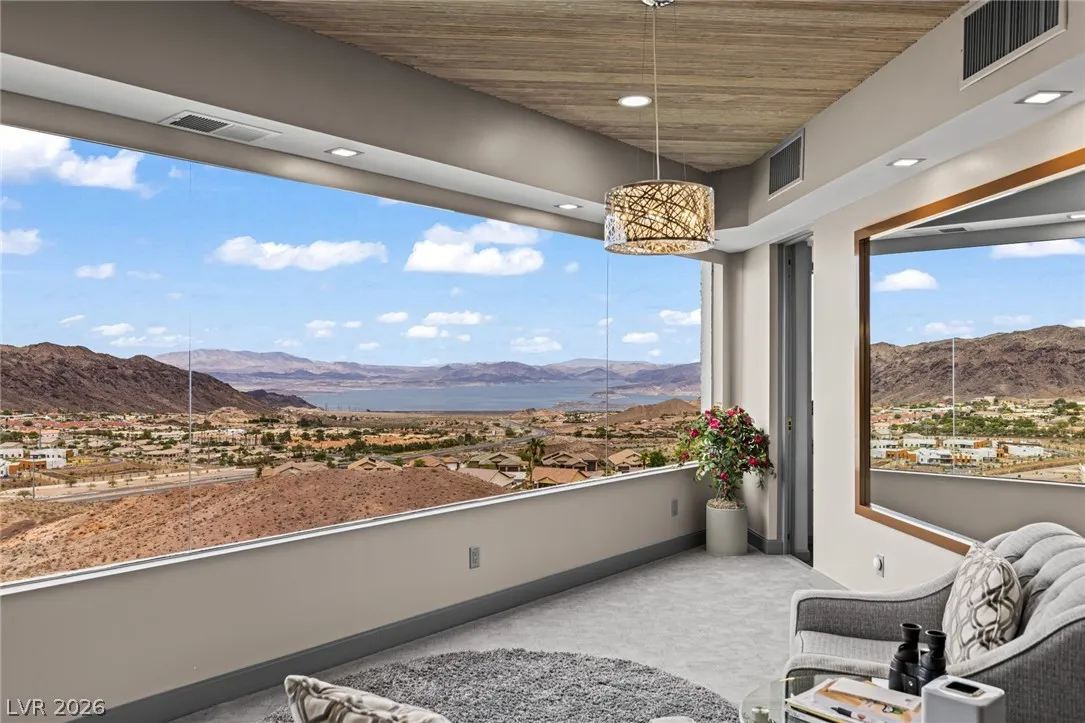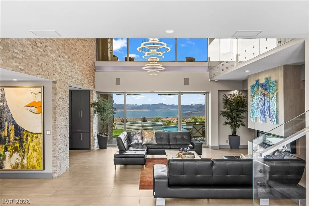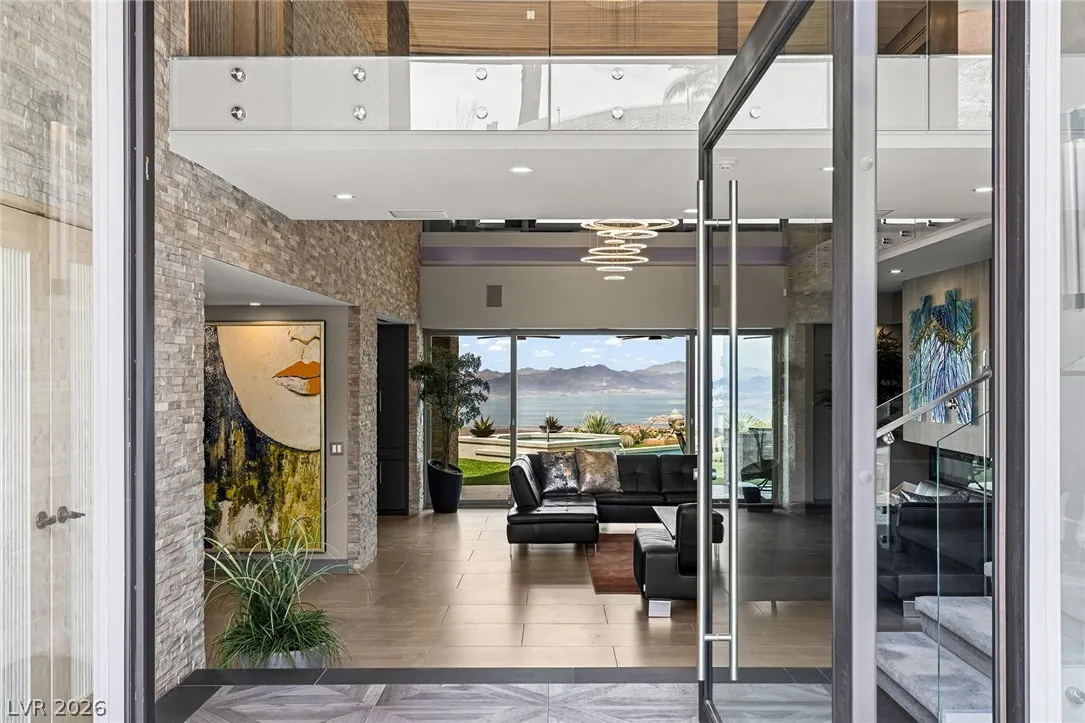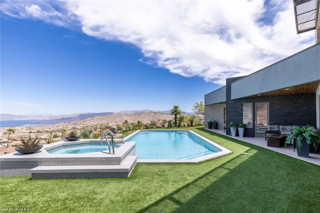 Perched on a prime .52 acre hillside estate overlooking Lake Mead and the surrounding mountains, this architectural gem is the crown jewel of Boulder City—presented to the market for the first time ever. Recently reimagined with a contemporary remodel, the home is bathed in natural light, offering lake views from nearly every room. The primary suite is a true retreat, boasting dual bathrooms, dual closets, and panoramic vistas to wake up to each morning. Three additional ensuite bedrooms, a movie theater, executive office, and expansive living spaces make this residence as functional as it is striking. Outdoors, a motor court, extended driveway, 3-car garage, RV / boat garage, and a collector’s garage with car lift, while the elevated grounds provide endless entertaining possibilities. Walking distance to Old Town’s shops, cafés, and parks—with no HOA—this home blends small-town charm, modern luxury, and boundless freedom. Opportunity for expansion, adjacent lot available for purchase.