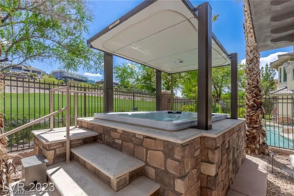 Wow! Rare opportunity for a SINGLE STORY golf course frontage home of the 8th fairway of the prestigious, Dragon Ridge Country Club! Enjoy a ONE-OF-A-KIND home in Henderson’s most exclusive guard gated community, MacDonald Highlands. Enjoy the views of the country club, mountains & multi- million dollar luxury estates on the hill. Enter through your private enclosed courtyard to a spacious & open concept 3 bedroom + office/den, 2.5 bath & 3 car garage floorplan. Enjoy luxury features such as all real hardwood, slate & travertine flooring, STUNNING Chefs Kitchen w/ granite countertops, stainless steel appliances & European wood cabinets! MASSIVE Primary Bedroom with dressing room, large closets & spa-like bathroom. Serene backyard setting with a “spool” spa that w/ automatic pergula covering! Home includes SOLAR PANELS, built-in home audio speakers & more. TOO MANY upgrades to list! 700+ minimum FICO to apply. Contact listing agent JORDAN BETTEN by PHONE/TEXT for more details & showing.
