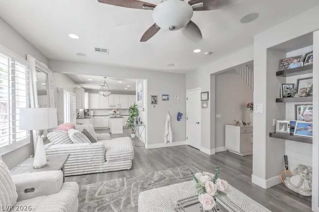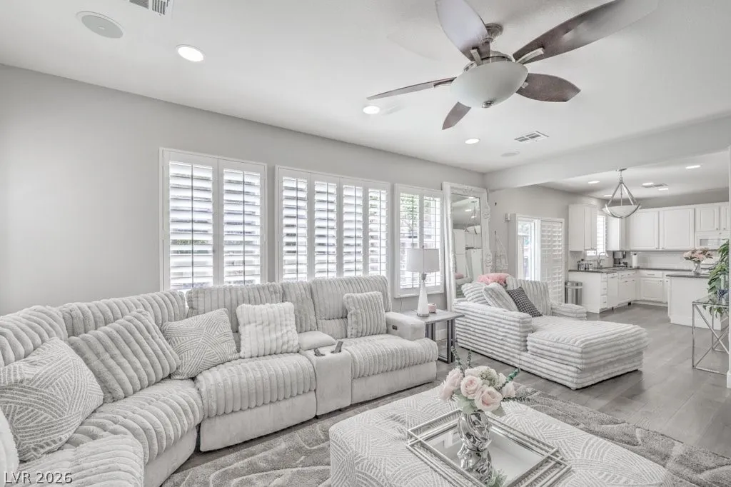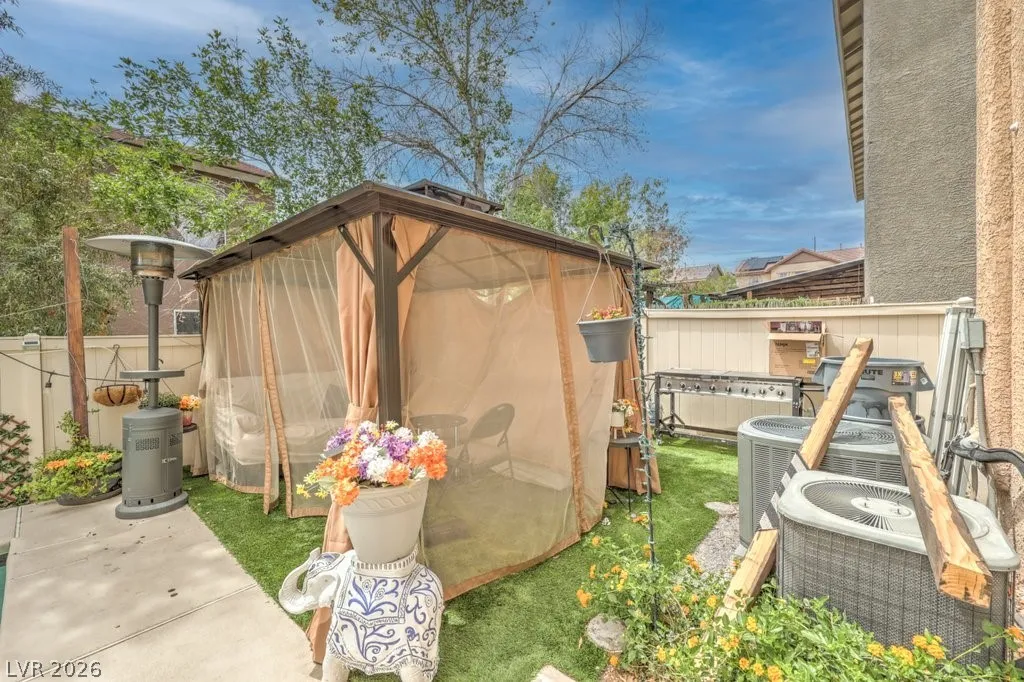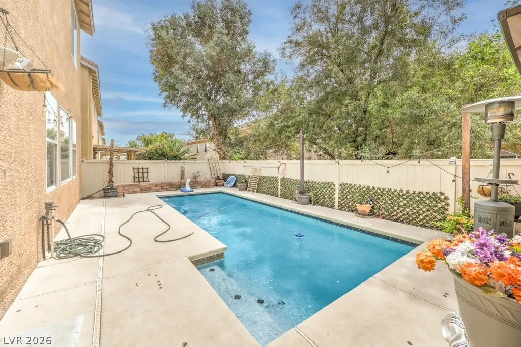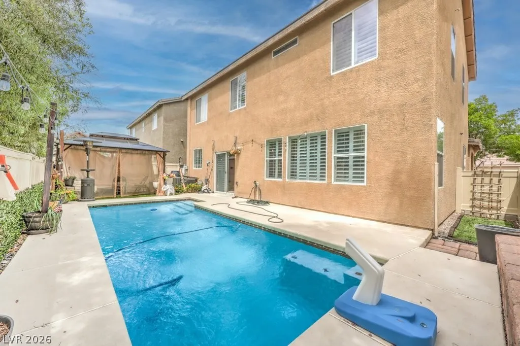 Located in the heart of Centennial Hills, this upgraded 5-bedroom, 2.5-bath home features a private pool—perfect for relaxing or entertaining—and offers an elegant, upgraded feel and appeal throughout. Positioned across from a park, the home includes low-maintenance turf, a gazebo that conveys, exterior LED lighting with customizable colors, and security cameras.