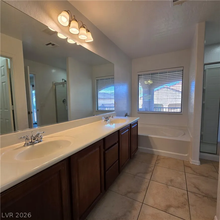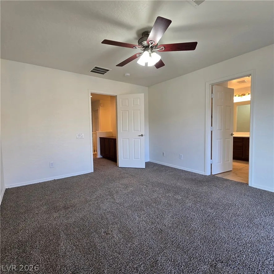 Upstairs, the spacious primary suite offers a walk-in closet, private balcony, and an attached bathroom with dual sinks and a separate tub and shower.