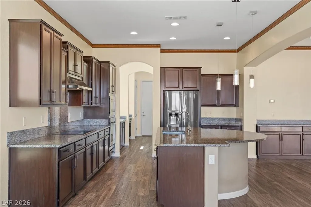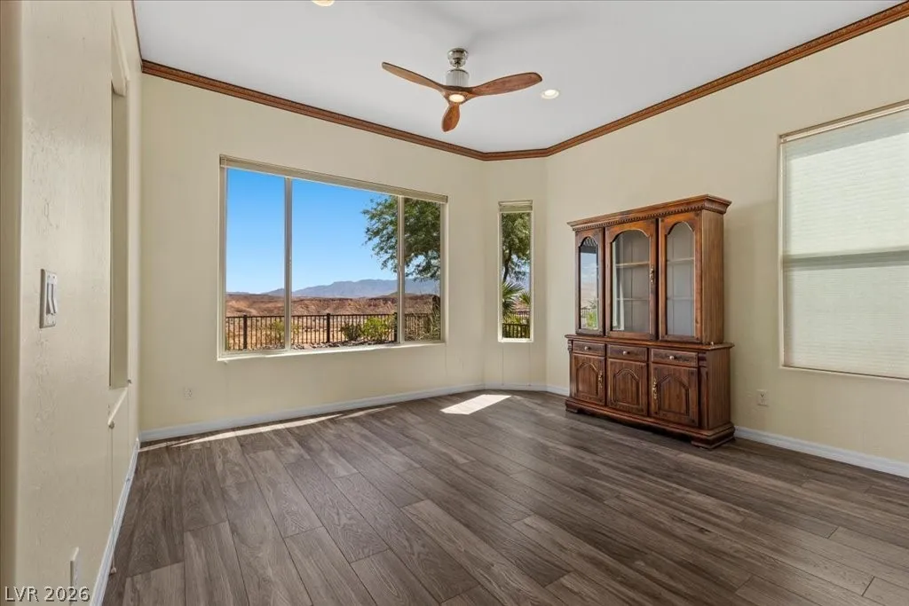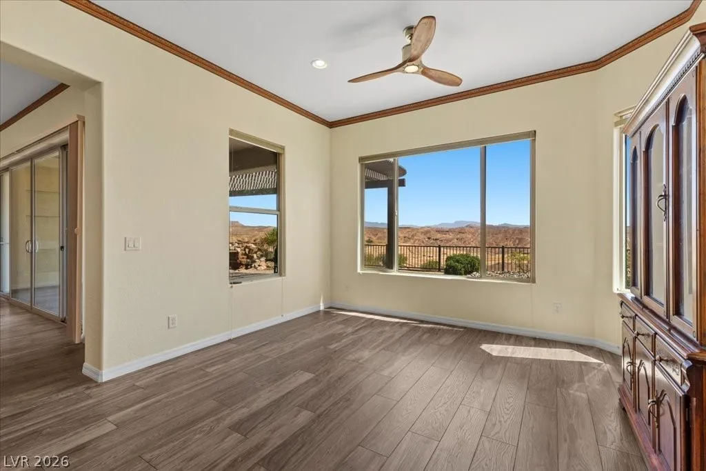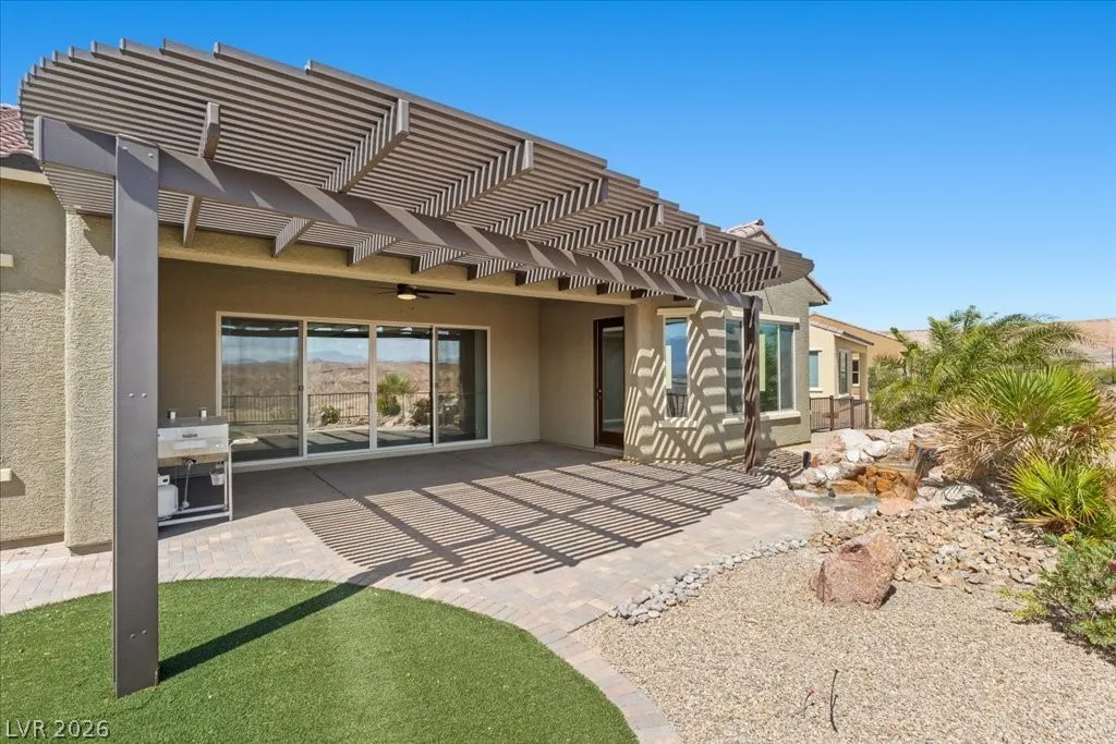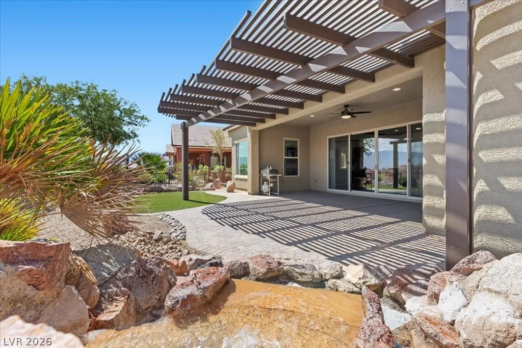 Welcome to an absolute masterpiece! This single story home rests inside the premier 55+ community of Horseshoe Pass. This home showcases a grand entrance through the courtyard that welcomes you inside this 3 bedroom, 3 bathroom home with a functional den. The generous size family room amazes with an open layout that presents a dynamic view out of the luxurious, seamless multi-panel sliders overlooking the views. The kitchen offers stainless steel appliances, an island that provides a breakfast bar, granite counter tops and dining area off to the side with stunning views. The primary bedroom offers size with more views from the bay window with an exiting door to the back yard. The primary bath provides double sinks, make up table and expansive walk in shower. One of the other guest bedrooms provides it’s in suite bathroom as well. The resort style backyard is second to none with unmatched character! Enjoy the shade under the covered patio and capture the astonishing views!