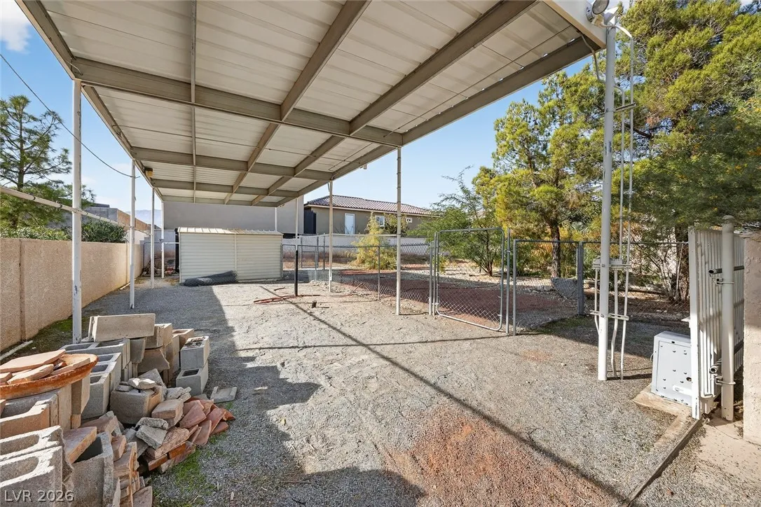 from the main home. Outdoor features include covered RV parking with hookups, a short-range archery cage, mature