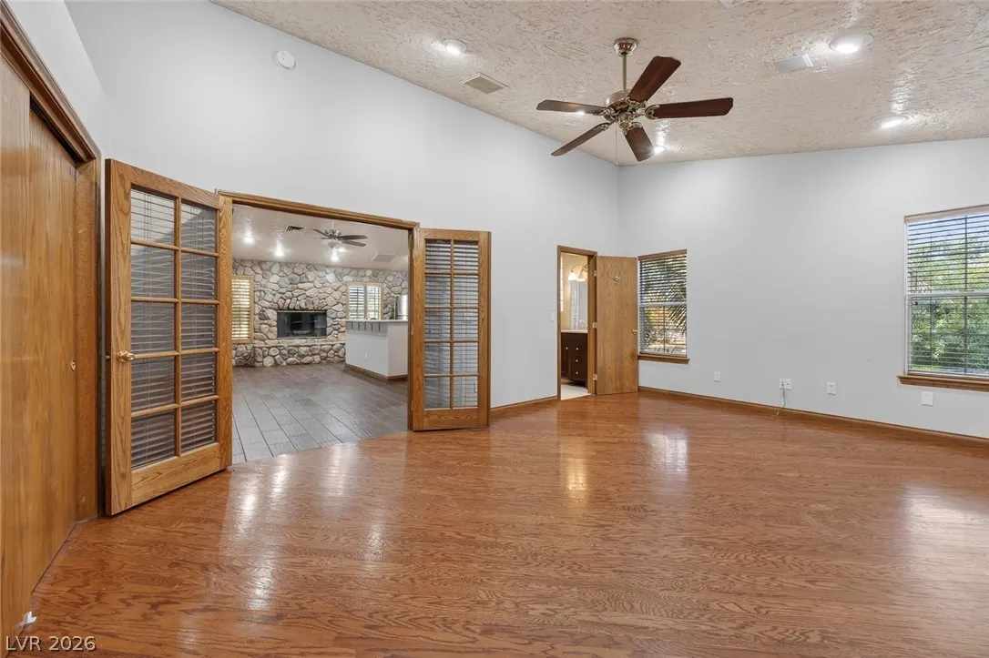 Expansive single-story ranch home on a large lot with flexible living spaces, multiple entrances, and no HOA. The