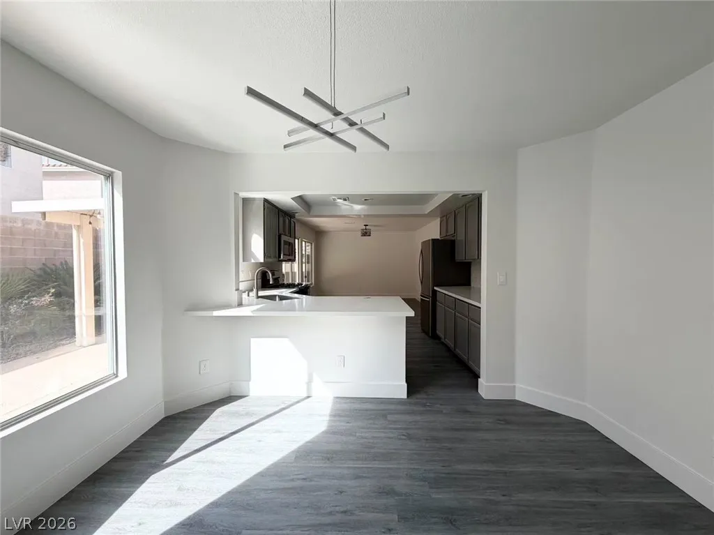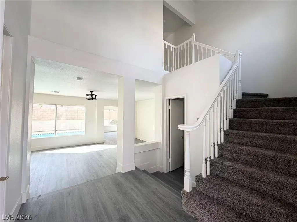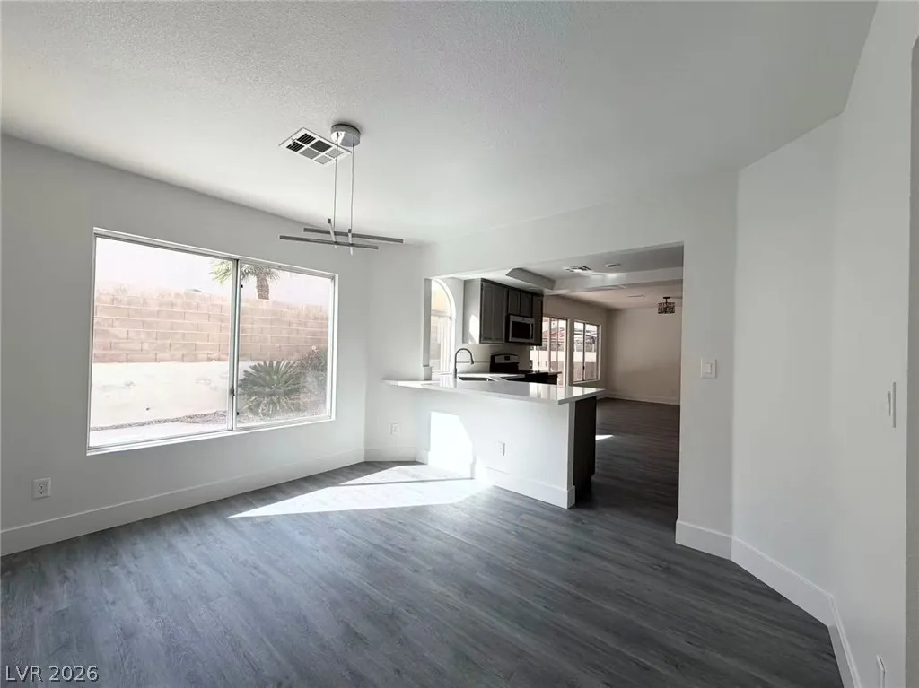 Rent Included trash and pool Maintenance fee. Beautifully renovated and move-in ready home located in the heart of Green Valley, featuring a bright, open-concept layout with modern upgrades throughout. Step inside to spacious living and dining areas filled with natural light, highlighted by new luxury flooring, fresh designer paint, and updated lighting fixtures. The fully upgraded kitchen offers ample cabinetry, sleek countertops, stainless steel appliances, and a functional layout that opens seamlessly to the main living spaces—perfect for everyday living and entertaining. The adjacent dining area overlooks the backyard through large windows and sliding glass doors, creating an inviting indoor-outdoor flow