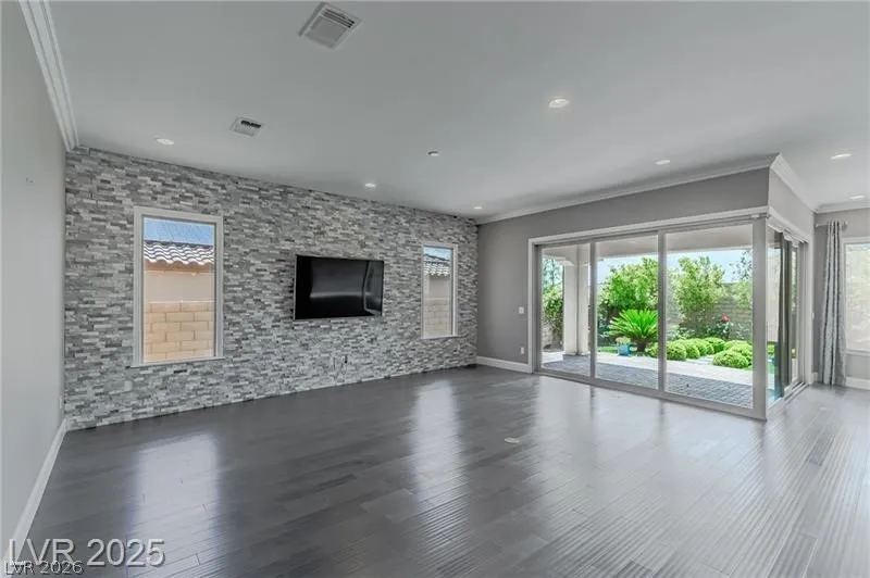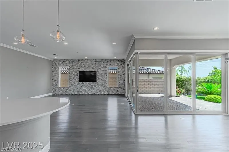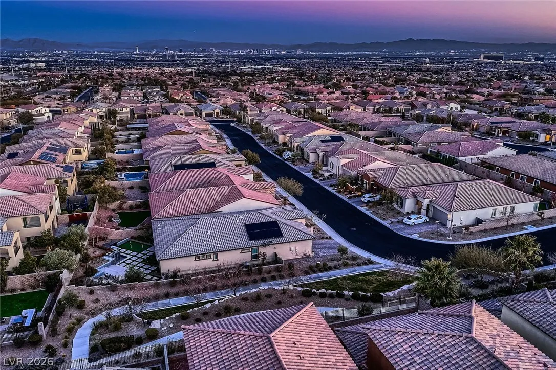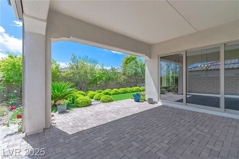Experience luxury living in this stunning one-story “Garden Home” located in Summerlin’s desirable Estrella community. This spacious four-bedroom residence features a gourmet kitchen with high-end appliances, a large granite island, and a flexible den perfect for a home office. Designed for entertaining, the living area features disappearing glass doors that open to a lush, private backyard filled with mature trees and a shaded patio. With its open floor plan, high-end finishes, and beautiful garden views, this home offers the perfect blend of indoor comfort and outdoor relaxation. *Full paid-off SID*