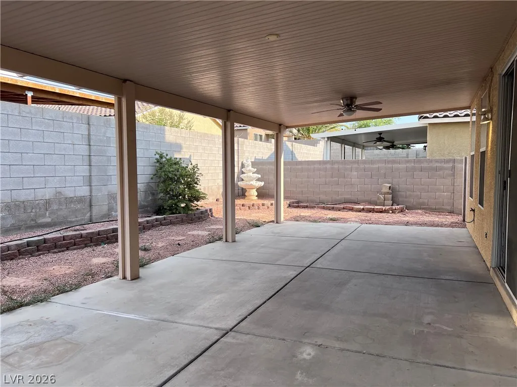 downstairs. The backyard is easy to maintain and includes a full patio cover. The two-car garage offers