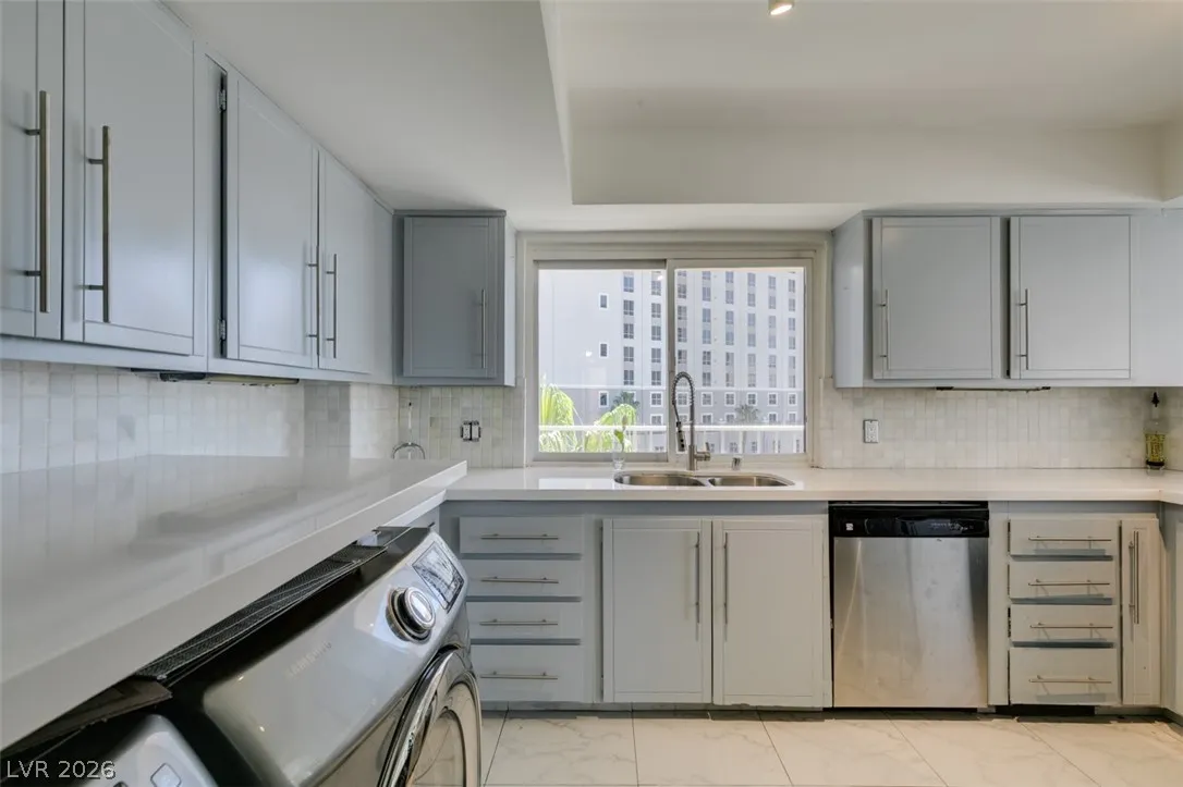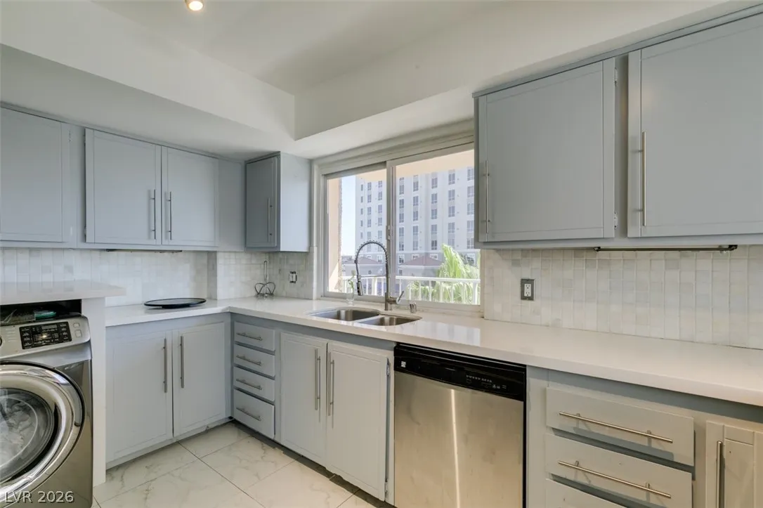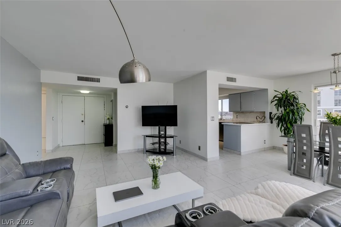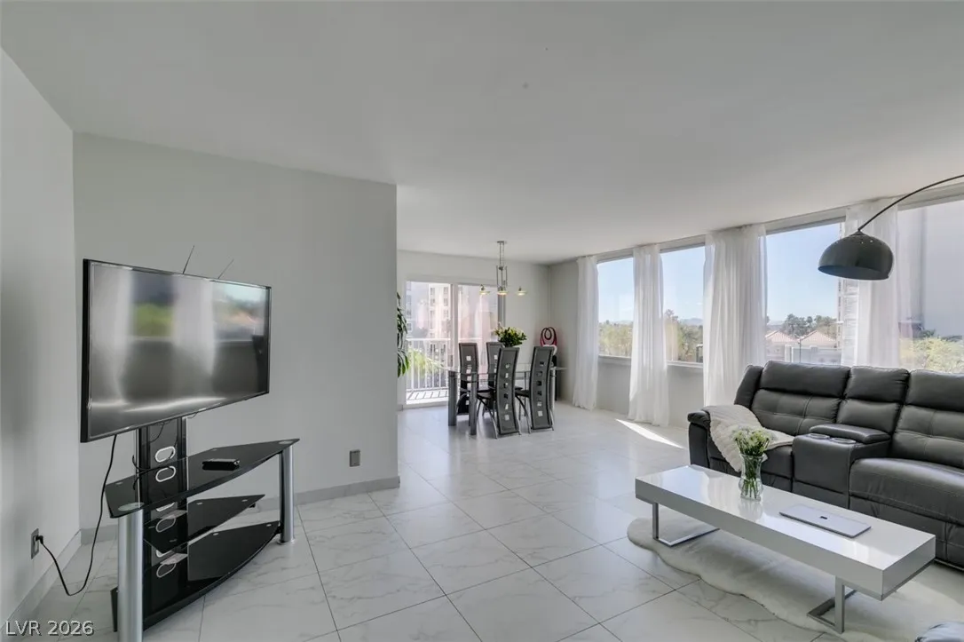 MOTIVATED SELLER! Unbeatable location and resort-style living! This beautifully maintained 2BR, 2BA 5th floor end unit offers 1,296 sq ft of open living space with an East-facing balcony perfect for enjoying the morning light and city views. Positioned directly across the street from the Formula 1 start/finish line and just steps from Top Golf, you’ll be in the heart of the action. The unit features a 2-year-old A/C system for added comfort and efficiency. Enjoy an array of amenities including a heated pool, basketball, pickleball, and tennis courts, a well-equipped gym, clubhouse, BBQ area, and secure underground gated parking with two assigned spaces. Whether you’re looking for a full-time residence or a Las Vegas getaway, this unit offers the perfect blend of comfort, convenience, and entertainment.