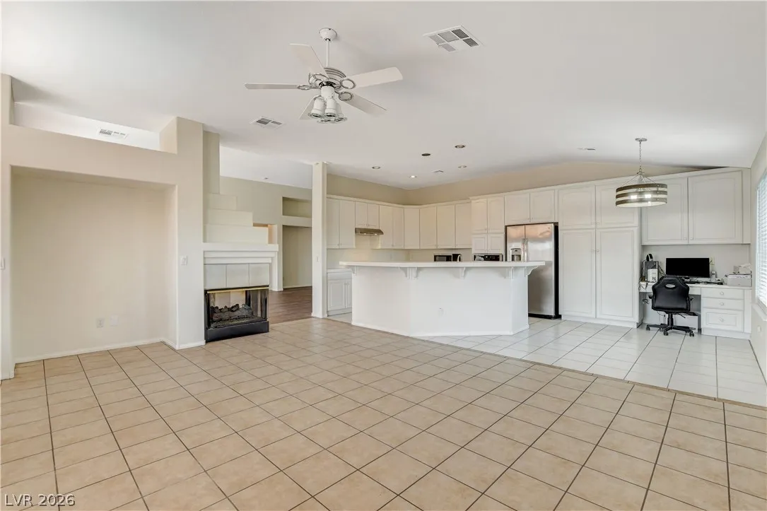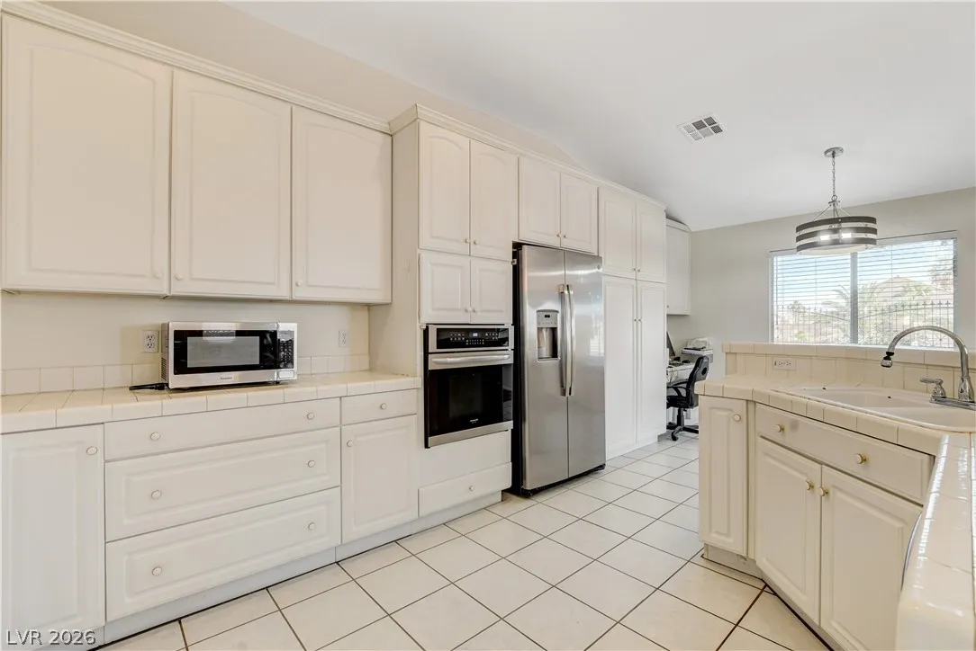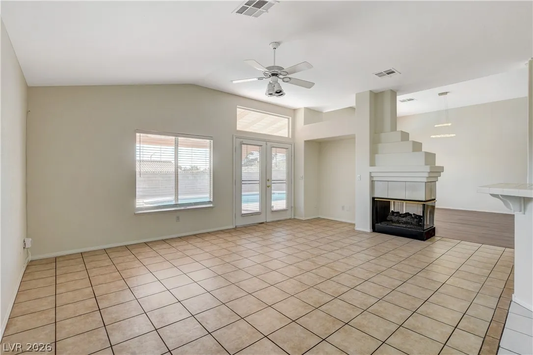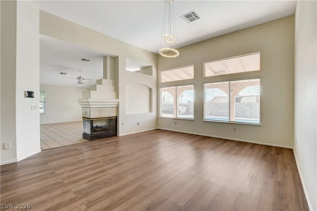 Discover a beautiful ranch-style 4 bedrooms and 2.5 bathrooms home on a corner lot with excellent strip views. Vaulted ceilings and pendent lights enhance the open living spaces, which include a fireplace and an enclosed porch. Enjoy outdoor living with a pool w/ diving board, covered patio, garden landscaping, and large parking spot plus RV parking and a 3-car garage. Practical benefits include alarm system, pest control, landscaping and pool services included, and no HOA. Located in close proximity to schools, this property offers comfortable, low-maintenance living with ample parking and attractive outdoor amenities.