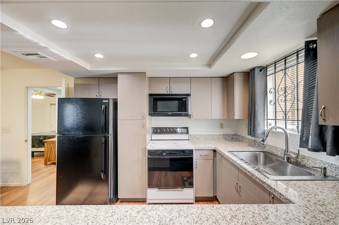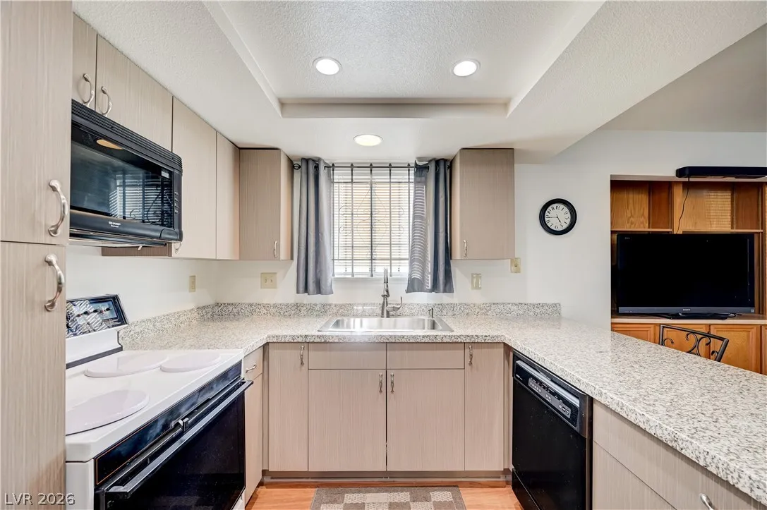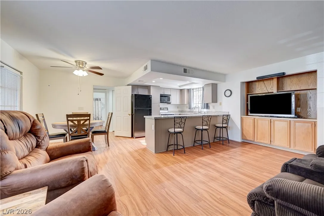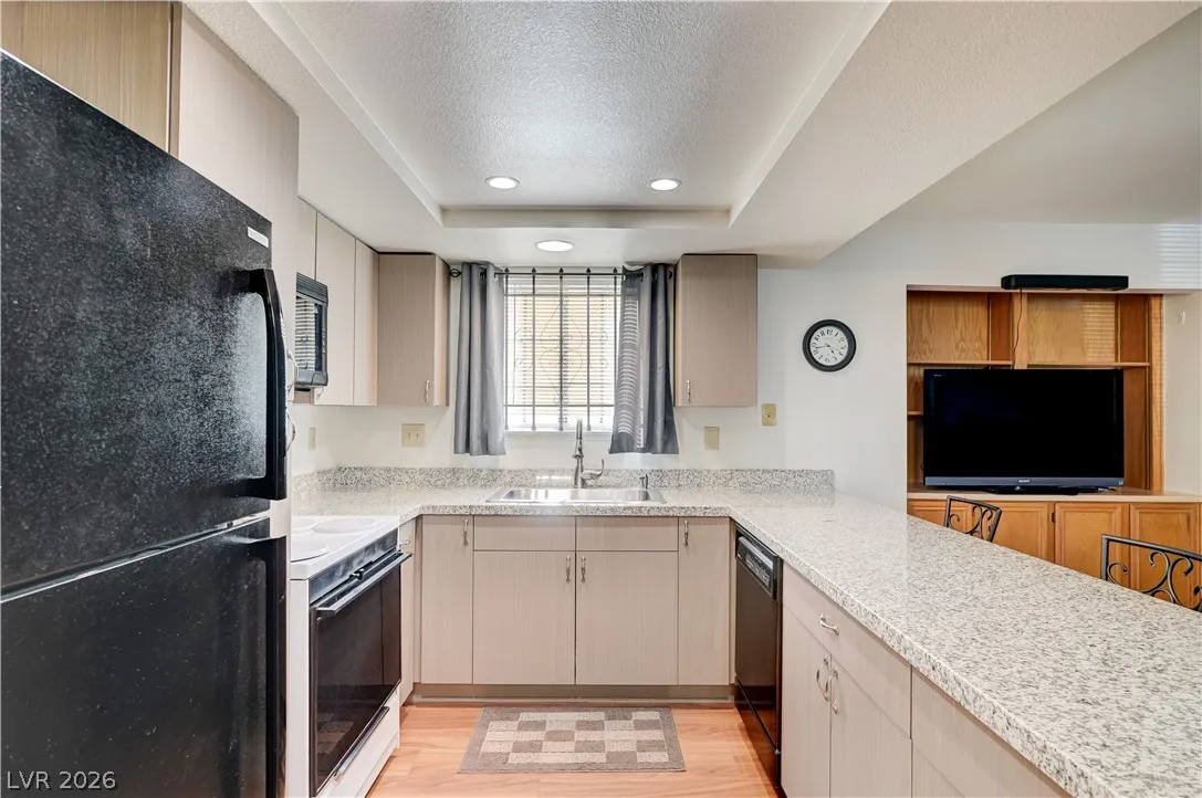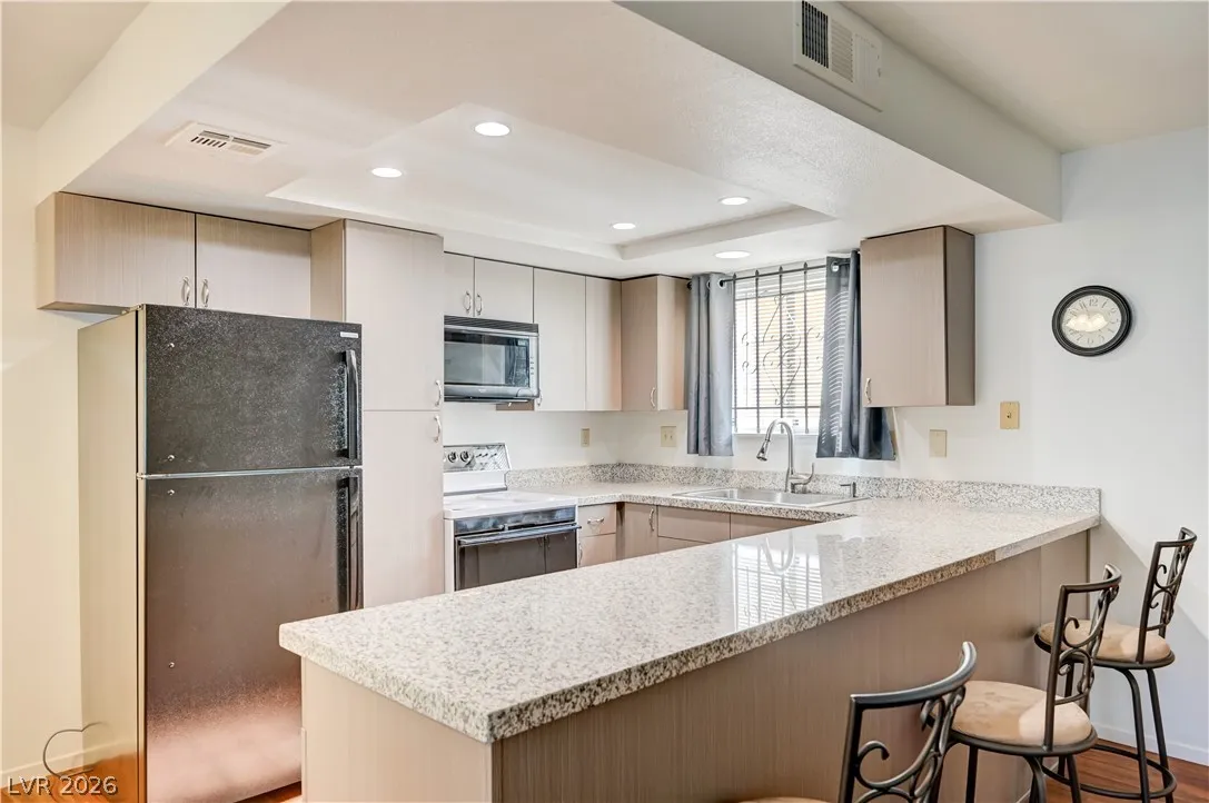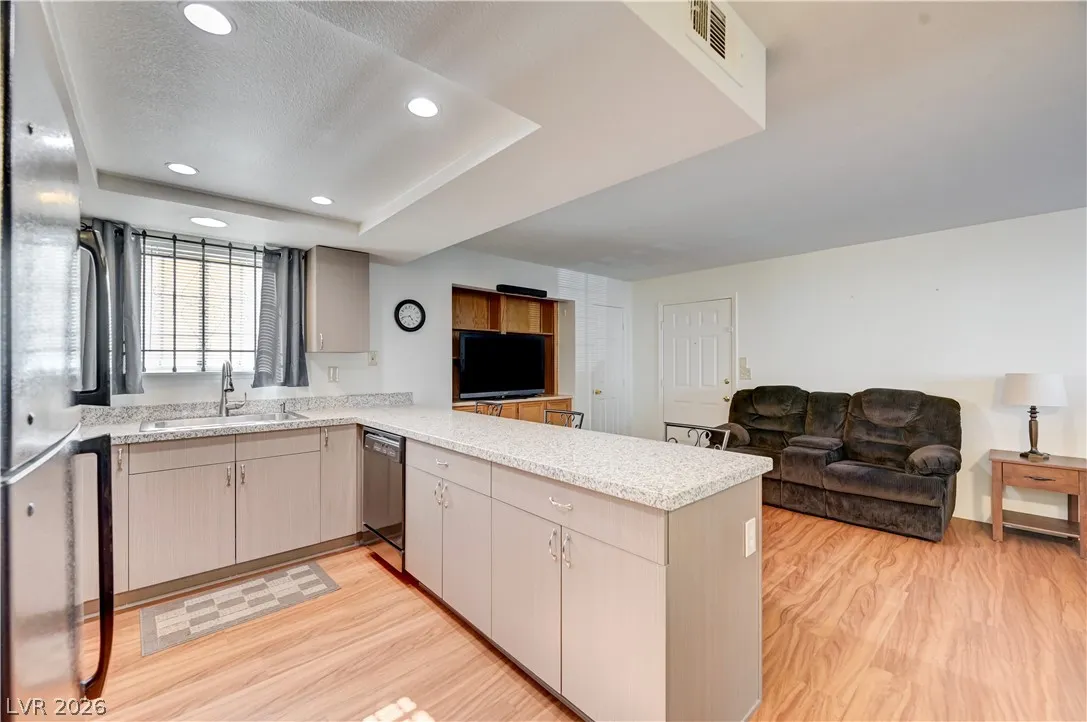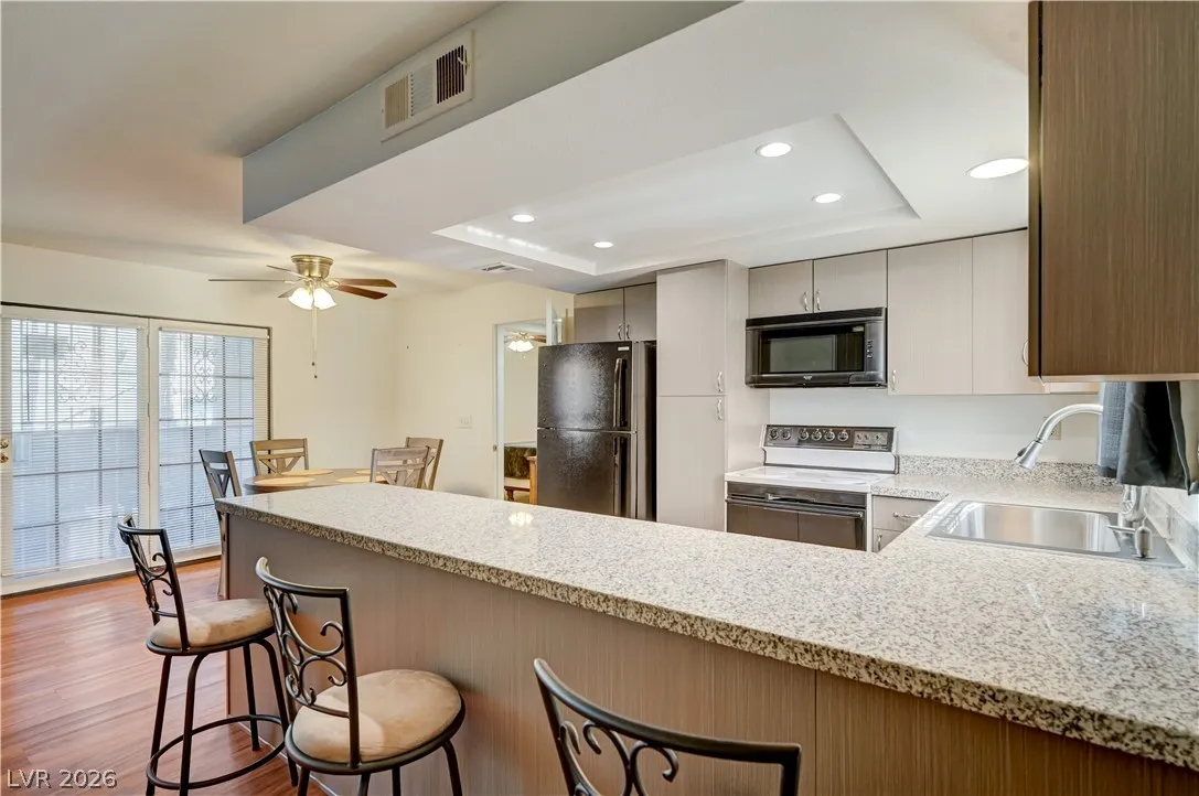 Welcome home!! Ground floor 2 bedroom, 2 bath condo used as a vacation home. Large bedrooms and open floor plan. Upgraded cabinets, granite countertops, luxury plank flooring, self-closing kitchen drawers. All appliances included. Move-in ready. New water heater. Easy access to Summerlin Pkwy.
