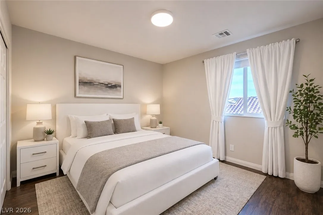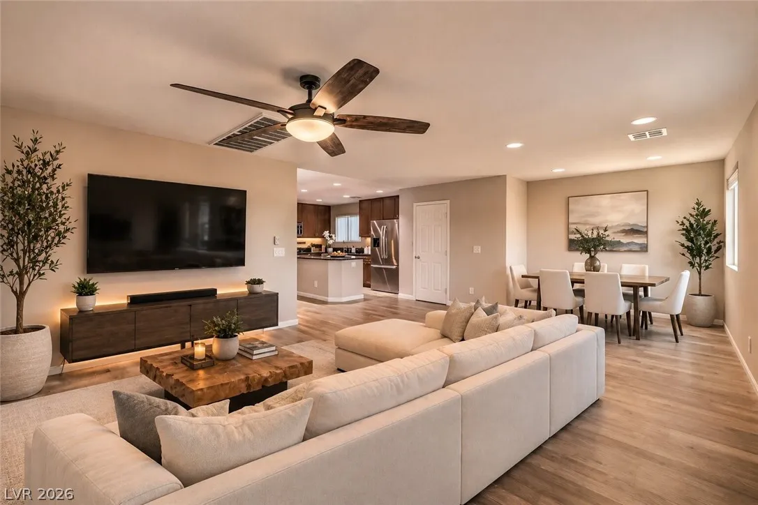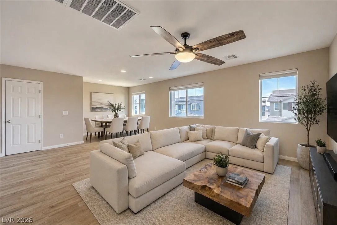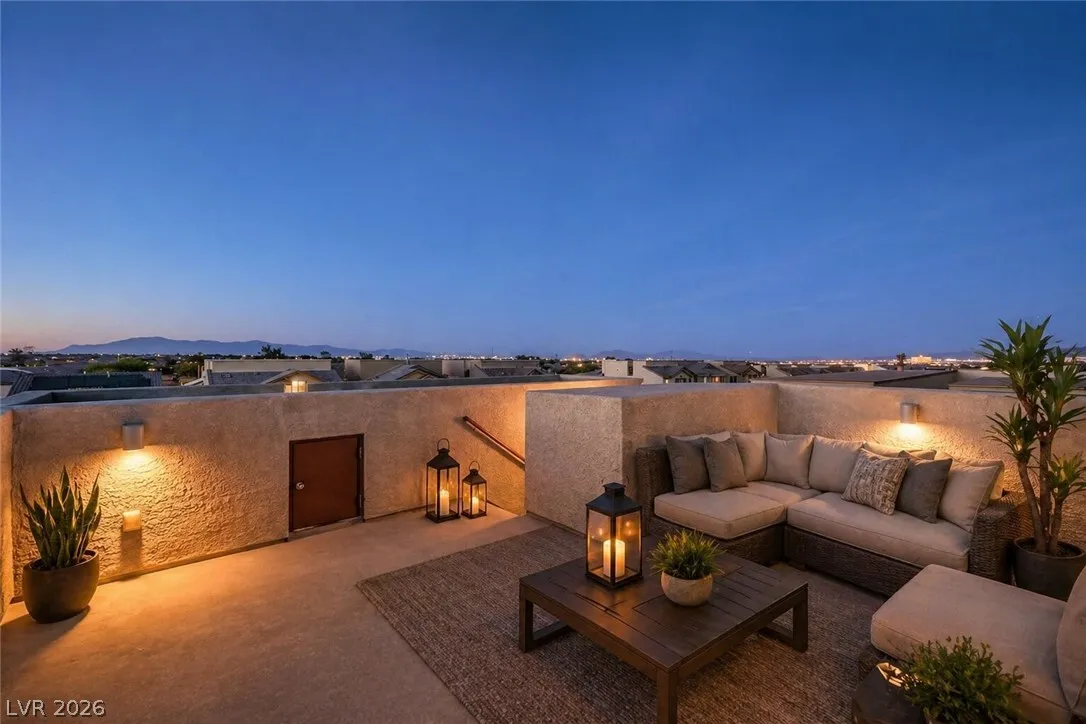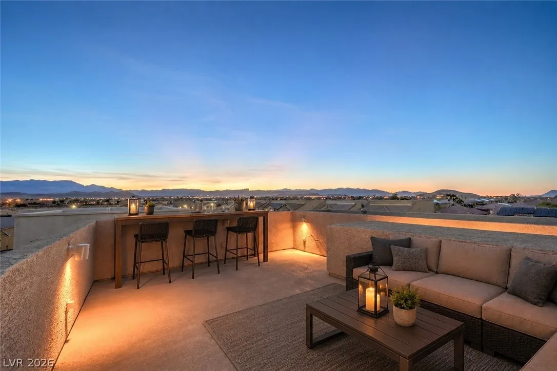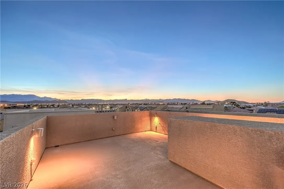 Amazing 3-story home located in the beautiful master-planned community of Mountain’s Edge, conveniently close to shopping, dining, parks, and everyday amenities. This rooftop home features breathtaking 360-degree views of the Las Vegas Valley, surrounding mountains, and the iconic Strip. Each level offers its own bedroom, bathroom, and living area, providing exceptional flexibility and comfort for guests or multigenerational living. The beautiful kitchen features Bosch stainless steel appliances, granite countertops, a pantry, and opens to the spacious great room—perfect for entertaining. Gorgeous laminate wood flooring adds warmth and style throughout. Enjoy a generously sized backyard and the privacy of a gated community. Residents also have access to outstanding community amenities including a pool, spa, fitness center, clubhouse, and more. Pride of ownership shines throughout this exceptional home.