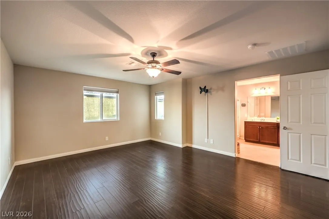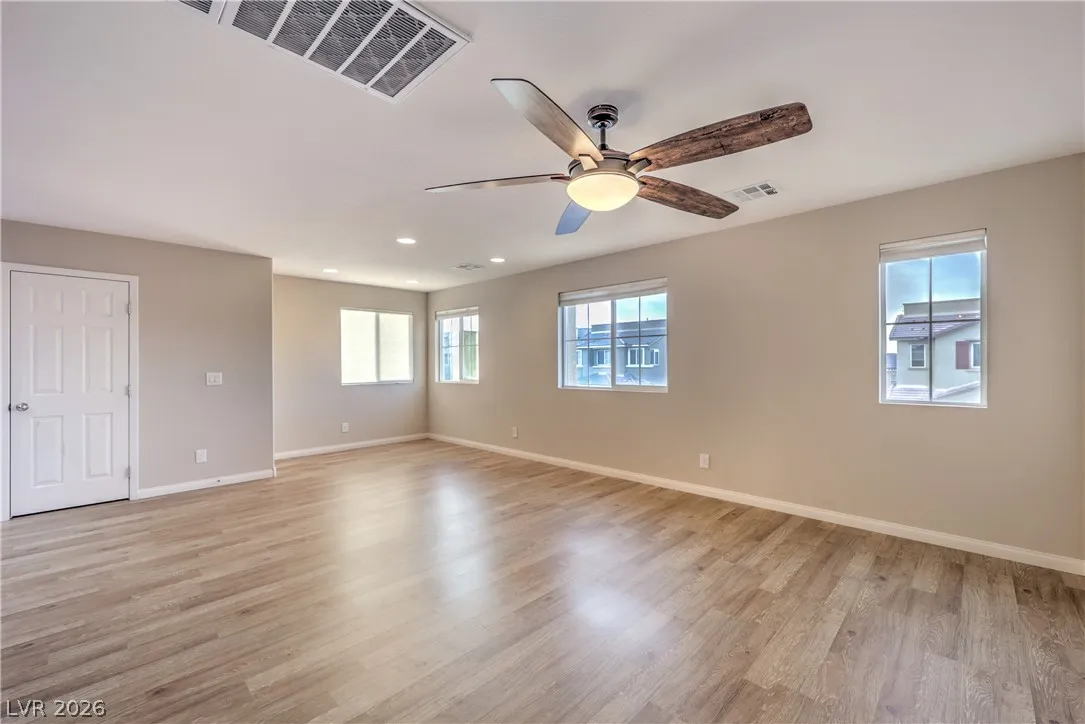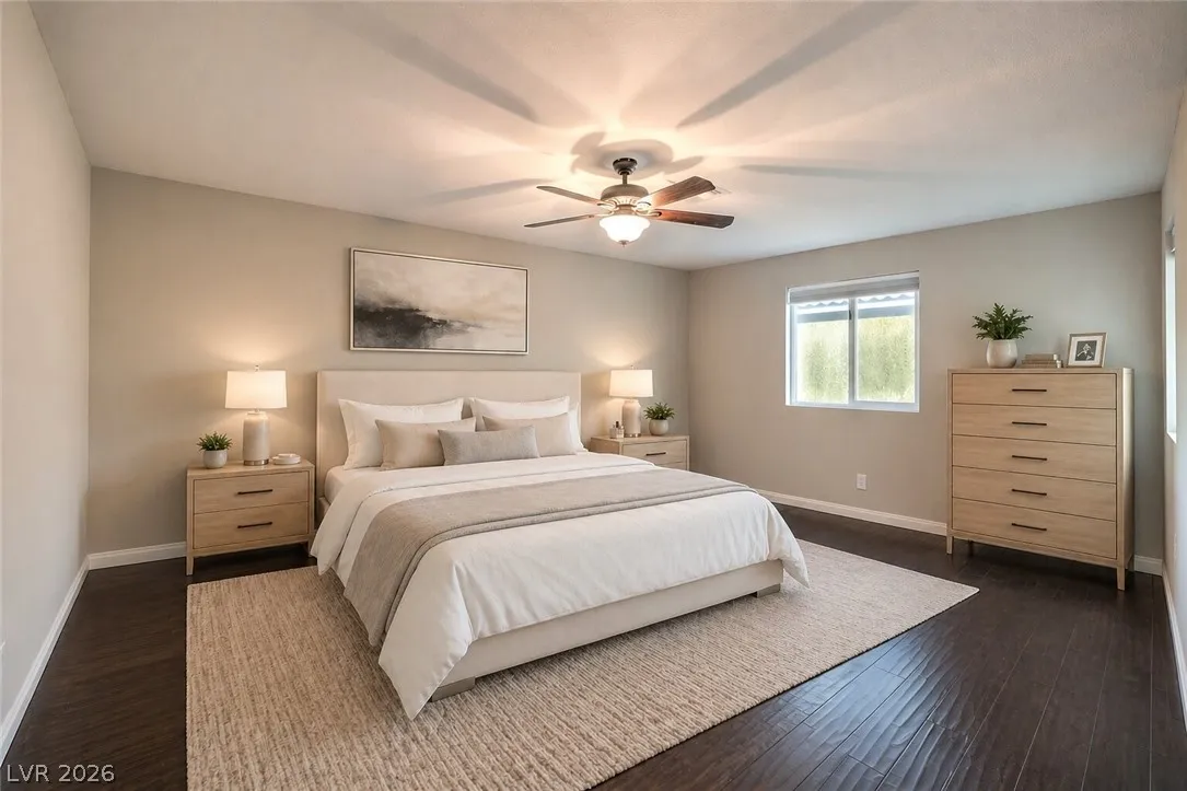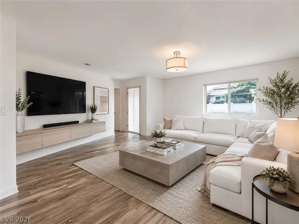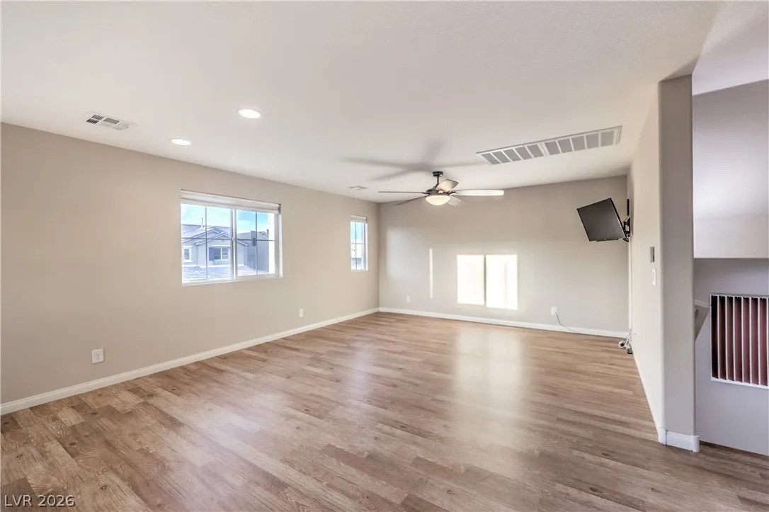 Amazing 3-story home located in the beautiful master-planned community of Mountain’s Edge, conveniently close to shopping, dining, parks, and everyday amenities. This rooftop home features breathtaking 360-degree views of the Las Vegas Valley, surrounding mountains, and the iconic Strip. Each level offers its own bedroom, bathroom, and living area, providing exceptional flexibility and comfort for guests or multigenerational living. The beautiful kitchen features Bosch stainless steel appliances, granite countertops, a pantry, and opens to the spacious great room—perfect for entertaining. Gorgeous laminate wood flooring adds warmth and style throughout. Enjoy a generously sized backyard and the privacy of a gated community. Residents also have access to outstanding community amenities including a pool, spa, fitness center, clubhouse, and more. Pride of ownership shines throughout this exceptional home.