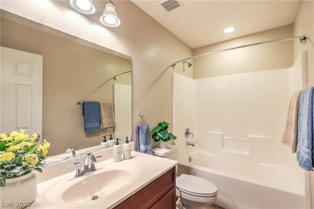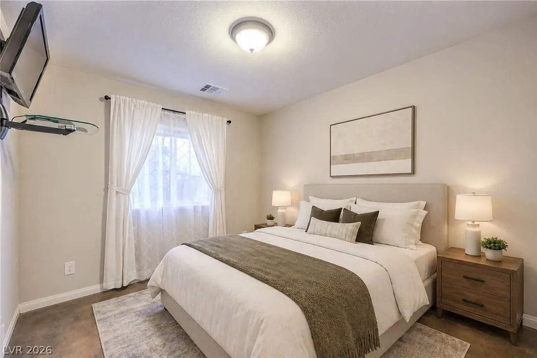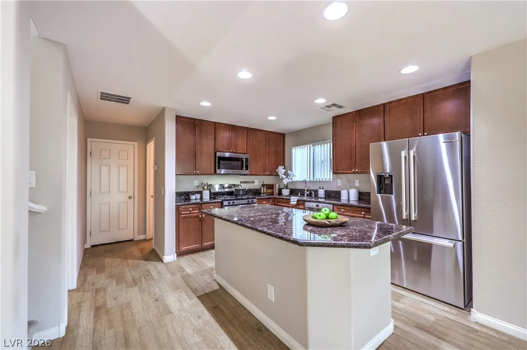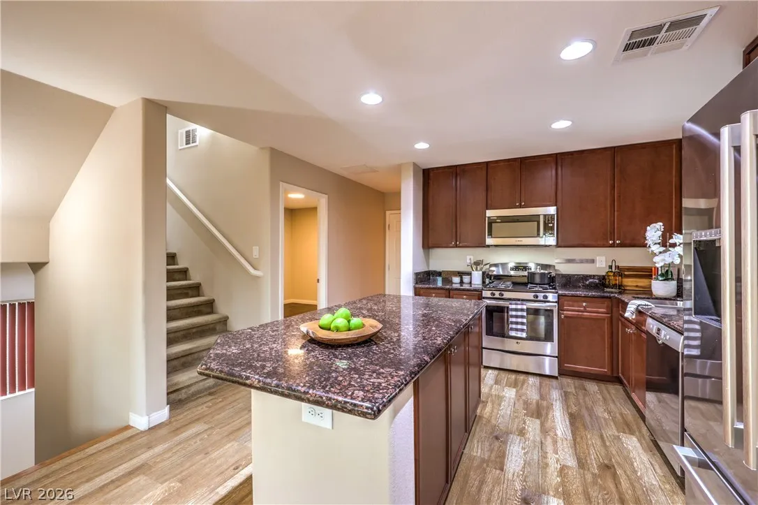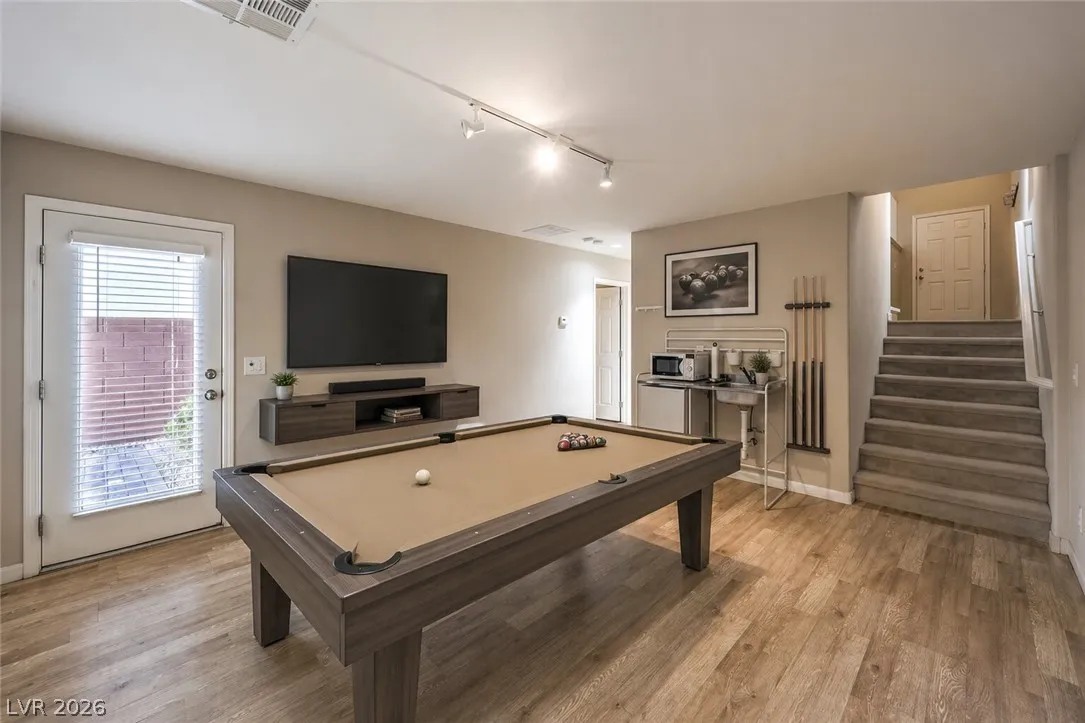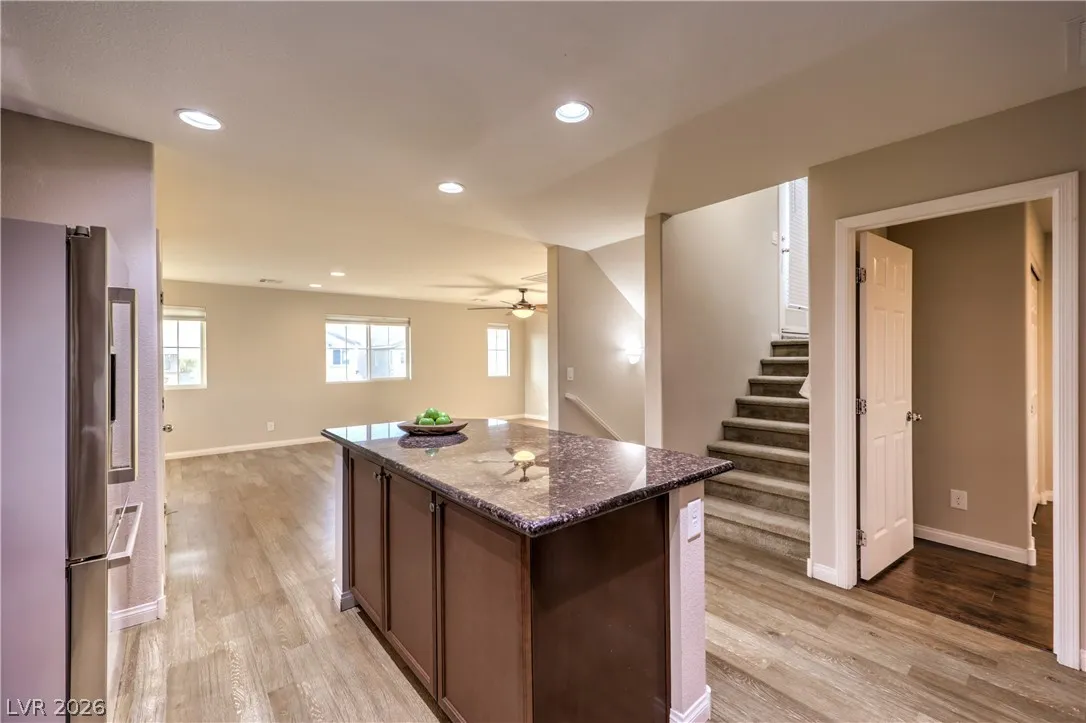 Amazing 3-story home located in the beautiful master-planned community of Mountain’s Edge, conveniently close to shopping, dining, parks, and everyday amenities. This rooftop home features breathtaking 360-degree views of the Las Vegas Valley, surrounding mountains, and the iconic Strip. Each level offers its own bedroom, bathroom, and living area, providing exceptional flexibility and comfort for guests or multigenerational living. The beautiful kitchen features Bosch stainless steel appliances, granite countertops, a pantry, and opens to the spacious great room—perfect for entertaining. Gorgeous laminate wood flooring adds warmth and style throughout. Enjoy a generously sized backyard and the privacy of a gated community. Residents also have access to outstanding community amenities including a pool, spa, fitness center, clubhouse, and more. Pride of ownership shines throughout this exceptional home.