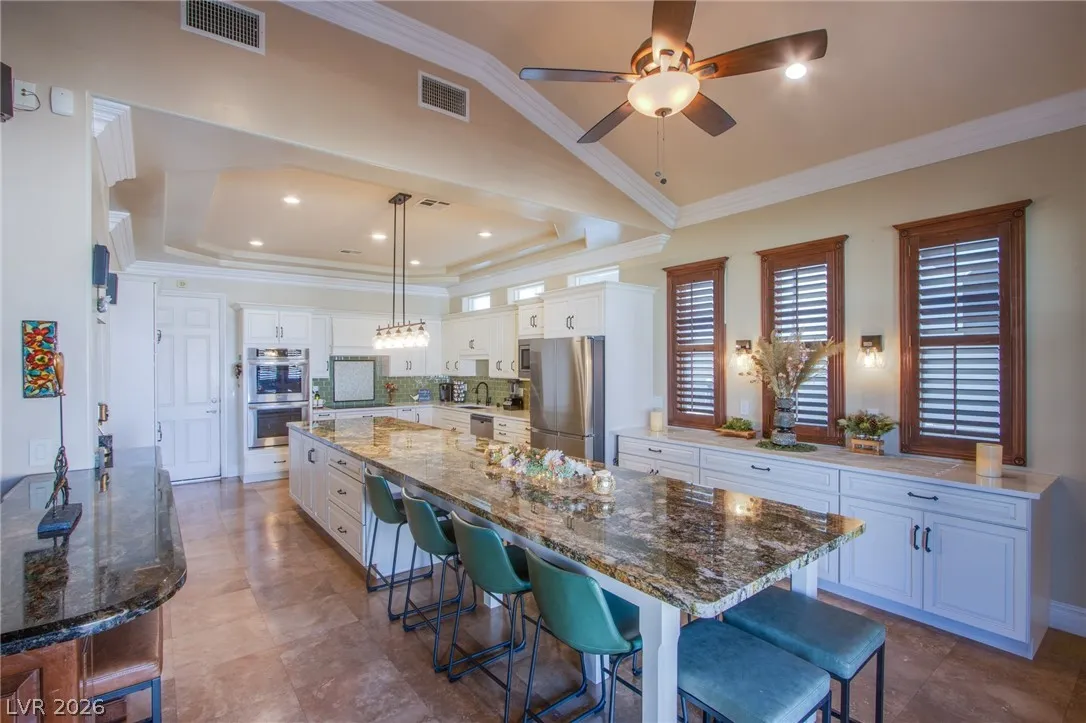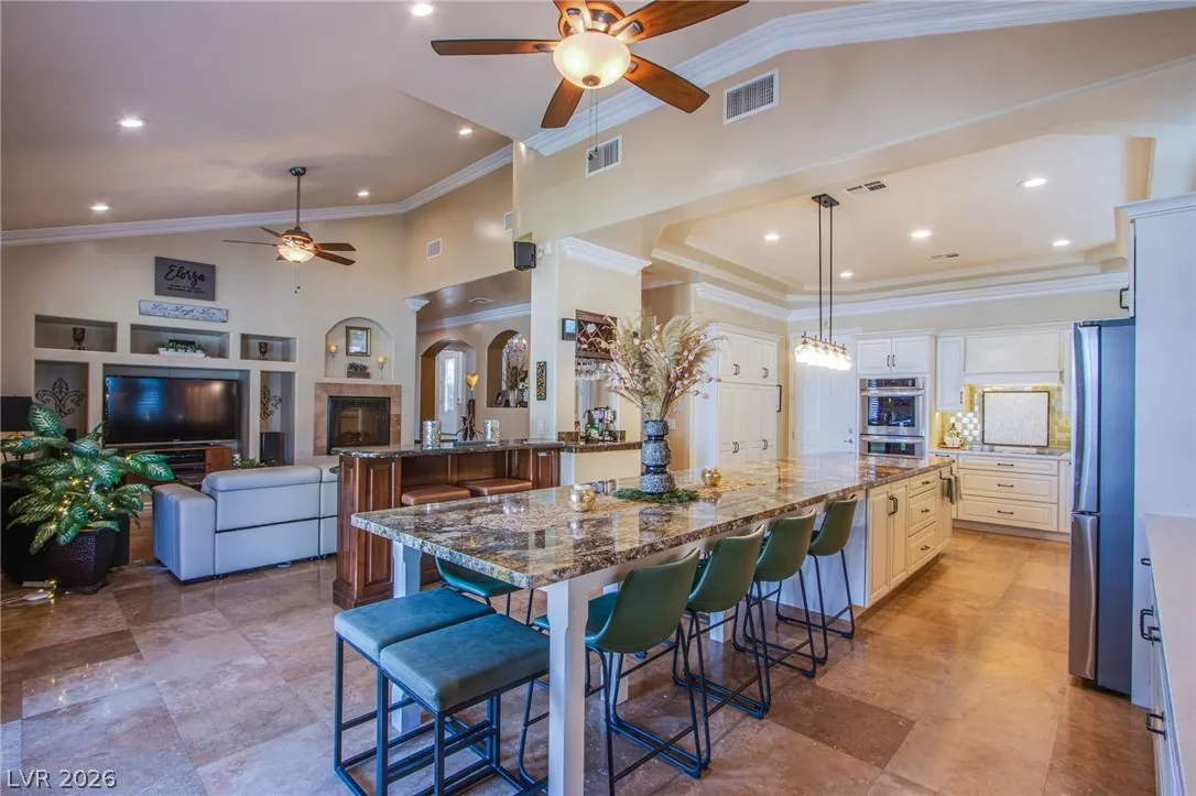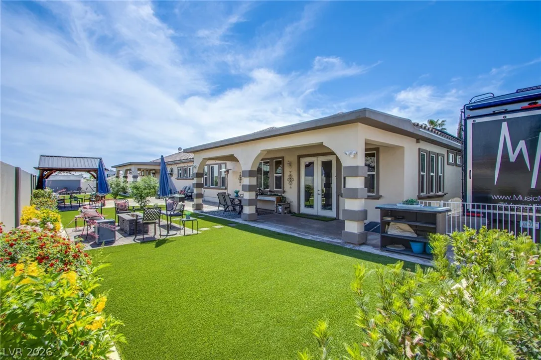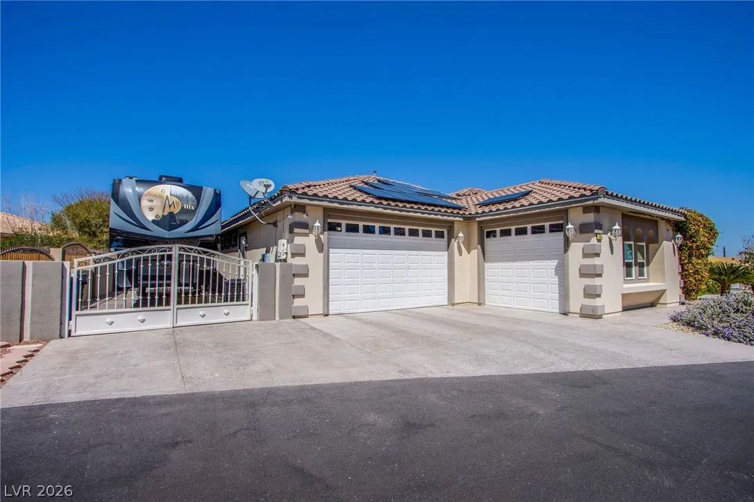 1 story custom home in Southwest on a huge lot w/NO HOA & room for RV & Boat parking!Enter the gorgeous courtyard into a resort style living space. Gorgeous travertine & laminate wood flooring throughout. Home boasts dual primary bedrooms. 4 of the 5 bedrooms have walk in closets and their own bathrooms. The 5th bedroom has a beautiful view of the courtyard. Over $120K in upgrades. Quartz/Granite/soft close cabinets/stainless steel appliances, extra Long Island seats 10! The family & Living room both have dual fireplaces. The den/office has a double door entry. The primary has an en suite area and primary bath has jacuzzi bathtub, 2 walk in his & her closets & separate shower with seat. Garage overhead shelving & room for 3 cars. 240V outlet for electric vehicle. Solar will be paid off at close by seller ($40K) with full price offer. Entirely off the grid living. 10X10 Tuff Shed, 10×12 Gazebo,Easy maintenance landscape w/Pavers & synthetic grass. A warm beautiful place to call home.