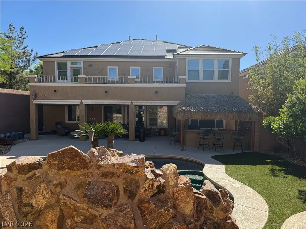 BEAUTIFUL 5 BEDROOM, 2.75 BATH HOME LOCATED AT THE END OF A CUL-DE-SAC. LOT IS OVERSIZED THAT FEATURE AN EXTRA LARGE DRIVEWAY. TROPICAL RESORT STYLE BACK YARD HAS INGROUND POOL/SPA, WATERFALL AND ROCK SLIDE. IN GROUND TRAMPOLINE, COVERED PATIO, AND PALAPA (OUTDOOR KITCHEN). INSIDE PROPERTY BOASTS HARDWOOD FLOORING, BUILT IN ENTERTAINMENT CENTER AND FIREPLACE. KITCHEN HAS CUSTOM CABINETS, LARGE ISLAND WITH BUILT IN MINI FRIDGE, DOUBLE OVEN, GE MONOGRAM STAINLESS STEEL APPLIANCES, AND LARGE DEEP PANTRY. MASTER BEDROOM HAS SEPERATE SITTING AREA THAT LEADS TO THE OPEN AIR BALCONY. MASTER BATH HAS HIS/HERS VANITIES, DEEP SOAKING TUB WITH SEPERATE WALK IN SHOWER. CUSTOM BUILT MASTER CLOSET. 3 CAR GARAGE HAS LOTS OF STORAGE SHELVES.
