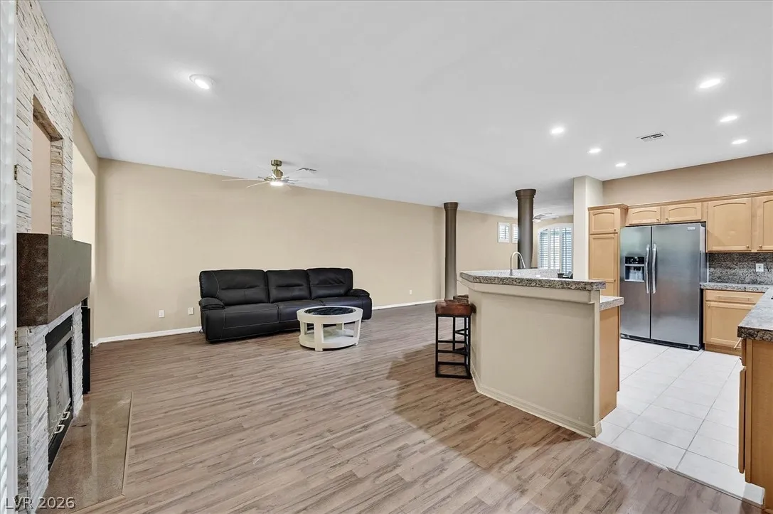Beautifully Upgraded 3 Bedroom, 2 Car Garage Home in the Gated Summerlin Terraces Neighborhood with Community Pool and Spa! So Desirable! Open, Spacious Floorplan! Stunning Kitchen! Cozy Fireplace in the Family Room! Large Primary Bedroom with Balcony! All Bathrooms are Upgraded! 2’nd Balcony off of 2’nd Bedroom! Additional Sitting area or office area too! Covered Front Entry Way! Plantation Shutters Throughout! Low-Maintenance Backyard! So Close to Everything! You will Love all that Summerlin has to offer! Home Sweet Home!