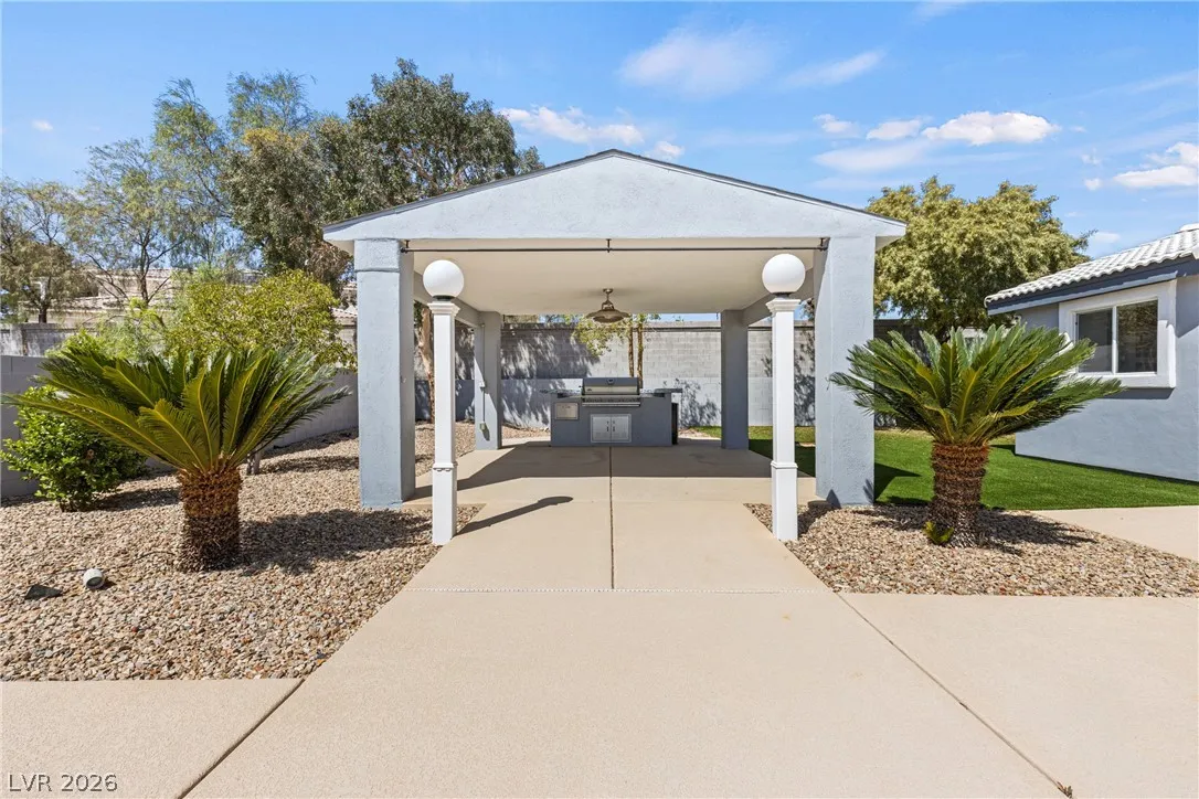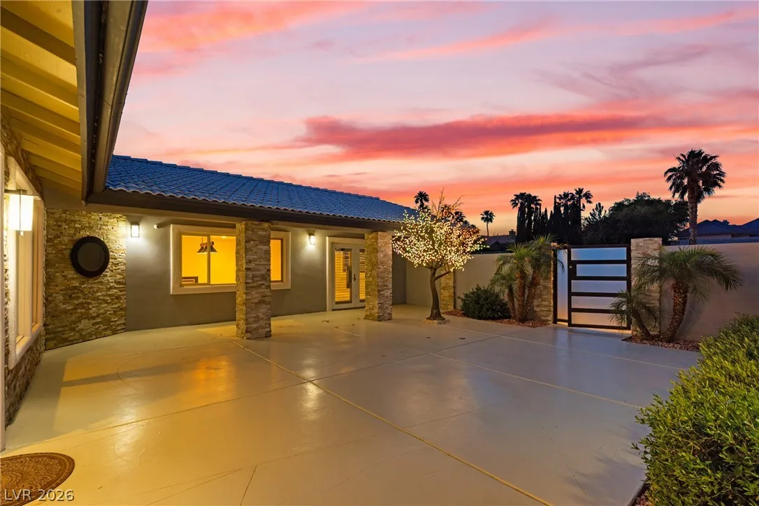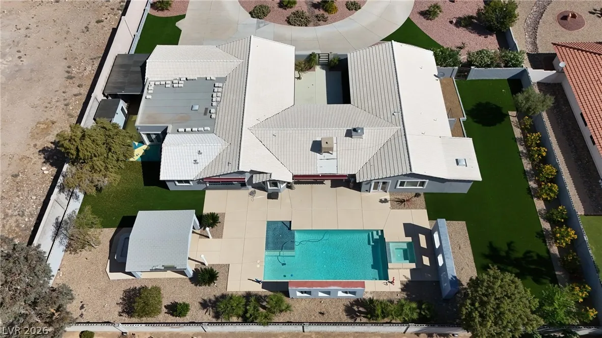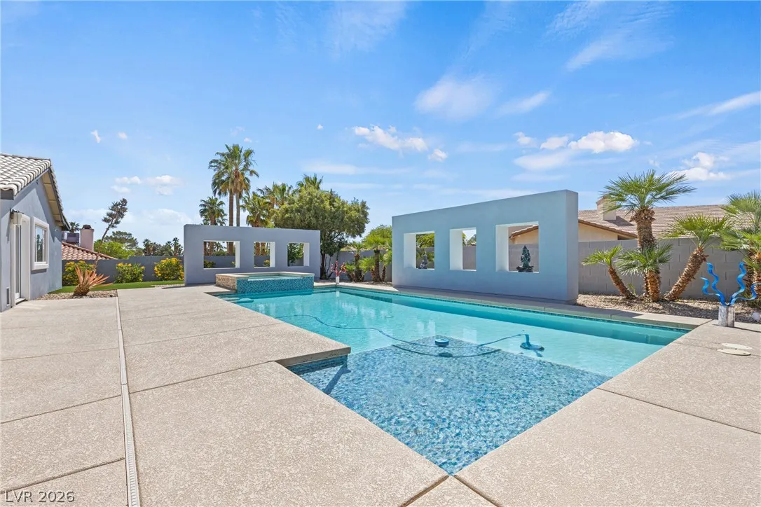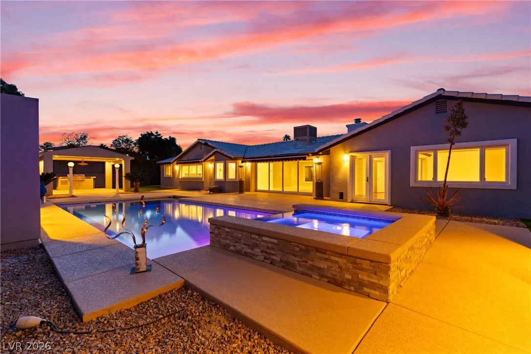 Single-story estate in highly sought-after Section 10 offering nearly 3,900 sq ft of open-concept living. This 4-bedroom, 3-bath home seamlessly blends indoor and outdoor spaces with a stunning four-panel folding door and a three-panel pass-through window from the kitchen to the backyard. The resort-style yard features a heated pool and spa, new synthetic grass, fresh landscaping, and an elevated rear wall for added privacy. Enjoy a private courtyard entry with glass front door, automatic awnings, and an electronic gated driveway. The property includes a 2-car garage plus potential RV parking or carport. Inside, you’ll find high-end kitchen appliances and recent updates including new interior and exterior paint. Propane tank recently refilled. A rare opportunity in one of Las Vegas’ most desirable neighborhoods.