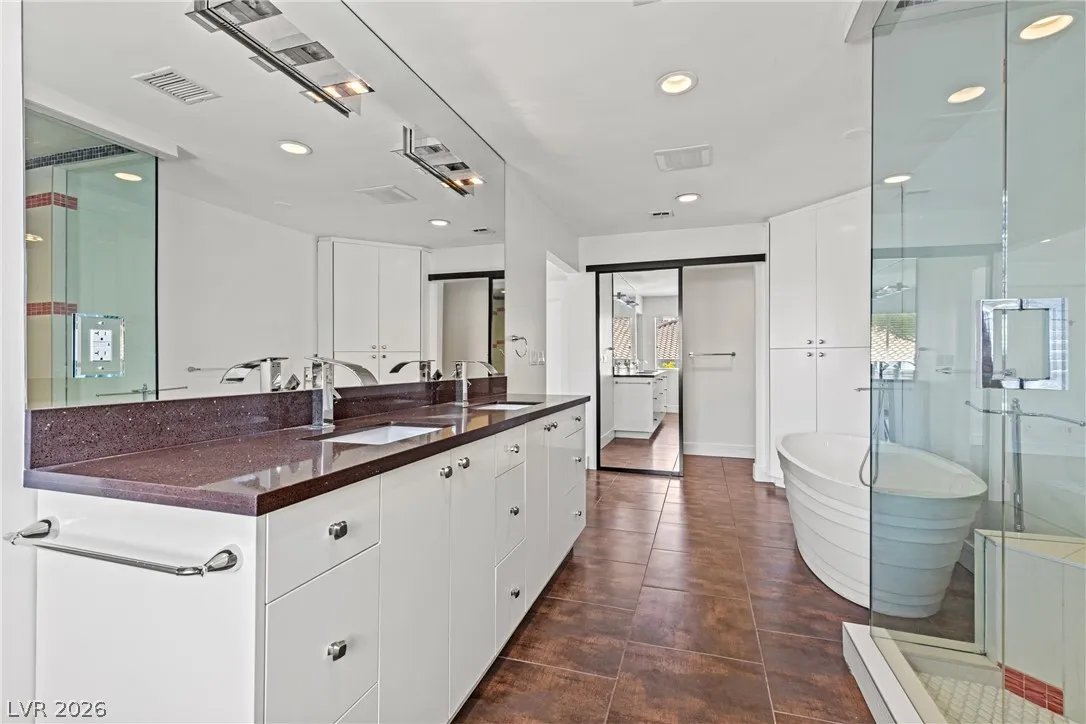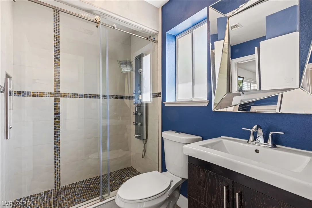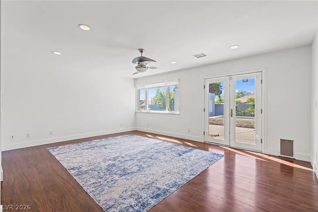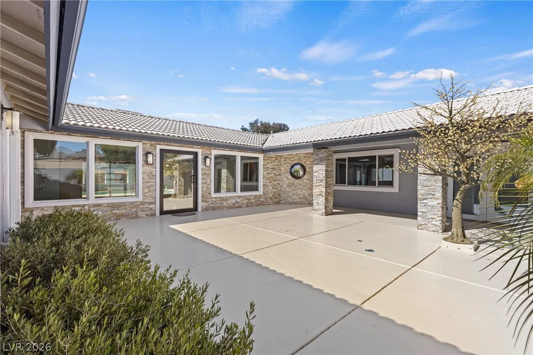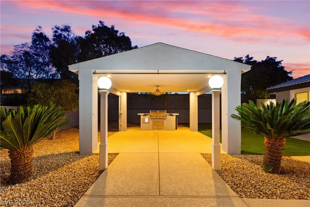 Single-story estate in highly sought-after Section 10 offering nearly 3,900 sq ft of open-concept living. This 4-bedroom, 3-bath home seamlessly blends indoor and outdoor spaces with a stunning four-panel folding door and a three-panel pass-through window from the kitchen to the backyard. The resort-style yard features a heated pool and spa, new synthetic grass, fresh landscaping, and an elevated rear wall for added privacy. Enjoy a private courtyard entry with glass front door, automatic awnings, and an electronic gated driveway. The property includes a 2-car garage plus potential RV parking or carport. Inside, you’ll find high-end kitchen appliances and recent updates including new interior and exterior paint. Propane tank recently refilled. A rare opportunity in one of Las Vegas’ most desirable neighborhoods.