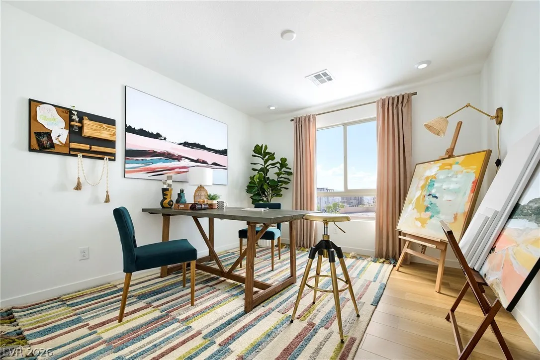 Former model home offers a refreshing shift in perspective with its distinctive side entry and expansive corner windows that draw your eye outward, creating a seamless connection to the outdoors. The heart of the home is anchored by an oversized kitchen island, perfect for casual dining, elegant entertaining, or effortless everyday living. Upstairs, a light-filled loft just off the primary suite provides a versatile retreat for work, relaxation, or play. The spa-inspired primary bath features a compartmentalized water closet and dual walk-in closets for a refined, boutique-style experience. The secondary bedroom wing includes a shared bath, linen storage, and convenient laundry access, while Bedroom 2 is enhanced by corner windows and its own walk-in closet. Furniture is included.