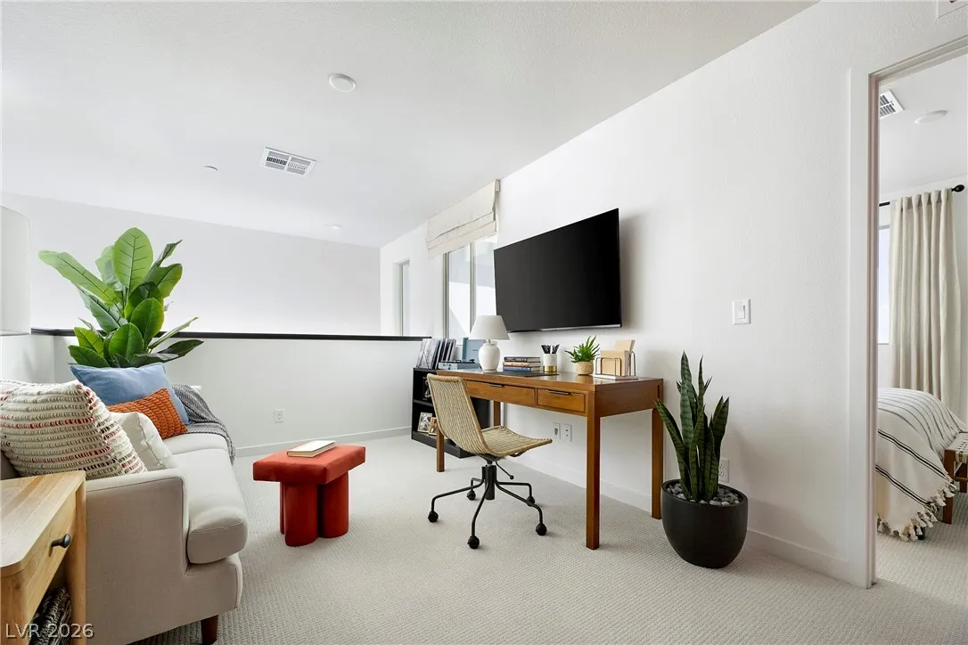 Former Model home sleek and streamlined, Plan 1 pairs smart design with elevated style, creating an efficient yet gracious living experience. The light-filled main level offers beautiful backyard views and effortless functionality, with direct garage access, a hall coat closet, and a discreet powder room enhancing everyday convenience. Upstairs, distinctive step-down entries off the stairwell create a sense of separation between the primary and secondary wings. The owner’s suite commands attention with a spa-inspired bath and expansive walk-in wardrobe. A versatile loft adds flexible living space and can be converted into an additional bedroom if desired. Built-in linen storage in the laundry and a walk-in closet in Bedroom 2 complete this thoughtfully designed home. All furniture included.
