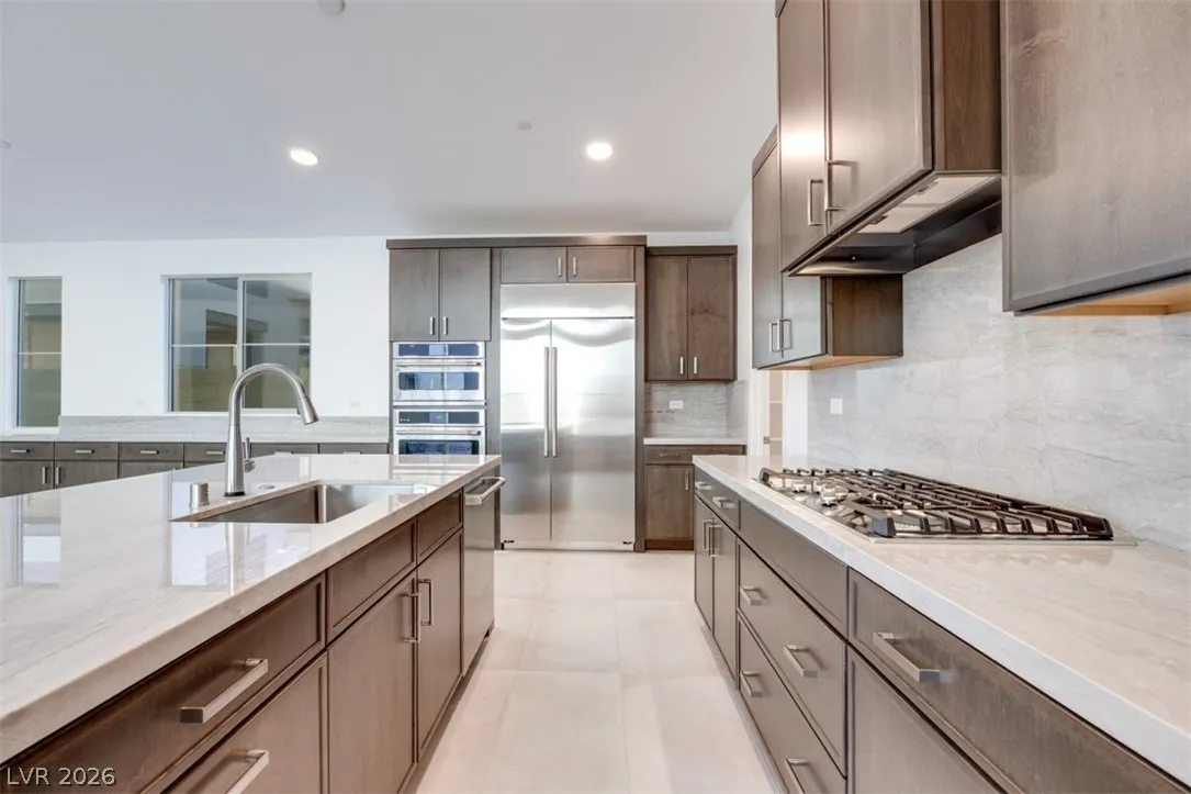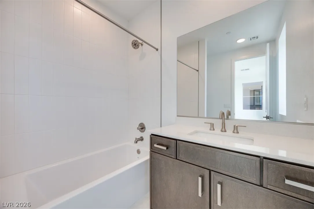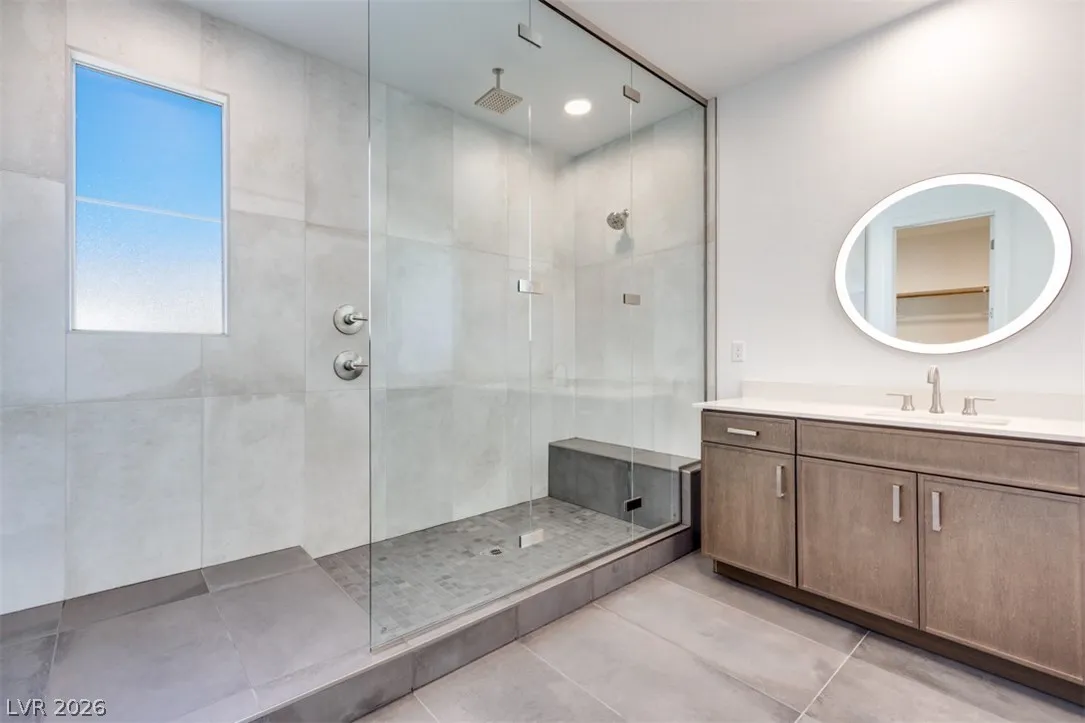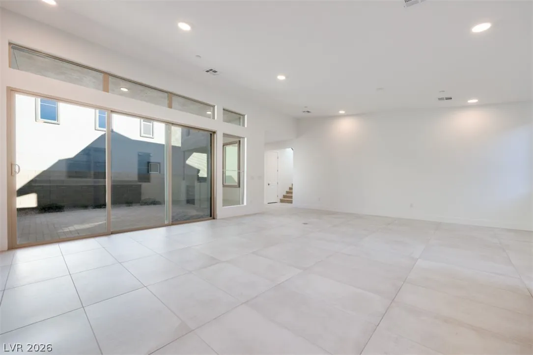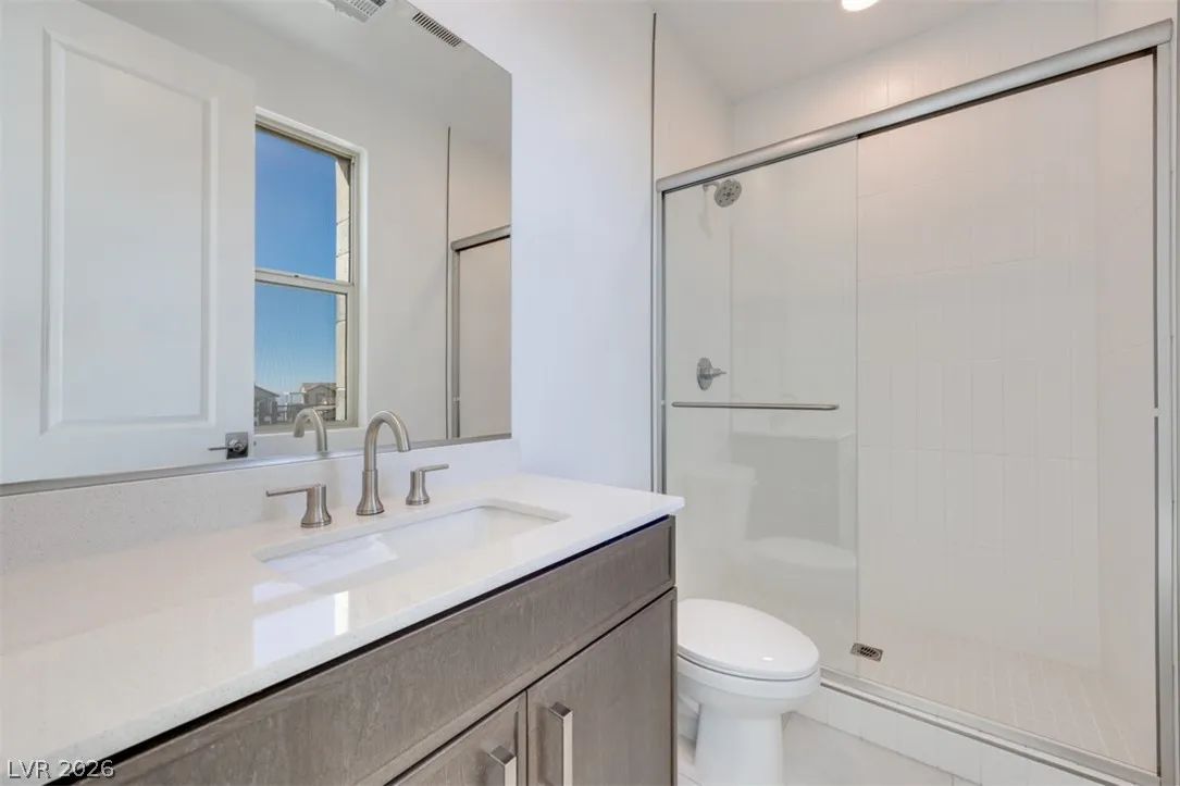 Inside, the kitchen stands as a centerpiece, featuring sleek quartz countertops paired with stainless steel appliances—delivering both modern appeal and lasting performance. A dramatic stacking glass door off the dining area seamlessly connects indoor and outdoor spaces, opening to a covered patio that’s ideal for entertaining or relaxed evenings at home. Upstairs, a generous loft offers flexible living space, perfect for a media lounge, home office, or private retreat. The primary bath provides a spa-like experience with a beautifully designed shower, while the laundry room is thoughtfully upgraded with a base cabinet and sink, adding both style and everyday convenience.