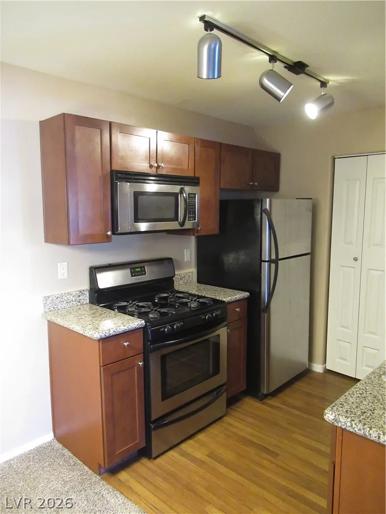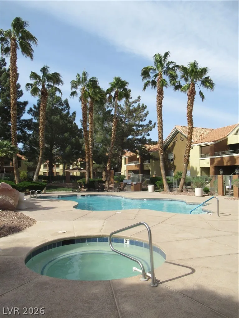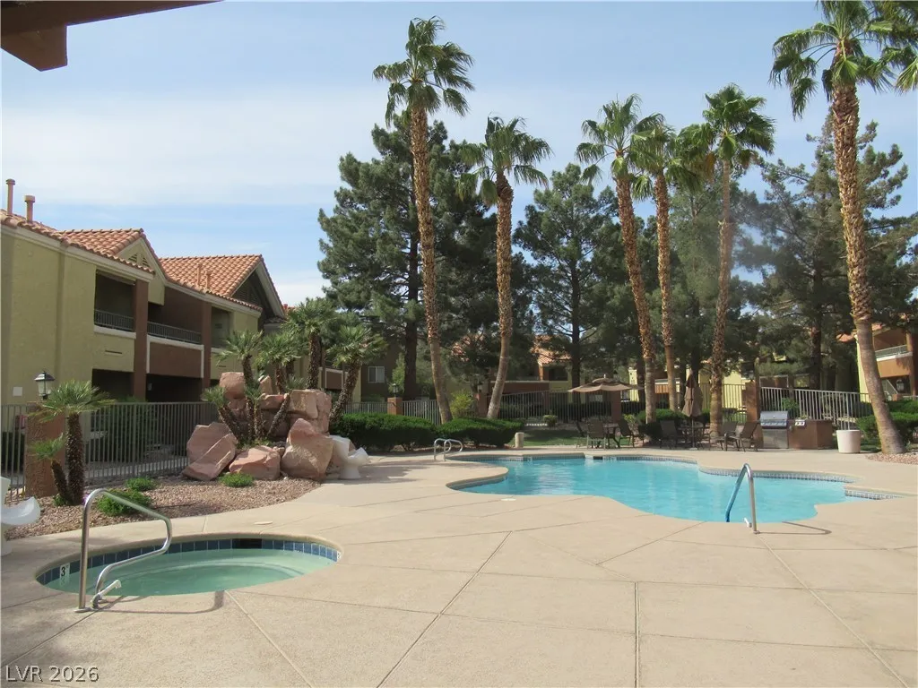 Super Cute 2 bed/2 bath Condo in Gated Community with 2 Pools & Gym! All Stainless Steel Appliances included Plus Washer & Dryer * Granite Countertops & Walk In Kitchen Pantry * Pass Through from Kitchen to Living Room * Roman Tub in Primary Suite with Large Walk in Closet * Ceiling Fan * Patio * Covered Parking Spot #193 * Community Basketball & Volleyball courts & BBQ Areas both charcoal & gas * New asphalt t/o whole community * Walking trail behind building with gorgeous views of the Las Vegas Strip * Nearby Bus Line, Shopping, Post Office, Banks, Gas Convenience Store and Restaurants *