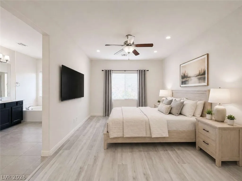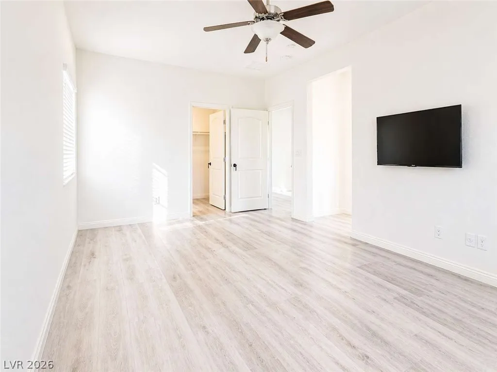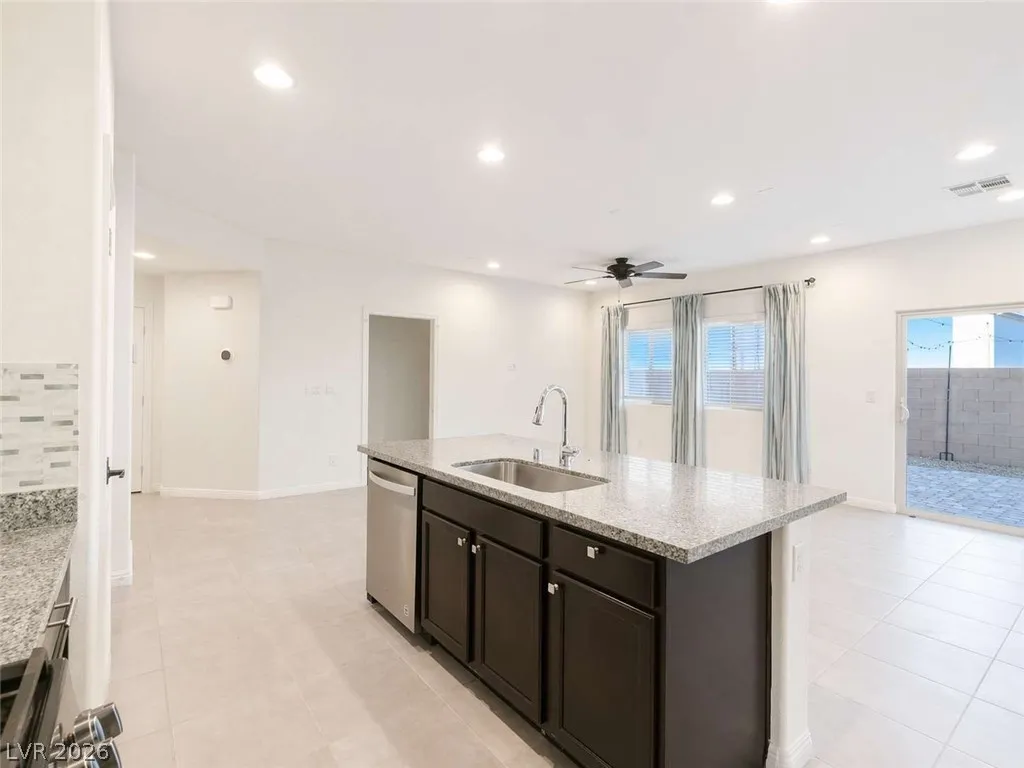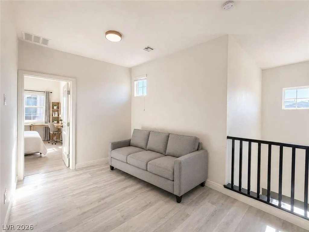 Beautiful two-story home ideally located near S Buffalo & W Windmill. Featuring 9-foot ceilings on both levels, this home offers an open and airy feel throughout. The main floor includes a spacious bedroom with an oversized full bathroom—perfect for guests or multi-generational living. Enjoy exceptional energy efficiency with $22,000 in fully paid-off solar panels installed in 2021, backed by a 25-year warranty, keeping the average electric bill at approximately $40/month. A Tesla wall charger is also installed for added convenience. The upgraded kitchen boasts stainless steel appliances, granite countertops, a stylish backsplash, and an undermount sink. Step outside to a private patio, a freshly painted garage. Ideally situated just 1 mile from Windmill Library and Legacy Traditional School – Southwest. With easy access to the 215 freeway. Close to major shopping and dining, including Smith’s, Walmart, Sam’s Club, and Costco. A perfect blend of location, efficiency, and move-in-ready!