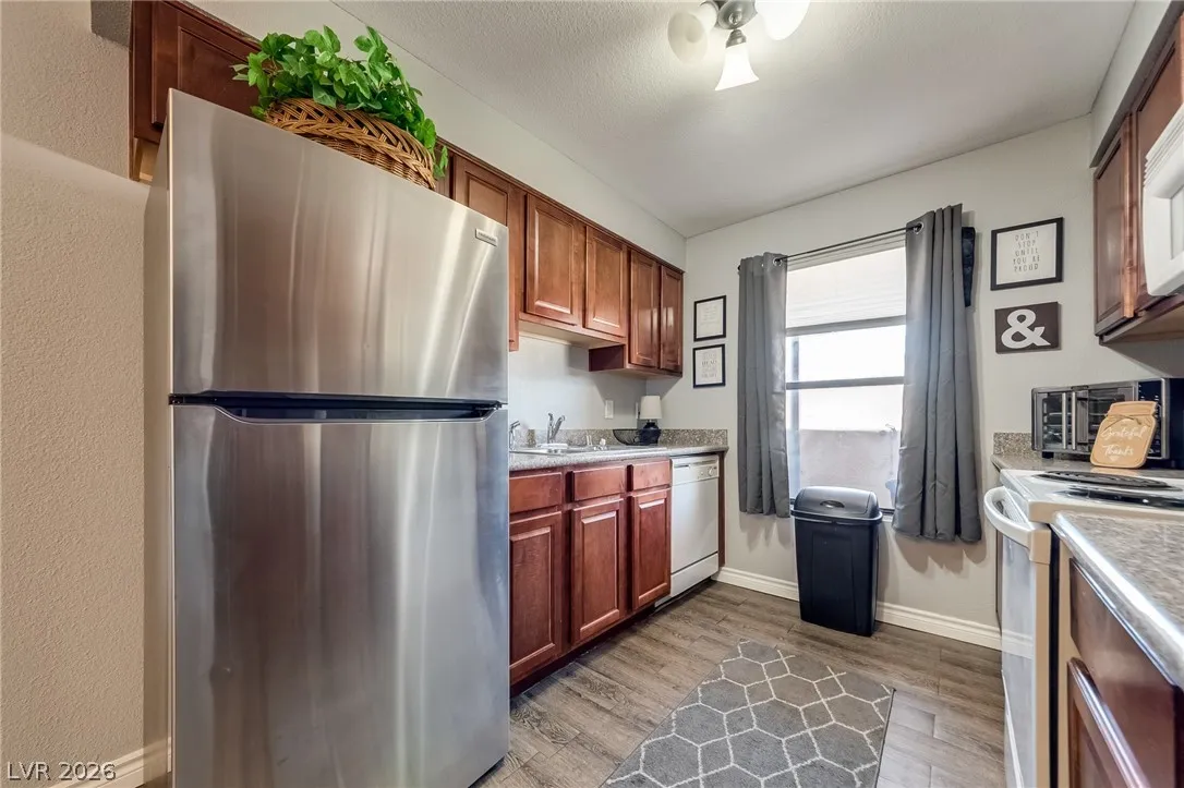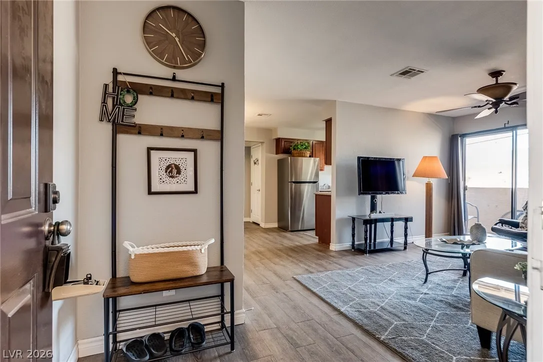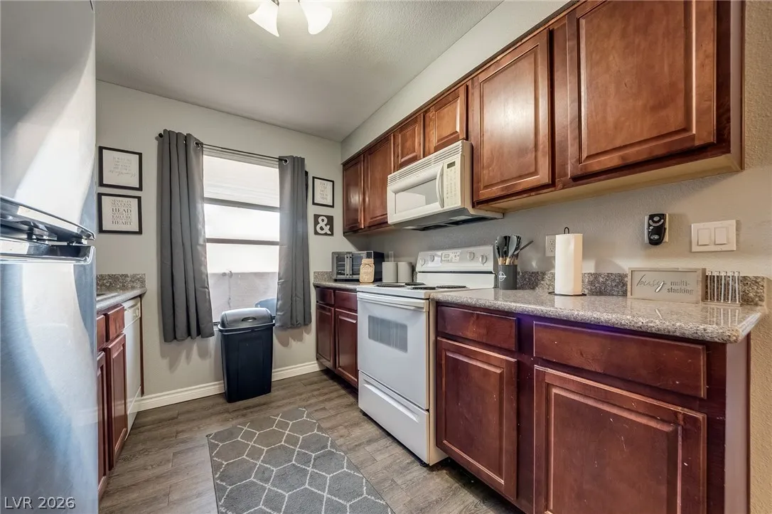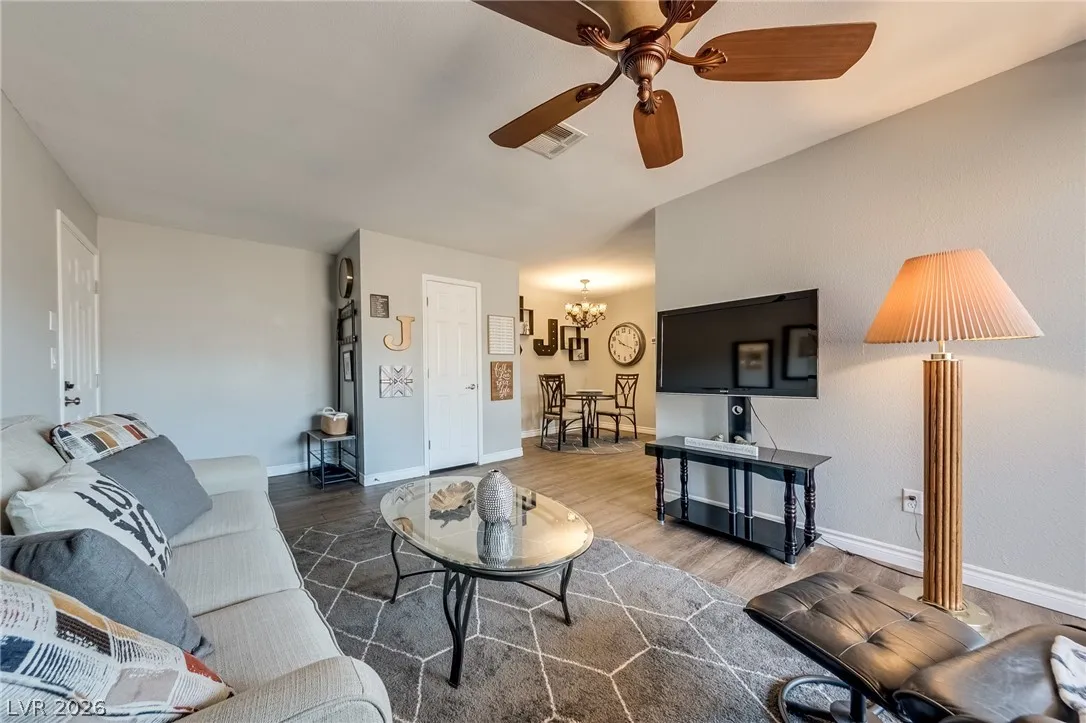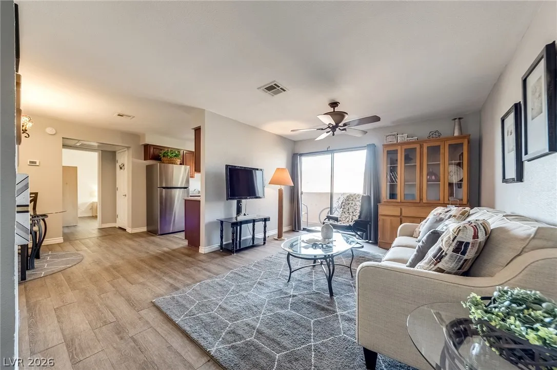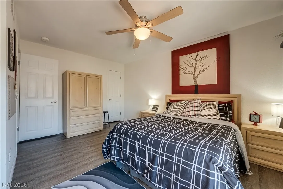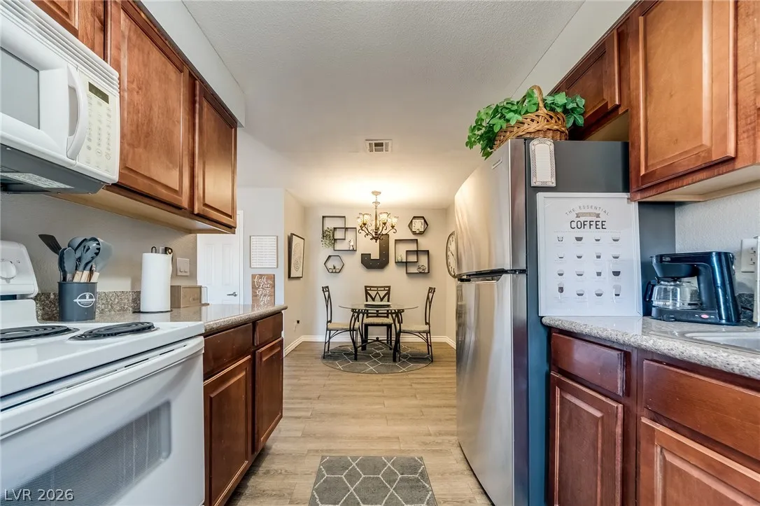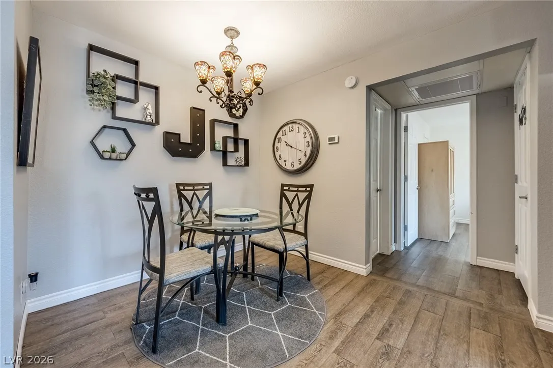 Welcome to your perfect Las Vegas retreat! This adorable one-bedroom, one bath upstairs condo is the definition of move-in ready. Fully furnished and styled to perfection. This bright and inviting living space will make you feel at home, complete with tasteful furnishings and cozy charm t/o. The well appointed kitchen flows seamlessly into the living and dining areas. The spacious bedroom offers comfort and tranquility, while the upstairs location provides added privacy and peaceful vibes. Located in a beautifully maintained community featuring a sparkling pool and relaxing spa, you’ll feel like every day is a vacation. This condo is a perfect primary residence or second home. Cute, convenient and completely turnkey.