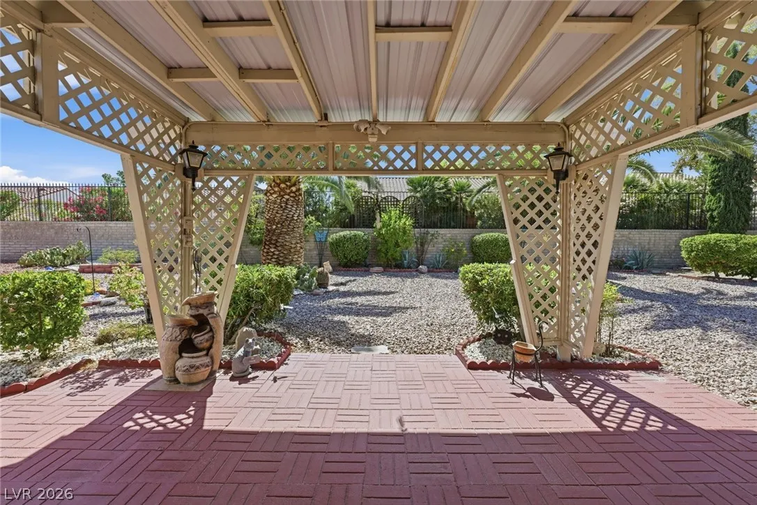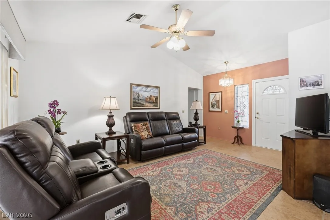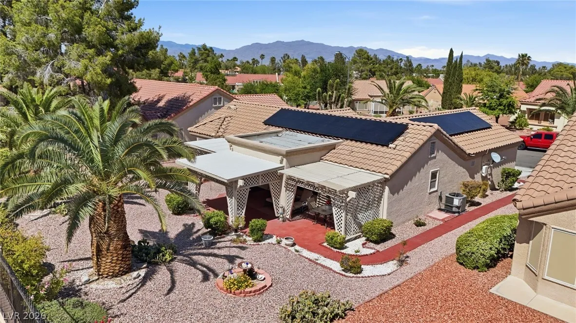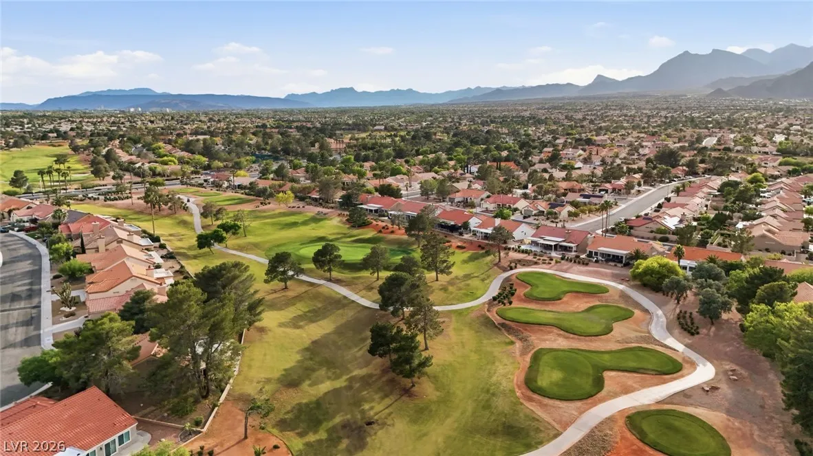 Welcome to this charming single story home in the highly sought after Sun City Summerlin 55+ community. This well maintained residence features 2 bedrooms, 2 bathrooms, and a bright, open layout with spacious living and dining areas. The kitchen offers ample cabinetry, a breakfast bar, and great natural light. The primary suite includes a walk-in closet and en suite bath with walk-in shower. Enjoy indoor laundry, a 2 car garage, and low maintenance desert landscaping. The private backyard is perfect for relaxing under the covered patio with lattice detail. Residents enjoy access to golf, clubhouse, fitness center, and numerous community amenities. A fantastic opportunity to enjoy resort style living in one of the premier active adult communities.