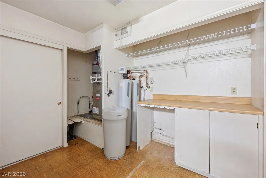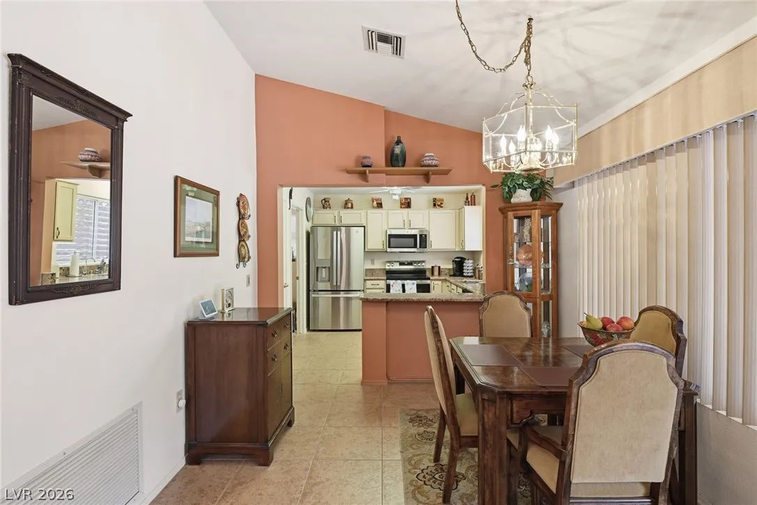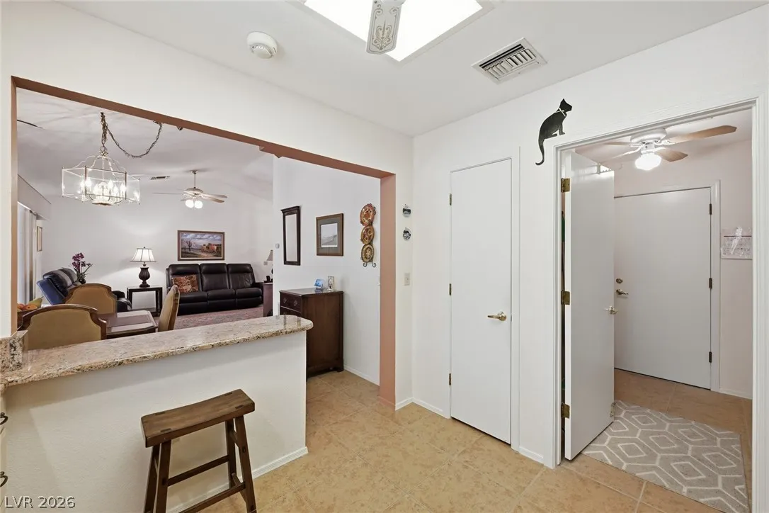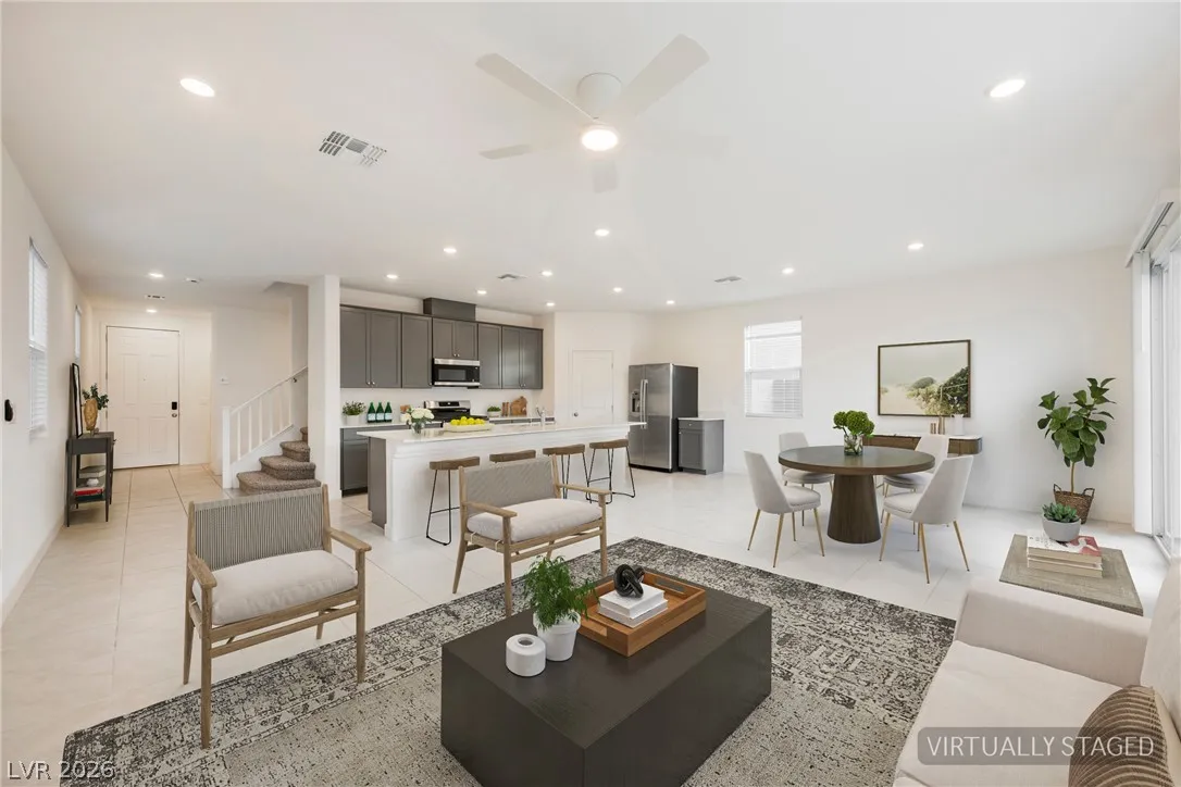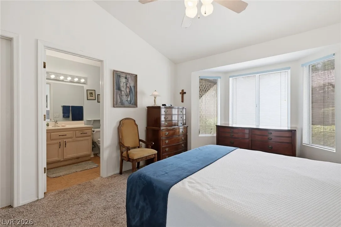 Welcome to this charming single story home in the highly sought after Sun City Summerlin 55+ community. This well maintained residence features 2 bedrooms, 2 bathrooms, and a bright, open layout with spacious living and dining areas. The kitchen offers ample cabinetry, a breakfast bar, and great natural light. The primary suite includes a walk-in closet and en suite bath with walk-in shower. Enjoy indoor laundry, a 2 car garage, and low maintenance desert landscaping. The private backyard is perfect for relaxing under the covered patio with lattice detail. Residents enjoy access to golf, clubhouse, fitness center, and numerous community amenities. A fantastic opportunity to enjoy resort style living in one of the premier active adult communities.