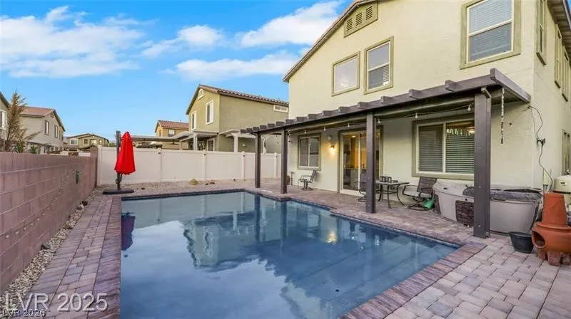 Absolutely stunning 4-bedroom, 2.5-bath, 2,419 sq ft two-story home in North Las Vegas! Built by DR Horton, this newer construction offers an open and functional floor plan with tile flooring downstairs and new carpet upstairs. Spacious great room perfect for entertaining, plus fresh interior paint throughout. The kitchen features stainless steel appliances, granite countertops, upgraded cabinets, and a large island/breakfast bar. Upstairs includes a versatile loft for additional living space. Oversized primary suite with walk-in closet and en-suite bath with separate tub and shower. Enjoy the covered patio and sparkling pool, plus a 2-car garage. Community features park and BBQ area, with easy access to the VA hospital and 215 Beltway. VA assumable loan with a 2.25% interest rate—approx. $1,708.71/month payment! A must-see!