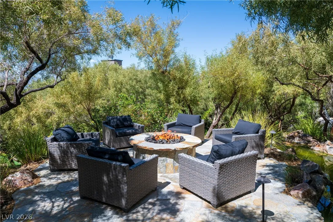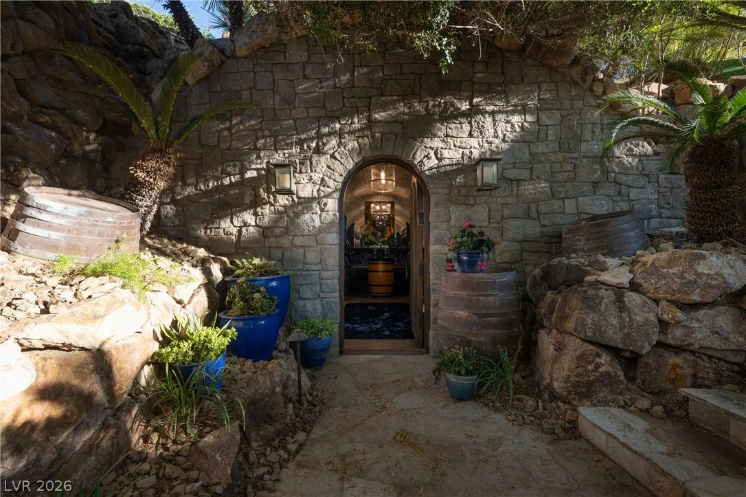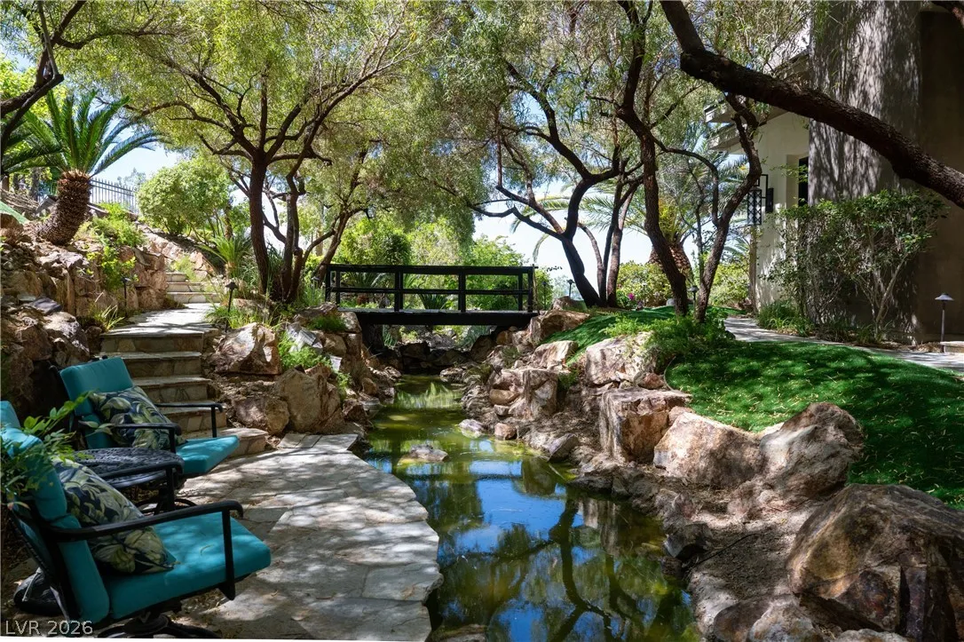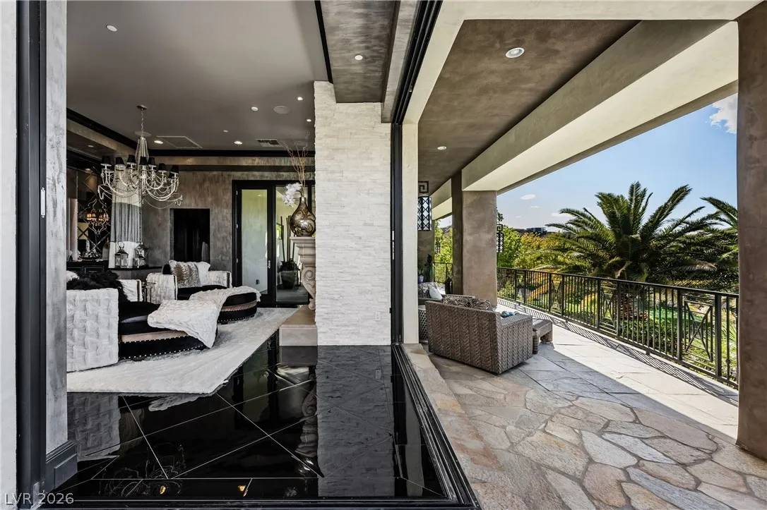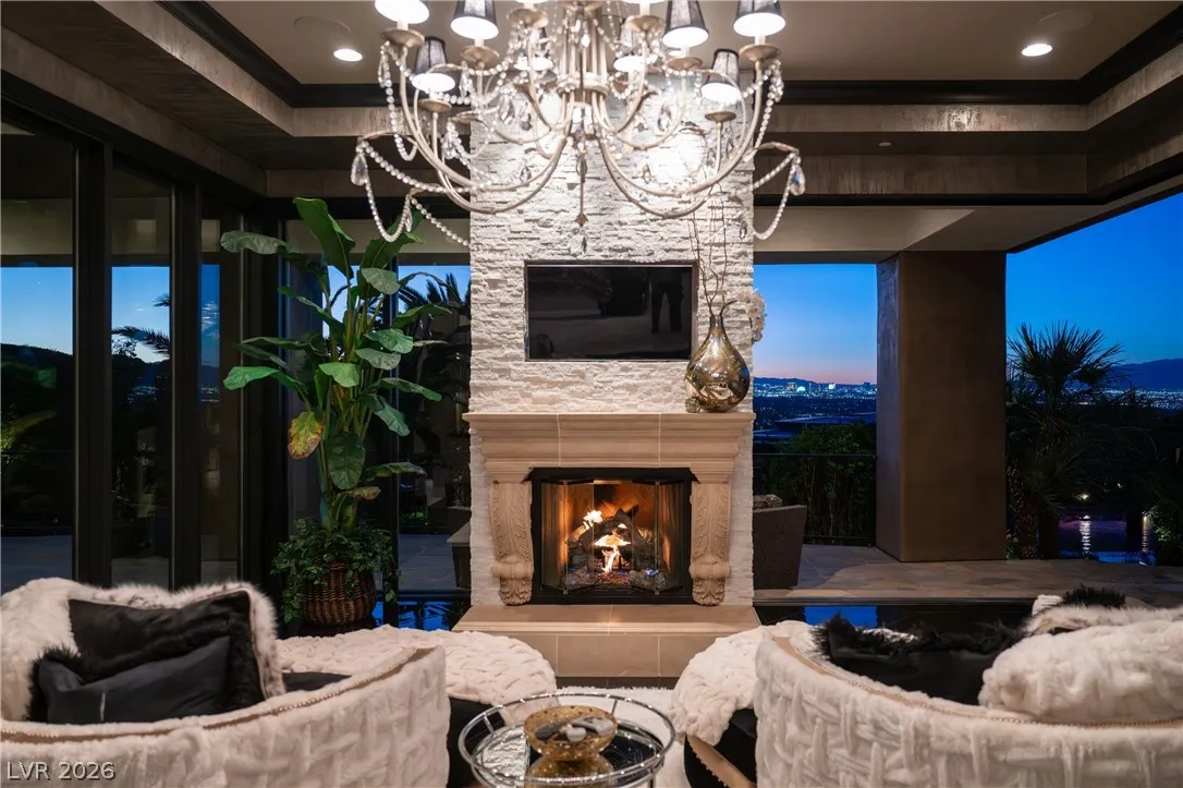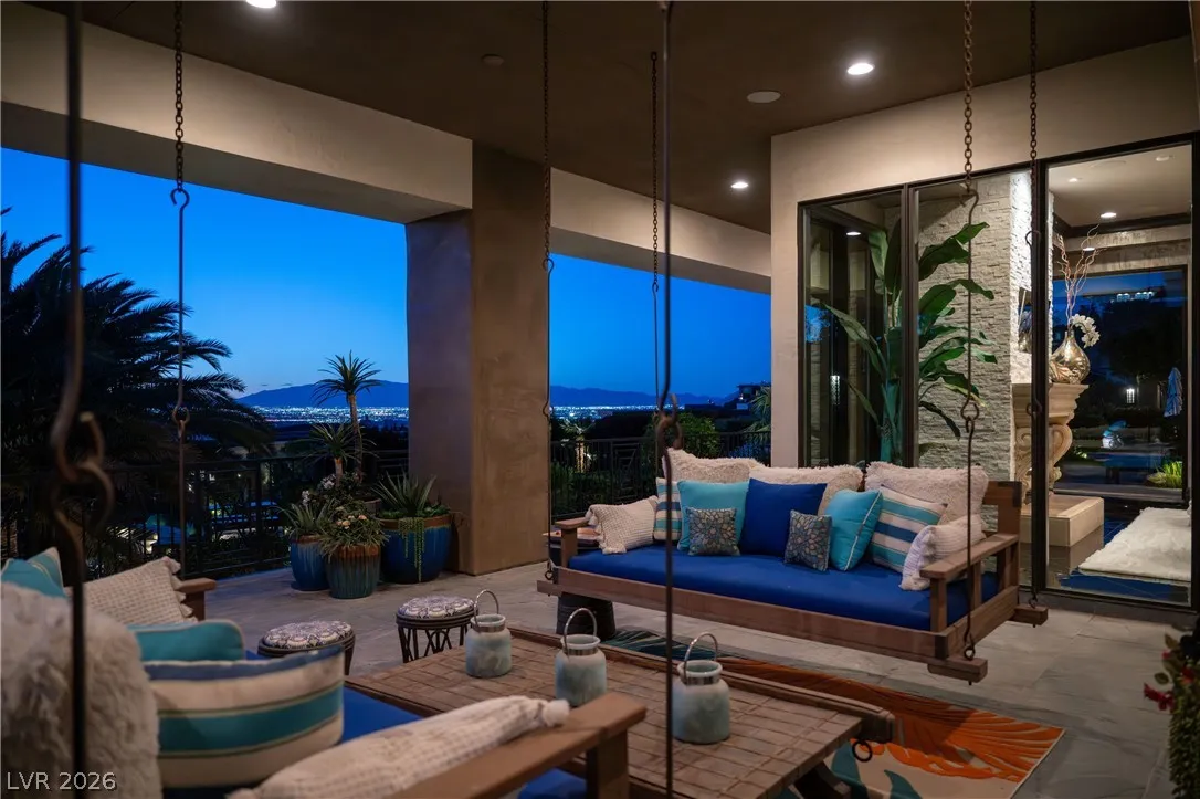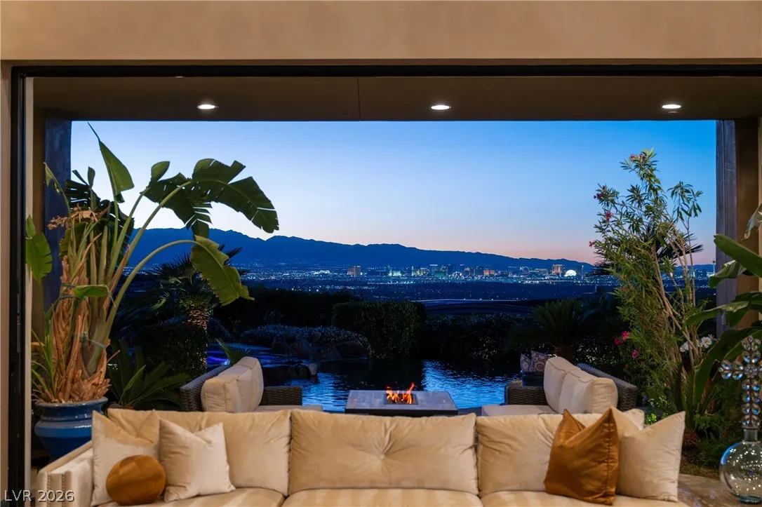 Step into a realm where luxury meets the sky. This 6-bedroom masterpiece frames unobstructed Las Vegas Strip views through floor-to-ceiling retractable glass, merging indoor elegance with an outdoor oasis. A grand staircase and sacred Tibetan stone fireplace anchor the living space, while the gourmet kitchen — with its extended island, butler’s pantry, and cocktail bar — invites culinary artistry. Retreat to the primary suite, featuring a private coffee bar, fireside sitting area, and panoramic balcony. Outside, a resort awaits: 2 pools, 2 spas, 7 cascading waterfalls, and an outdoor kitchen. Indulge in the 12-seat theater, wellness wing with steam/sauna, gym, and wine grotto. Set within the prestigious, guard-gated MacDonald Highlands, this estate offers an exclusive lifestyle defined by privacy, security, and world-class amenities. Opportunities to own a sanctuary of this magnitude, complete with a 7-car garage and multi-gen ensuites, are exceedingly rare. A true entertainer’s dream.