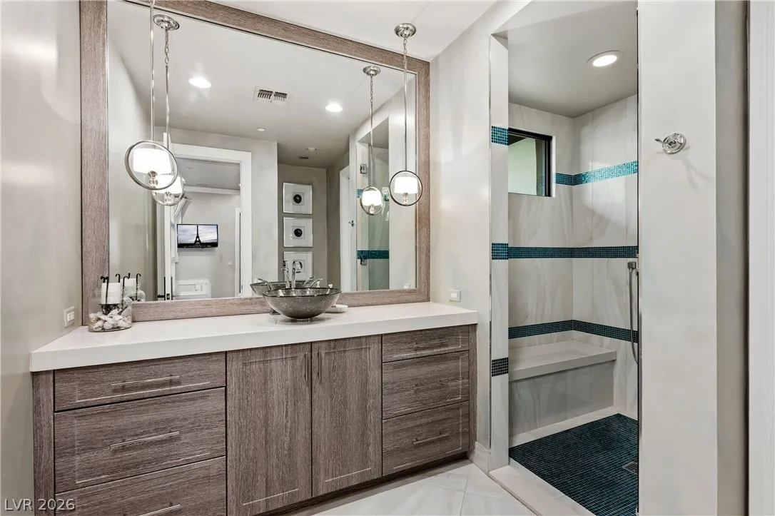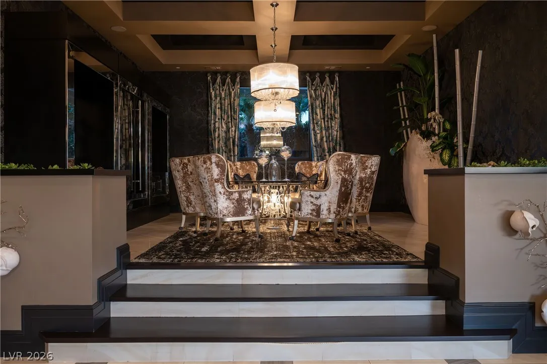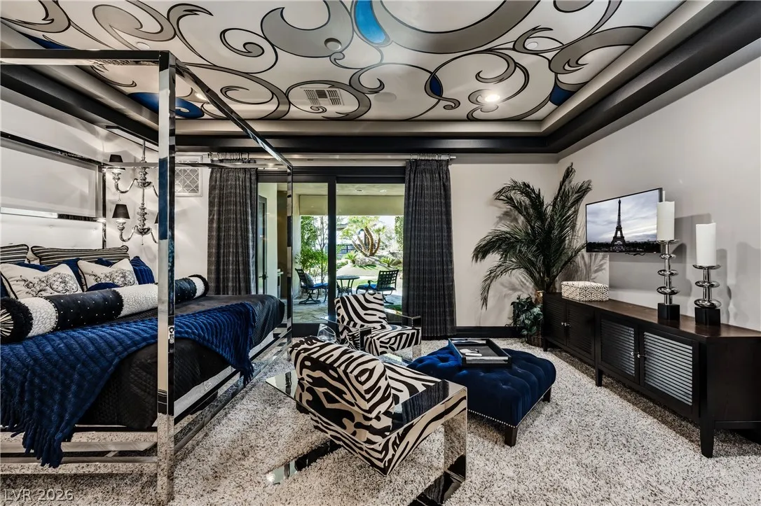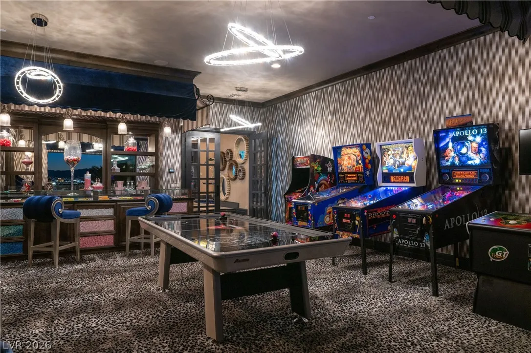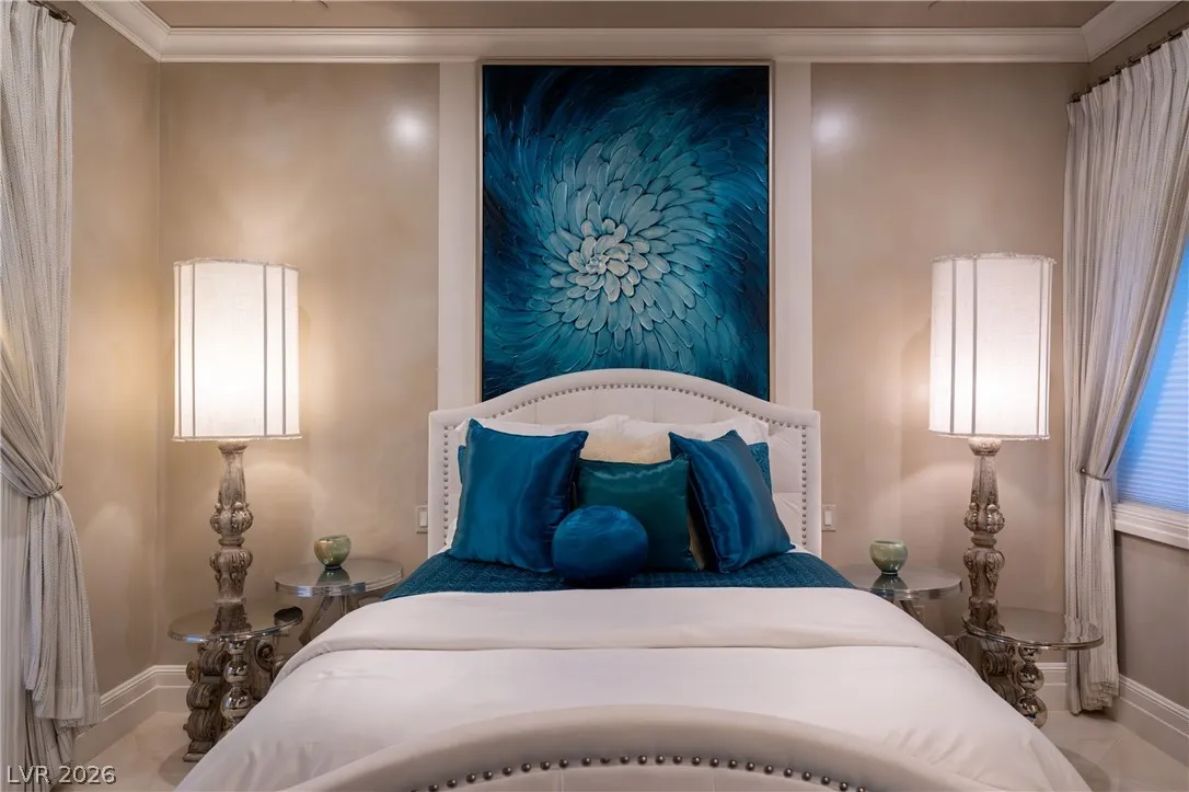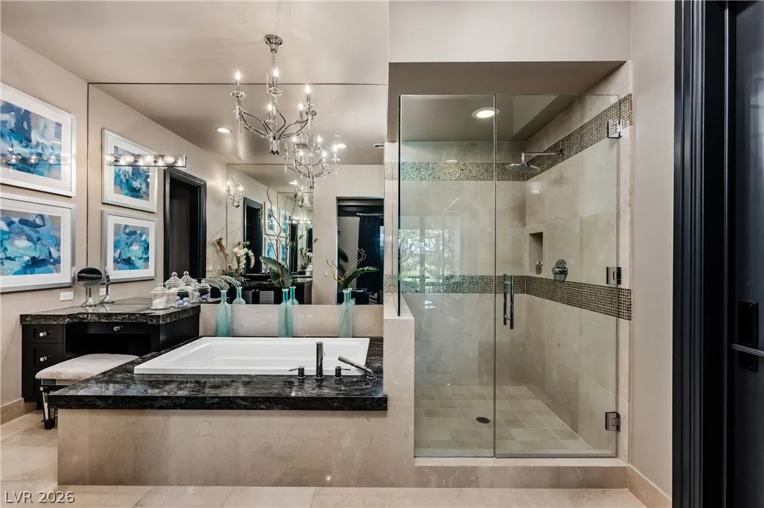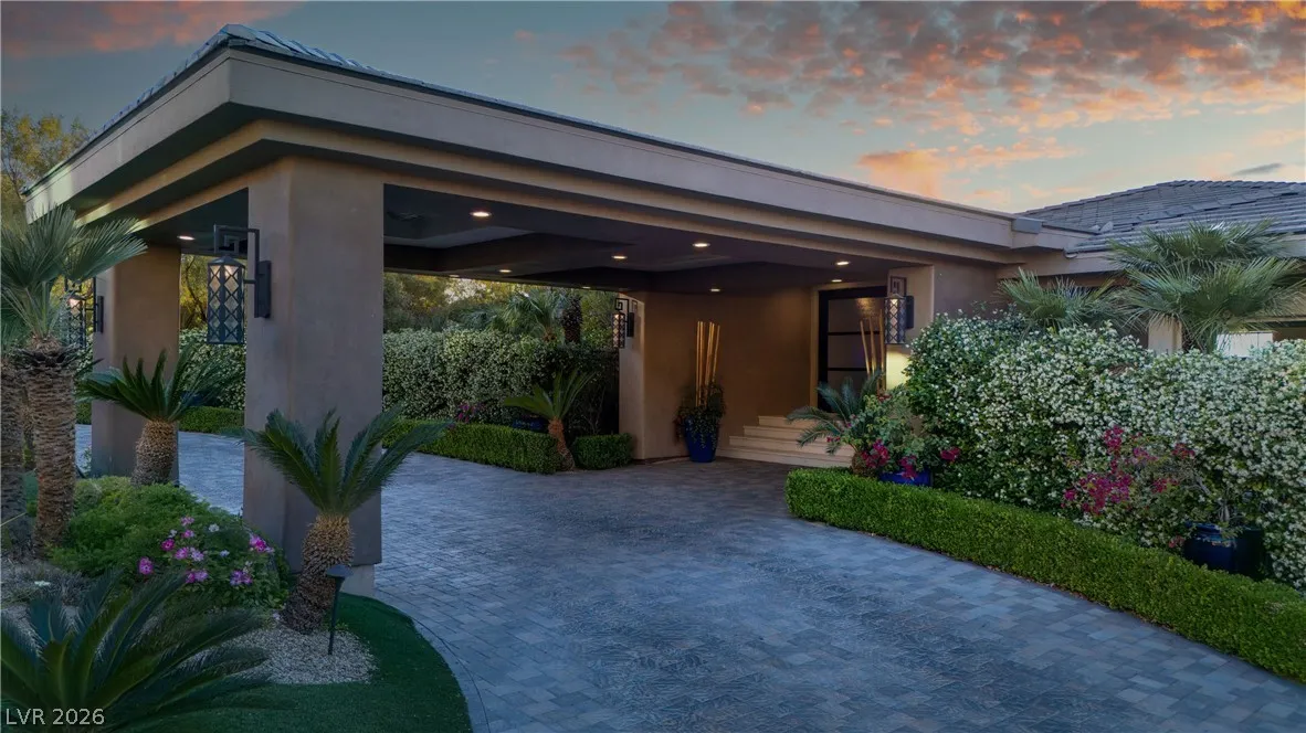 Step into a realm where luxury meets the sky. This 6-bedroom masterpiece frames unobstructed Las Vegas Strip views through floor-to-ceiling retractable glass, merging indoor elegance with an outdoor oasis. A grand staircase and sacred Tibetan stone fireplace anchor the living space, while the gourmet kitchen — with its extended island, butler’s pantry, and cocktail bar — invites culinary artistry. Retreat to the primary suite, featuring a private coffee bar, fireside sitting area, and panoramic balcony. Outside, a resort awaits: 2 pools, 2 spas, 7 cascading waterfalls, and an outdoor kitchen. Indulge in the 12-seat theater, wellness wing with steam/sauna, gym, and wine grotto. Set within the prestigious, guard-gated MacDonald Highlands, this estate offers an exclusive lifestyle defined by privacy, security, and world-class amenities. Opportunities to own a sanctuary of this magnitude, complete with a 7-car garage and multi-gen ensuites, are exceedingly rare. A true entertainer’s dream.
