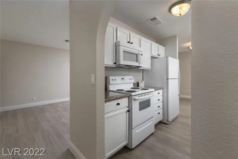 Welcome to this beautiful 2 Bedroom and 2 Bath Condo in Northwest Vegas! Located in the vibrant city of Las Vegas, this condo offers a modern and stylish living experience. Step inside and be greeted by the modern style plank flooring that adds a touch of elegance to the space. The Roman bathtub in the primary bathroom provides a luxurious and relaxing experience after a long day. The modern paint throughout the condo creates a fresh and inviting atmosphere. The 5″ floor base molding adds a sophisticated touch to the overall design. The kitchen boasts granite countertops, perfect for preparing meals and entertaining guests. With spacious living areas, you’ll have plenty of room to relax and unwind. The gated community ensures your safety and privacy, providing peace of mind.Take a dip in the community pool or indulge in the community spa offering a refreshing escape from the desert heat.This condo is the perfect place to call home offering a combination of comfort, style & convenience.