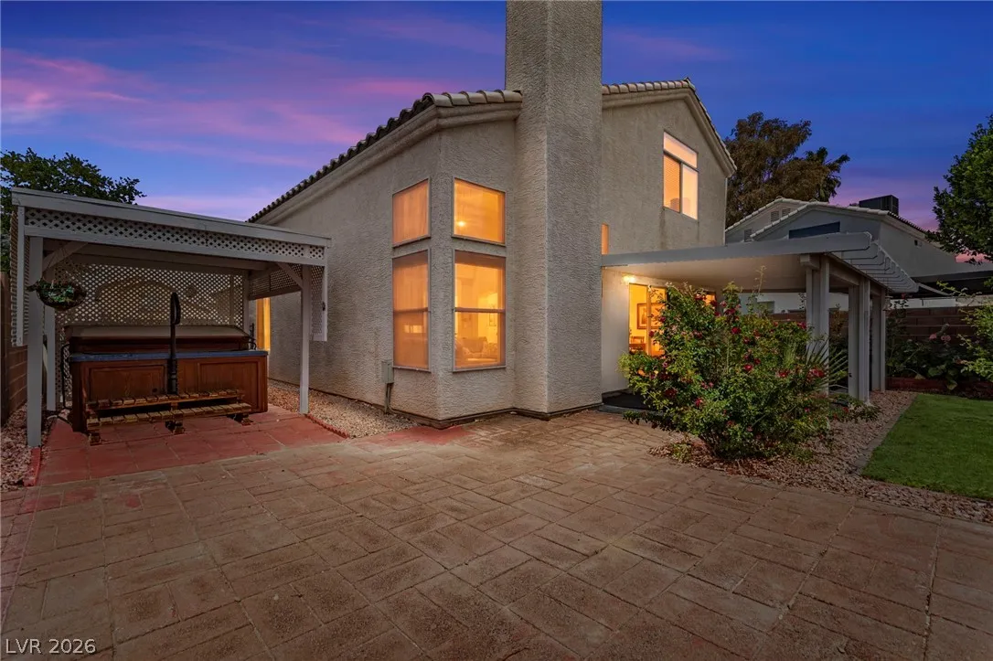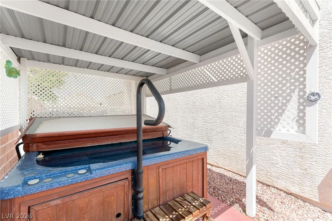 Beautifully maintained home situated on a large corner lot with custom gate and fencing, offering privacy and curb appeal. This inviting property features a covered patio, hot tub with gazebo, and a spacious backyard designed for relaxation and entertaining. Inside, you’ll find an open-concept downstairs layout with hardwood flooring, a cozy family room with fireplace, and an open staircase that enhances the airy feel. The kitchen is both charming and functional, showcasing stainless steel appliances and granite countertops. A bedroom and 3/4 bath on the main level provide convenient flexibility for guests or multi-generational living. Upstairs, the large primary suite includes a walk-in closet, ceiling fan, and a well-appointed bath with a walk-in tub and separate shower. The secondary bathroom offers dual access from both upstairs bedrooms. Additional highlights include new carpet, a security door, and a thoughtfully designed layout that blends comfort and functionality throughout.