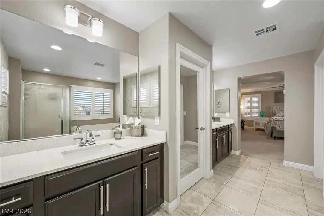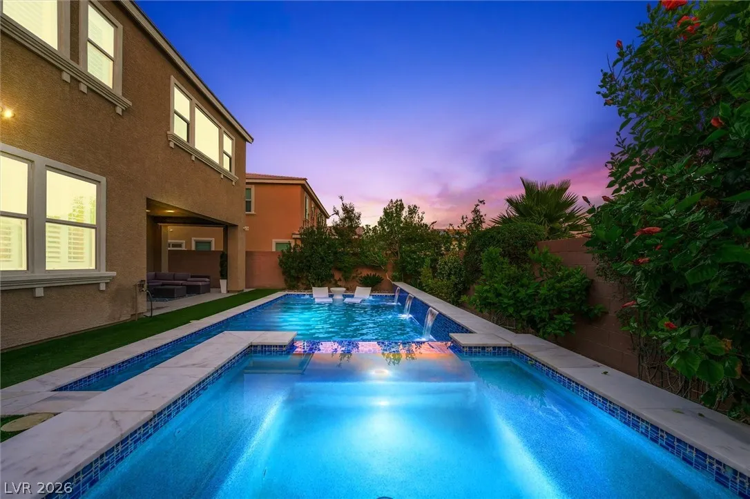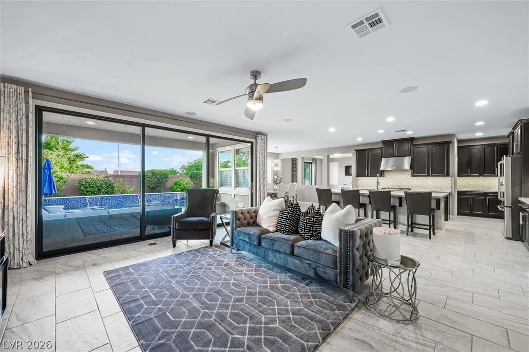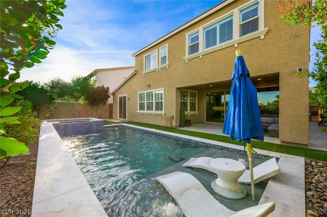 BEYOND STUNNING & IMMACULATE! 4 Bedroom, 3 Bath, 4 CAR GARAGE, POOL & SPA with DOWNSTAIRS BEDROOM & BATH! Prime Location, quiet cul-de-sac, NO REAR NEIGHBORS in a GATED Community! Open Layout, Upgraded Tile Flooring, Newly Painted Interior, SHUTTERS, SURROUND SOUND in BOTH Living Room & COVERED PATIO, First-Floor FLEX SPACE + Spacious Upstairs LOFT. EXPANSIVE CHEF’S KITCHEN w/OVERSIZED ISLAND, GRANITE COUNTERS, STAINLESS STEEL APPLIANCES, BACKSLASH, UNDER-CABINET LIGHTING, WALK-IN PANTRY. 15-FT STACKING SLIDING GLASS DOOR in Living Room. Modern Barn Door in Primary Suite w/Tub & Separate Shower, Dual Vanities, CUSTOM BUILT IN CLOSET. Upstairs Laundry Room w/Cabinets. EPOXY FLOOR in Garage, Built in EV CHARGER, Storage Racks. BACKYARD OASIS! HEATED SALTWATER POOL & SPA w/Upgraded Marble, Glass Tile, Stone, PebbleTec & Wireless Technology. Low-maintenance Landscaping & Fruit Trees. SEPARATE GATED DOG RUN w/NEW Turf. Ring Camera System Included. Close to Parks, Schools Shopping & Freeway.