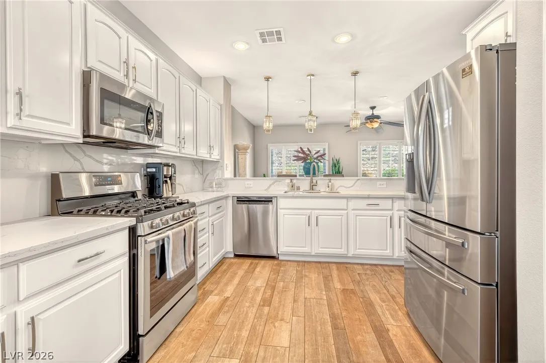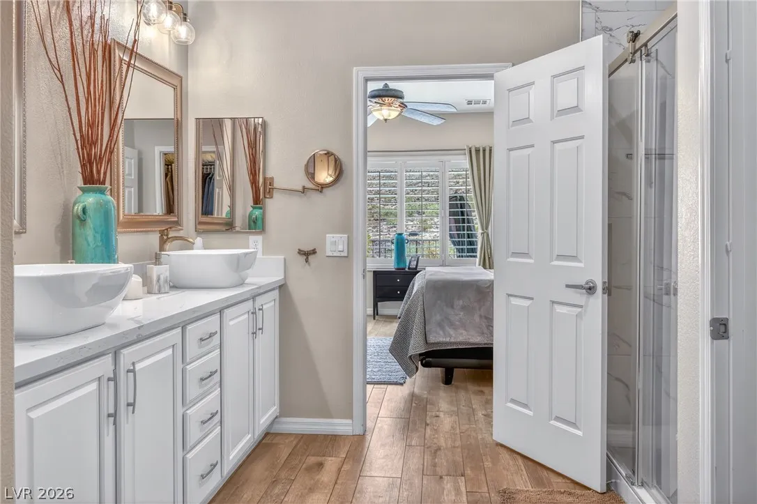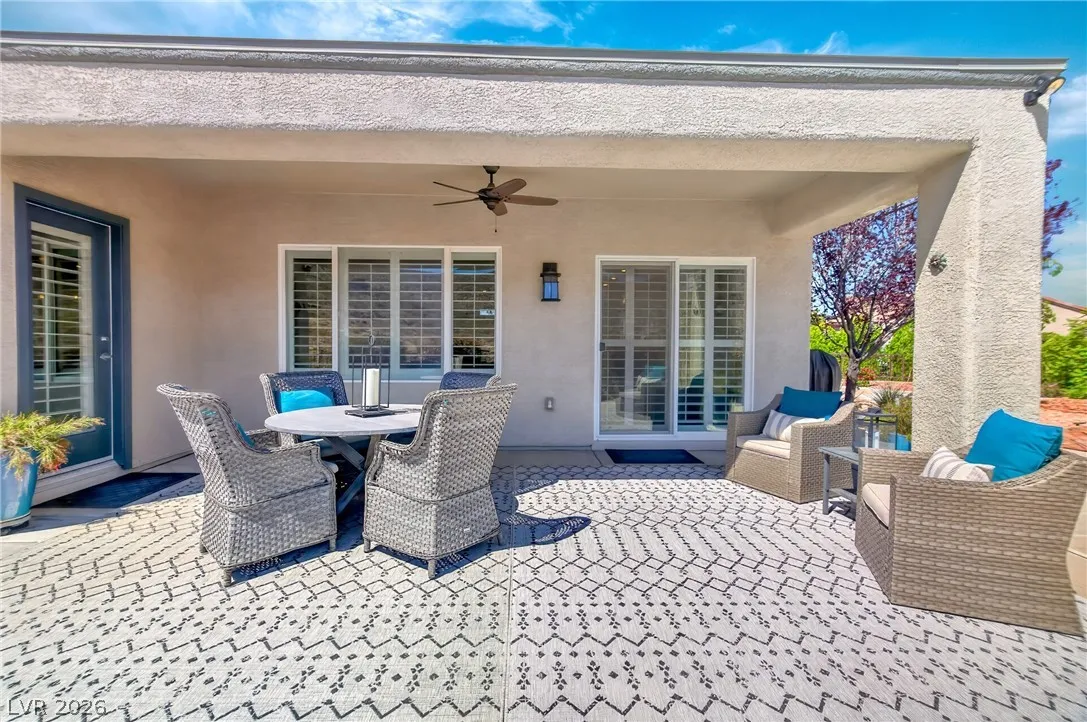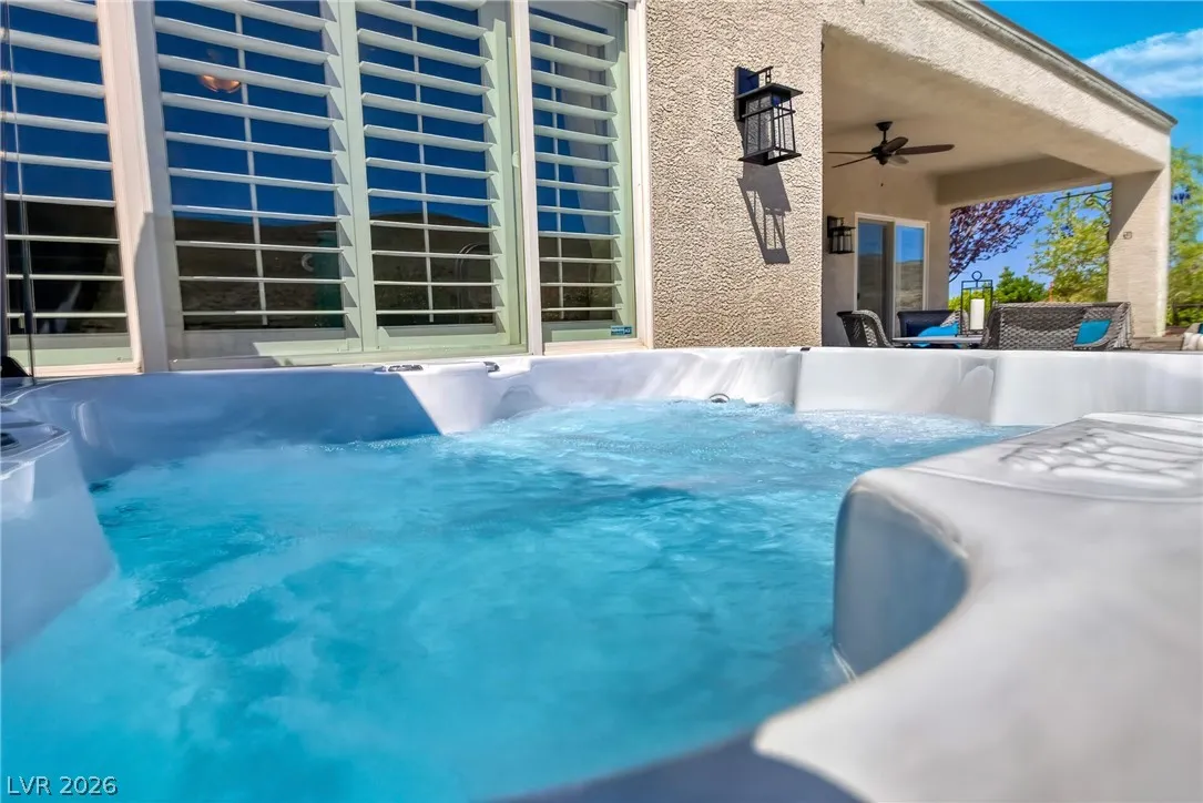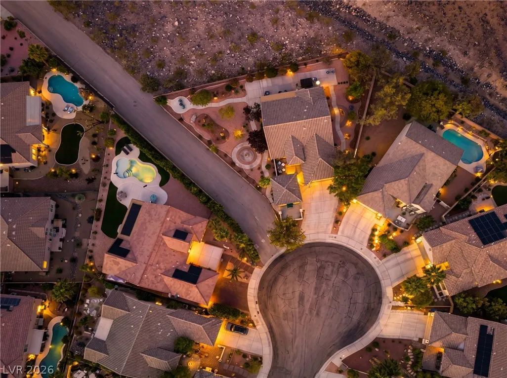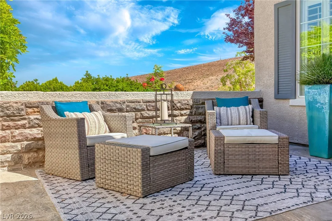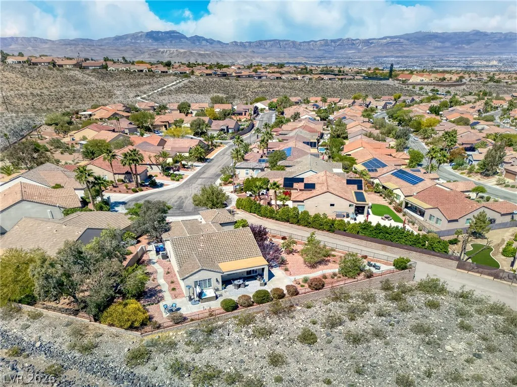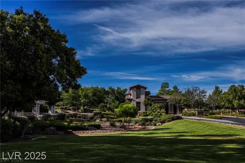 Meticulous, premium home nestled in the hills of Henderson, offering a truly one-of-a-kind opportunity. Positioned at the top of a private cul-de-sac, this residence delivers exceptional privacy and an elevated setting with stunning surroundings. Pride of ownership is evident throughout, with every detail maintained to perfection, creating a desert oasis with lush accents and calming ambiance. This model-esque home showcases a refined designer’s touch across both the interior and exterior, complemented by thoughtfully selected landscaping and tranquil water features that enhance the ambiance. Situated on a rare 10,000+ sq ft lot, the property captures breathtaking mountain views. Dual courtyards create a warm and inviting flow—one leading to the private casita and the other tucked between the casita and main home, offering added privacy and seclusion. Scenic hiking trails begin just steps away, while elegant twilight lighting transforms the grounds each evening into a stunning retreat.