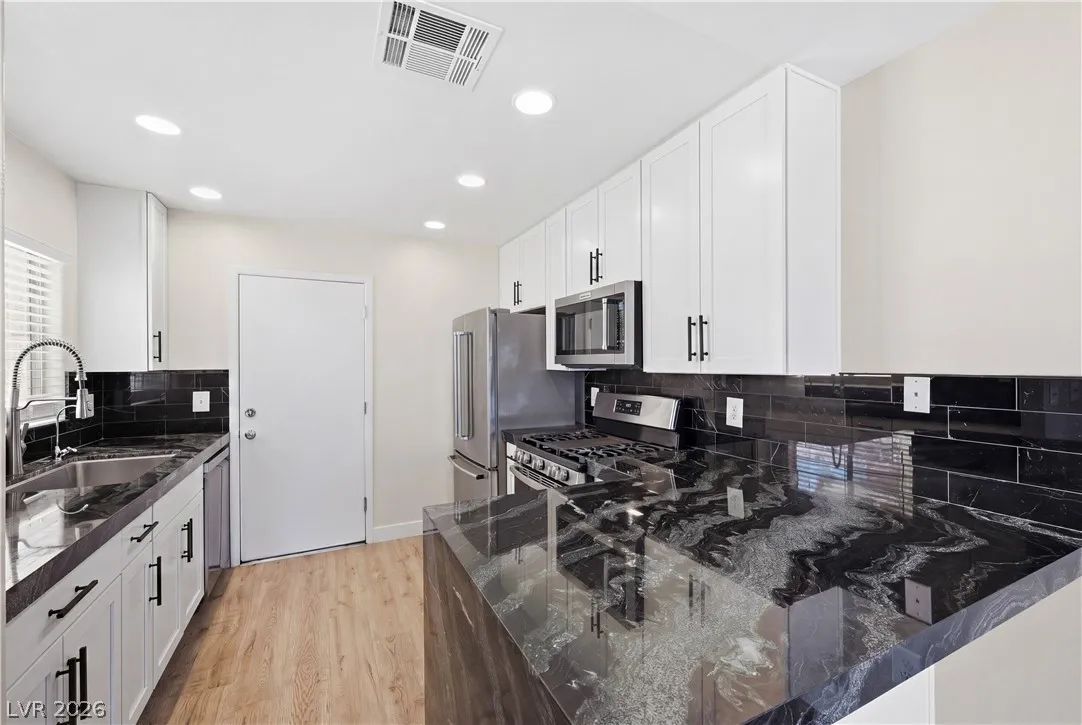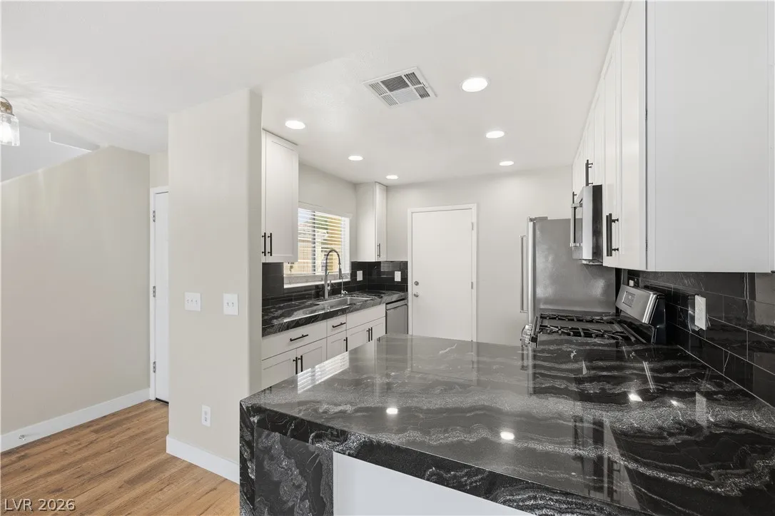 Fully remodeled 2-story townhome featuring 3 bedrooms (one down with walk in shower bathroom) and an open-concept great room floorplan. Stunning newly renovated kitchen with white shaker cabinets, updated hardware, waterfall-edge granite countertops, and matching custom backsplash. Bathrooms have been completely rebuilt with luxury tile, frameless glass enclosures, eye popping backsplashes and illuminated mirrors. Fresh interior paint and new luxury vinyl plank flooring run throughout the entire home. Well-maintained with ceiling fans in all rooms and added storage under the stairs. Washer and dryer included. Attached 1-car garage with direct access plus full driveway. Located in a gated community offering pool and spa amenities.