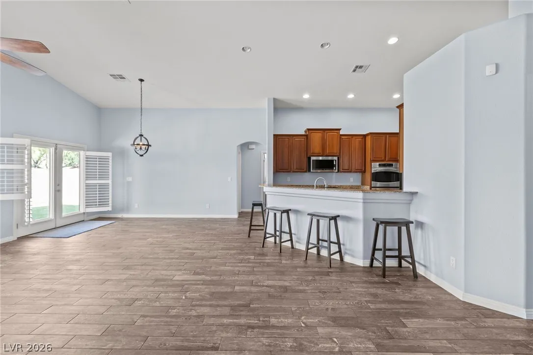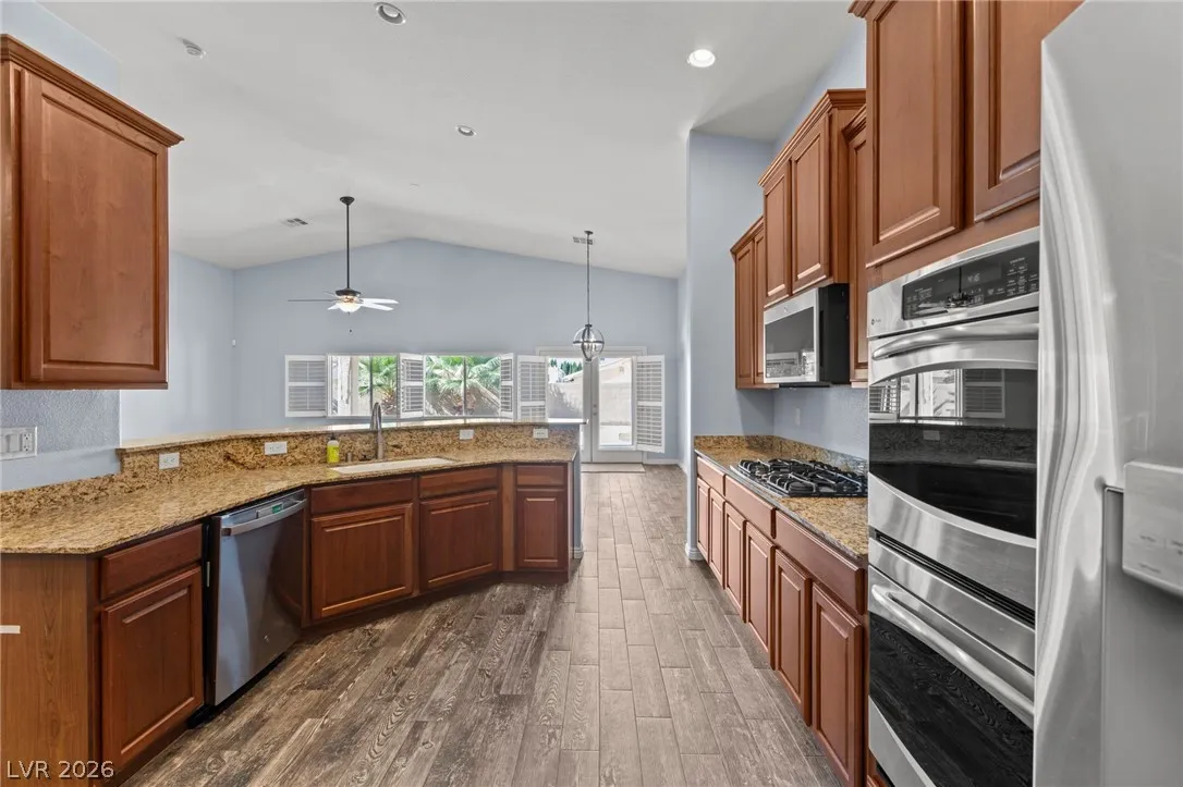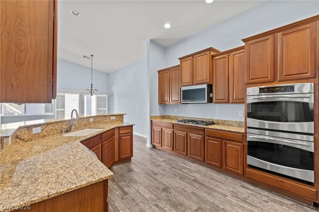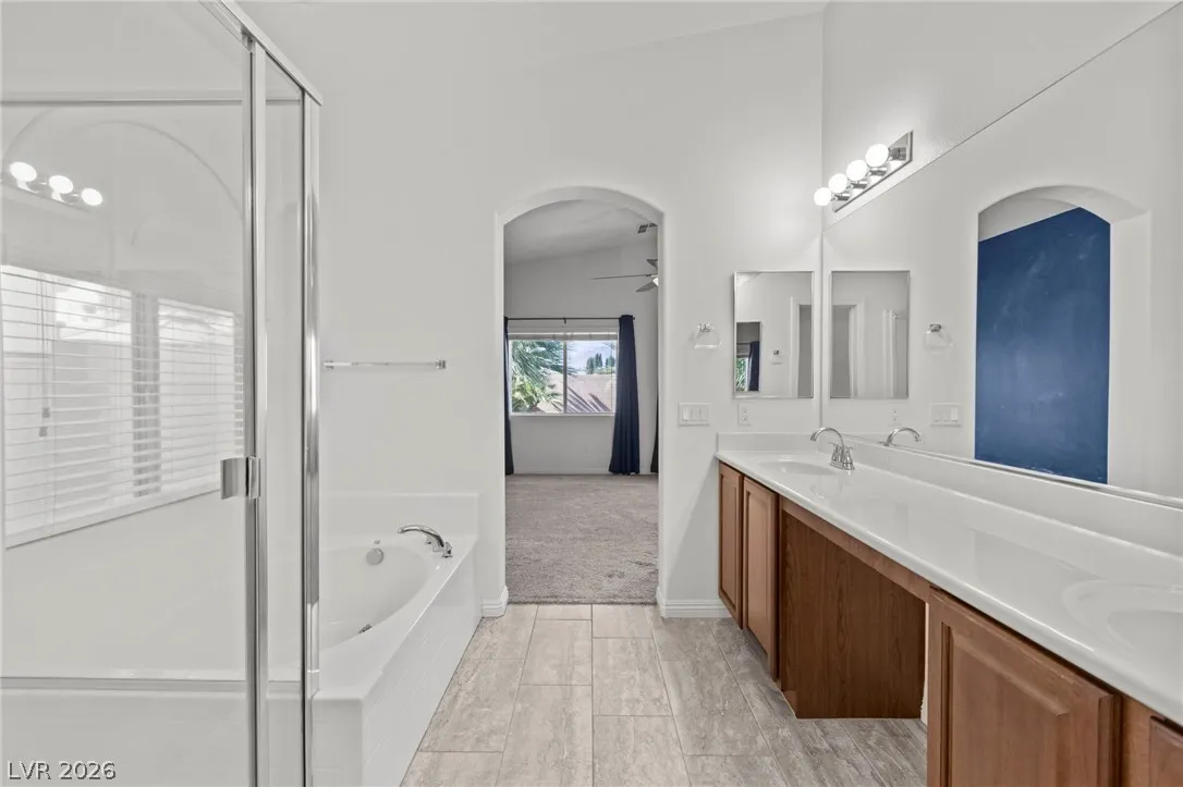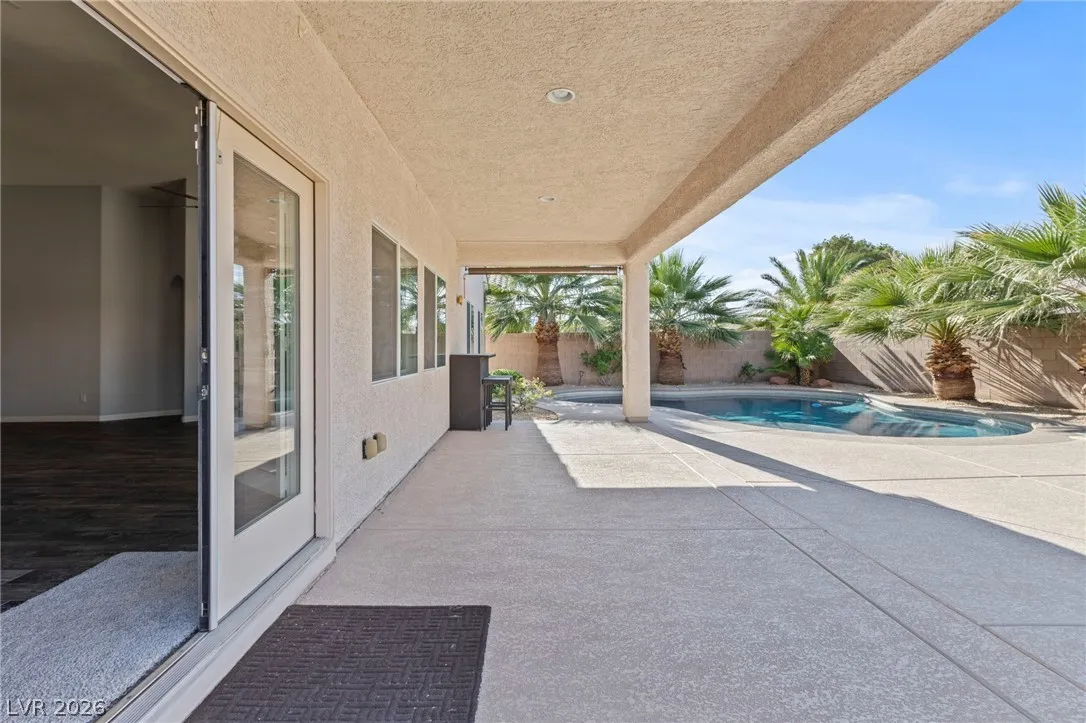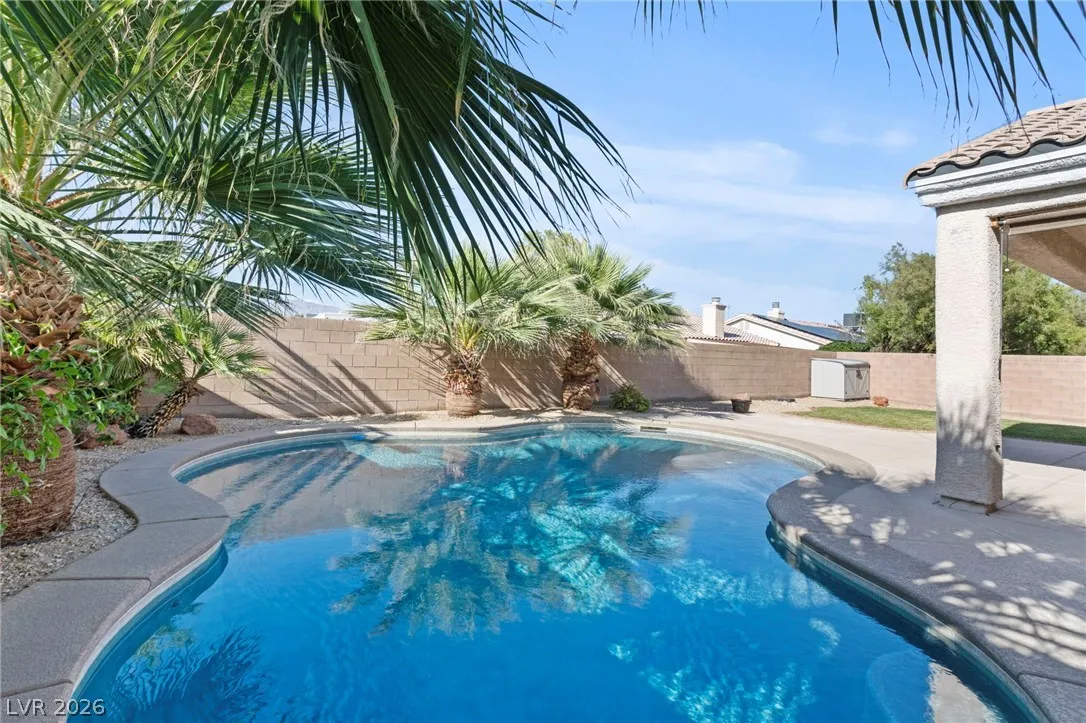Beautifully Appointed AndUpgraded Single-Story Home with Pool Located In A Gated Community In Las Vegas.This Four Bedroom, Three Car Garage Residence Offers An Open Floor Plan Designed For Comfortable Living And Entertaining.Centrally Located With Easy Access To Schools, Shopping, Freeways, Hiking And Biking Trails, And Just Minutes From The World-Class Entertainment Of The Las Vegas Strip. Interior Features Include Upgraded Flooring, Custom Paint Schemes, High Ceilings, And An Oversized Family Room.Chef’s Dream Gourmet Kitchen with Level 3 Granite Countertops, Stainess Steel Appliances, Double Ovens, Breakfast Bar, And A Spacious Dining Area. Dual Primary Suites Provide Flexible Living Options. Main Primary Features A Large Walk-In Closet, Spa-Like Bath With Separate Shower And Tub. Secondary Primary Includes A Private Bath Ideal For Guests Or Multi-Generational Living Private Backyard Oasis Features Covered Patio, Sparkling Pool,And Plenty Of Room To Relax Or Entertain Year-Round.