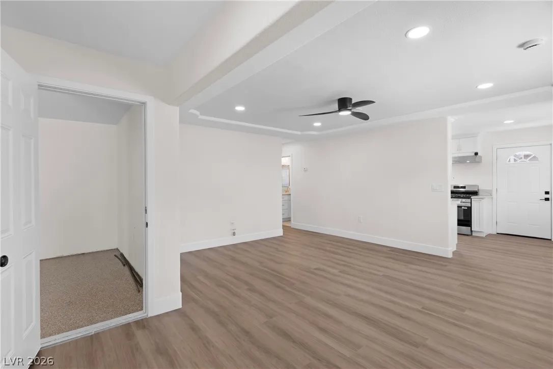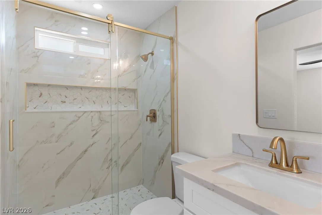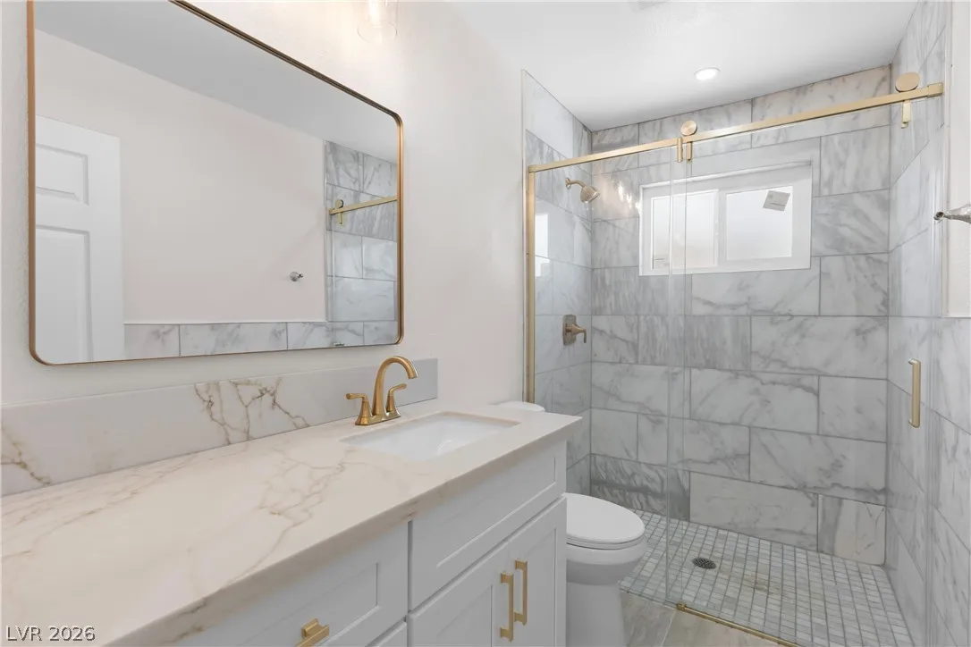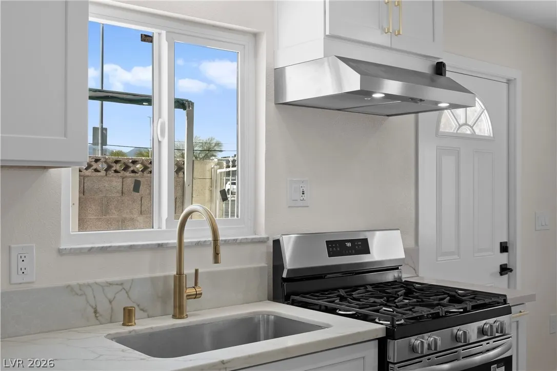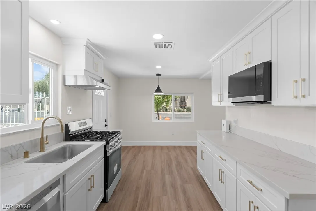 Beautiful completely remodeled home on a huge lot in the heart of the city and just minutes from The Strip! This stunning home features brand new windows, LVP flooring throughout, new exterior stucco, garage epoxy, new kitchen and bathroom cabinets with authentic stone countertops, tankless water heater, all upgraded electrical switches and outlets, LED lighting, upgraded bathroom floor and shower tile, new stainless steel microwave, dishwasher, gas stove, refrigerator, and more! The oversized backyard is a blank canvas for you to personally design and has more than enough room for a pool, sportcourt and more! Minutes from world class dining, parks and walking distance to Cashman Middle School!
