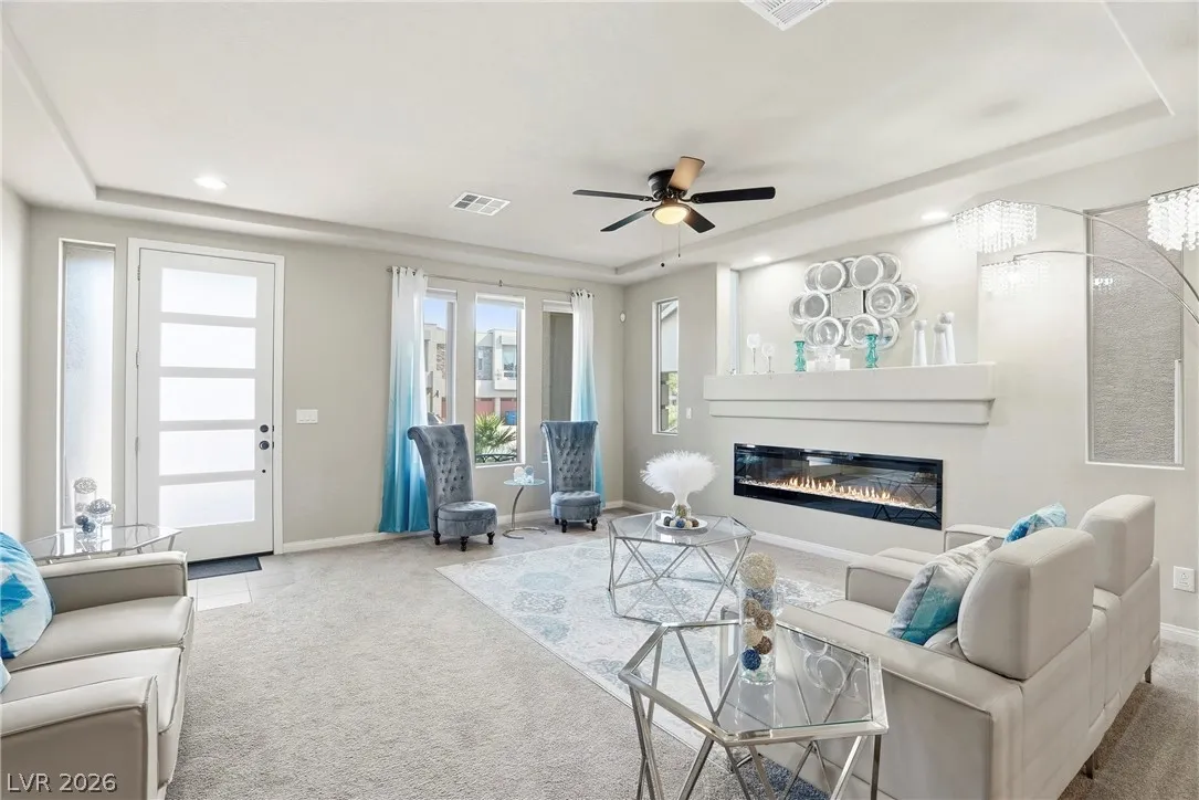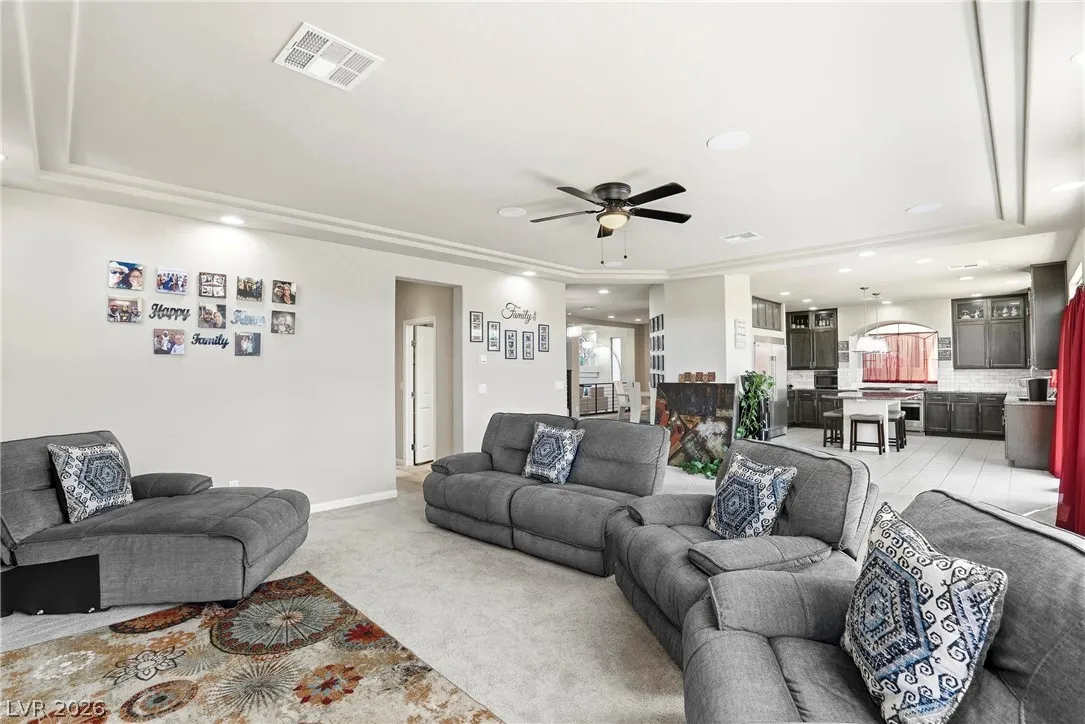 Stunning 5 bedroom, 4 bathroom home in Henderson, located on a cul-de-sac lot with RV parking and a 13′ RV gate—perfect for toys, trailers, or extra vehicles. Situated on one of the largest lots in the neighborhood, this move-in ready home offers no rear or side neighbors, mountain views, and exceptional privacy. Inside, enjoy open-concept living, expansive spaces, two electric fireplaces, and wired security and surround sound systems. The chef’s kitchen features double-stacked cabinetry, stainless steel appliances, and abundant storage. The oversized primary suite includes a spa-like en suite with rain shower, soaking tub, and generous space. Two sliding glass doors lead to a private, landscaped, low-maintenance backyard ideal for entertaining. Assumable 2.7% loan available for qualified buyers—rare financing opportunity!
