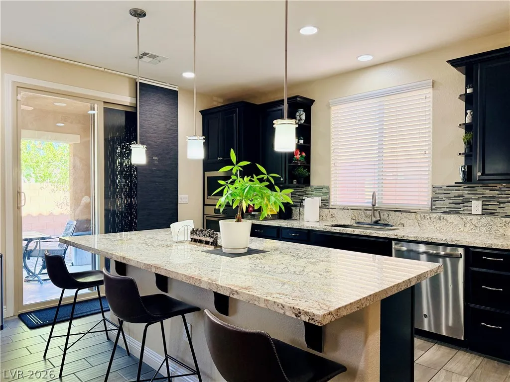 Step outside to a covered patio and a large backyard, providing plenty of space for outdoor entertaining or relaxing.