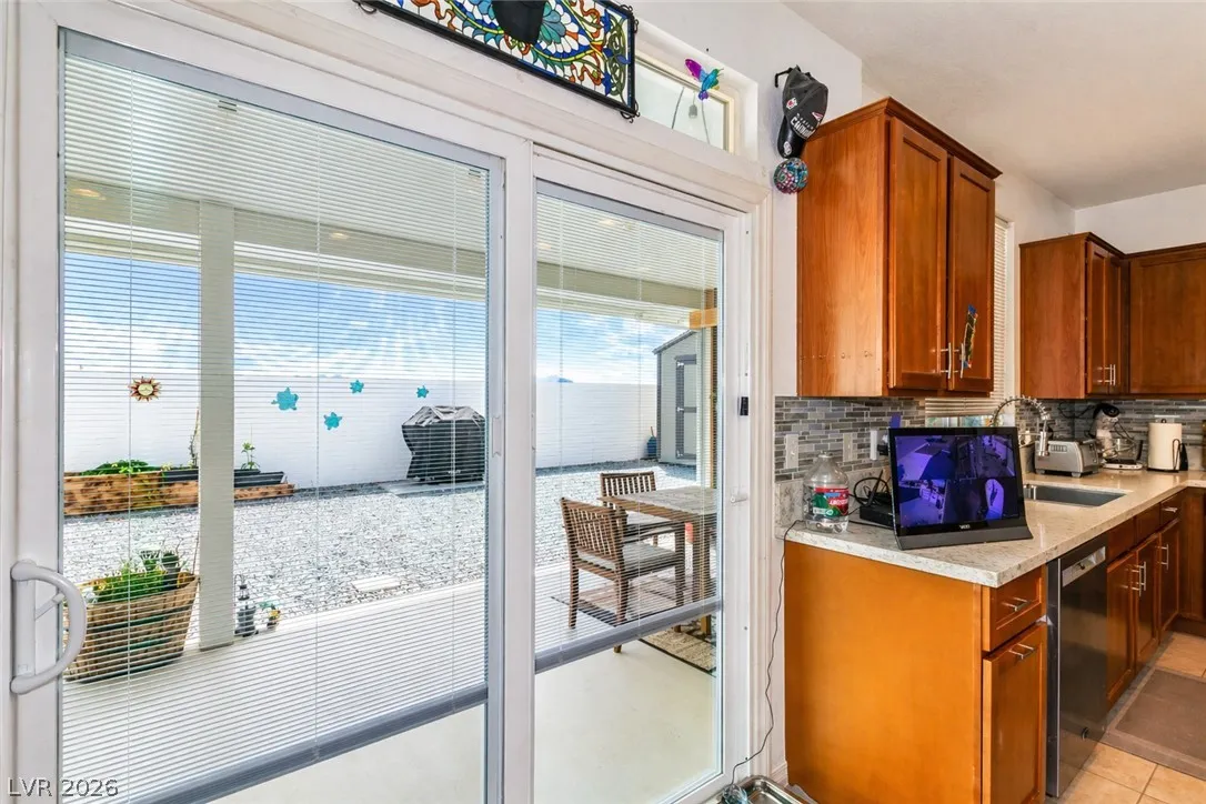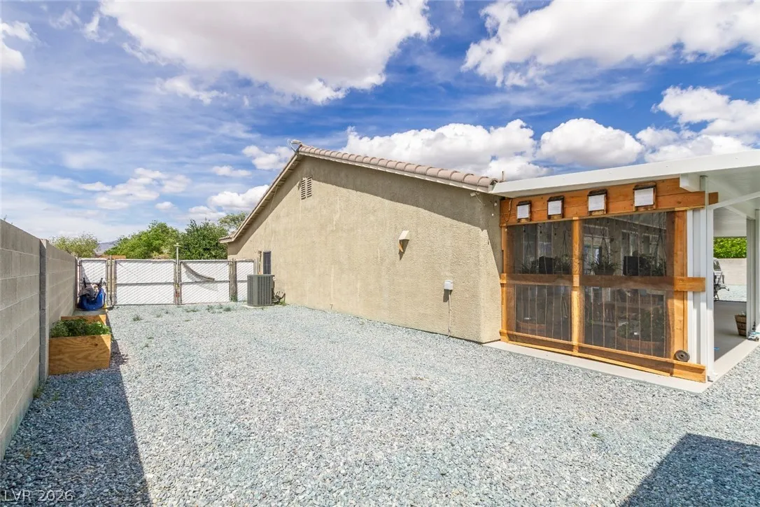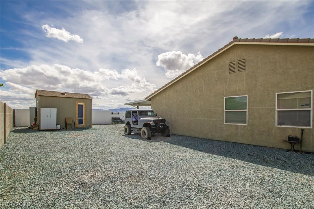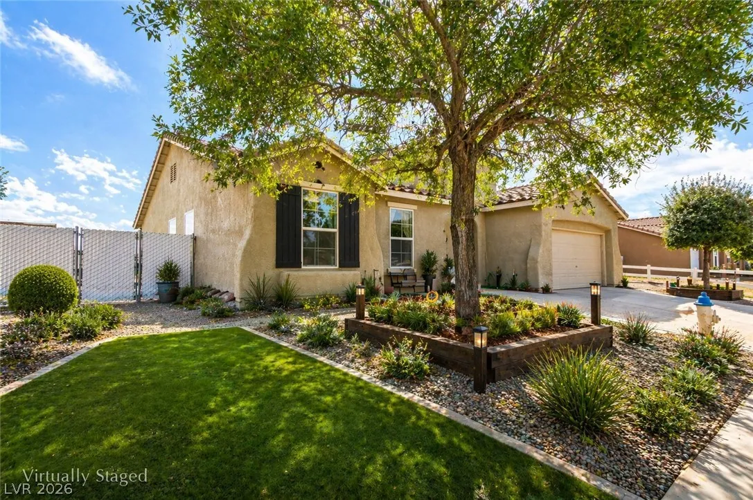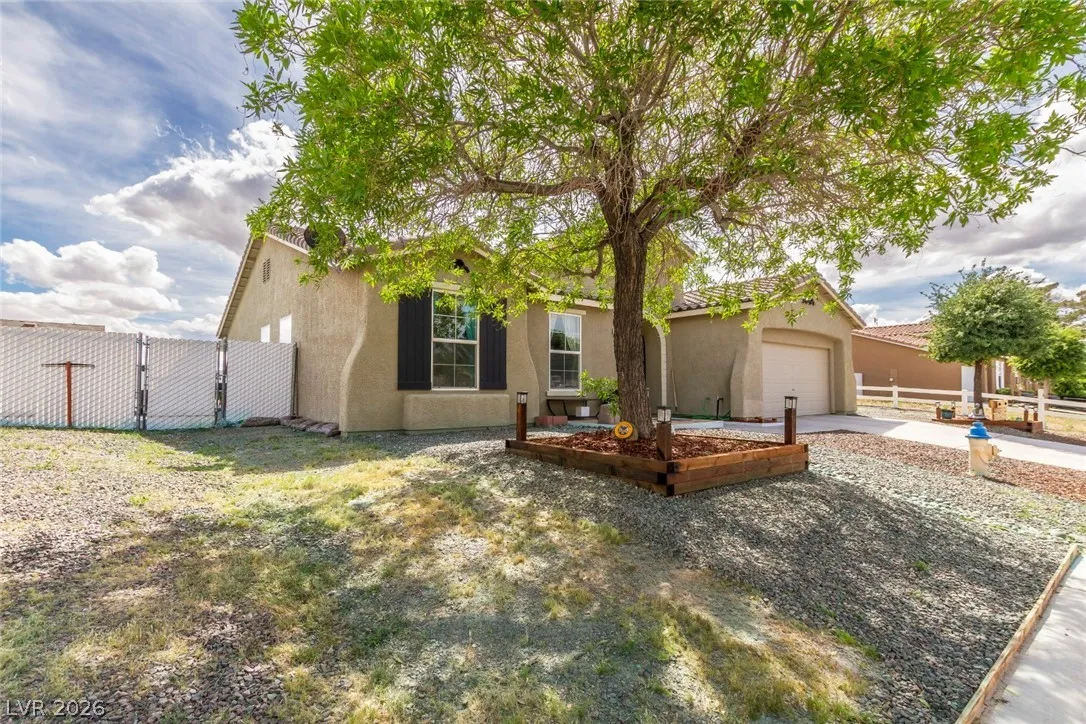 SINGLE STORY 4 BEDROOM GEM WITH RV PARKING!! Private backyard with no neighbors behind and a forever view of the mountains. All appliances included, stainless steel refrigerator, dishwasher, stove, and microwave. Quartz countertops and additional kitchen island make for great countertop prep space. OPEN FLOORPLAN AND NO CARPET!! Master bedroom separate from the secondary bedrooms, all with ceiling fans and window coverings. The backyard retreat features a full length covered patio and low maintenance desert landscaping. Extra value with owner including security camera system and monitor, high end water filtration system, and smart washer/ dryer. Laundry room includes a sink and cabinets. AC unit new in 2024.