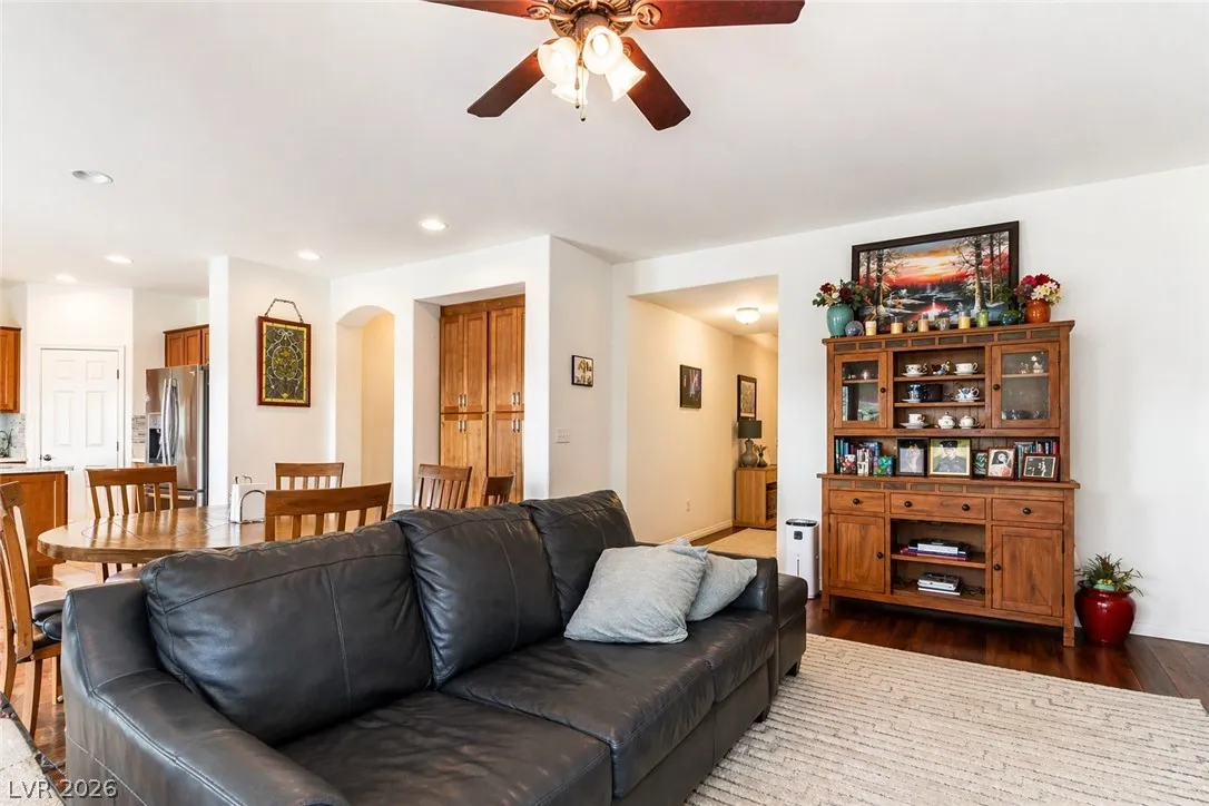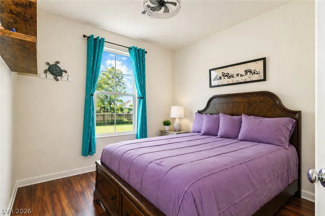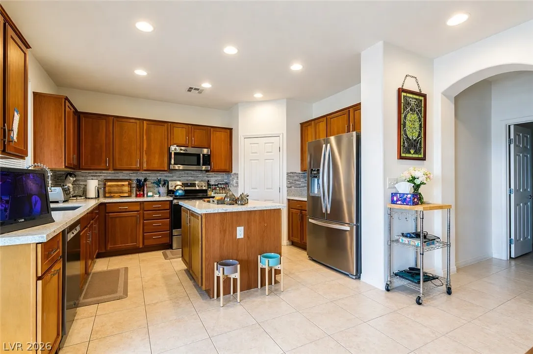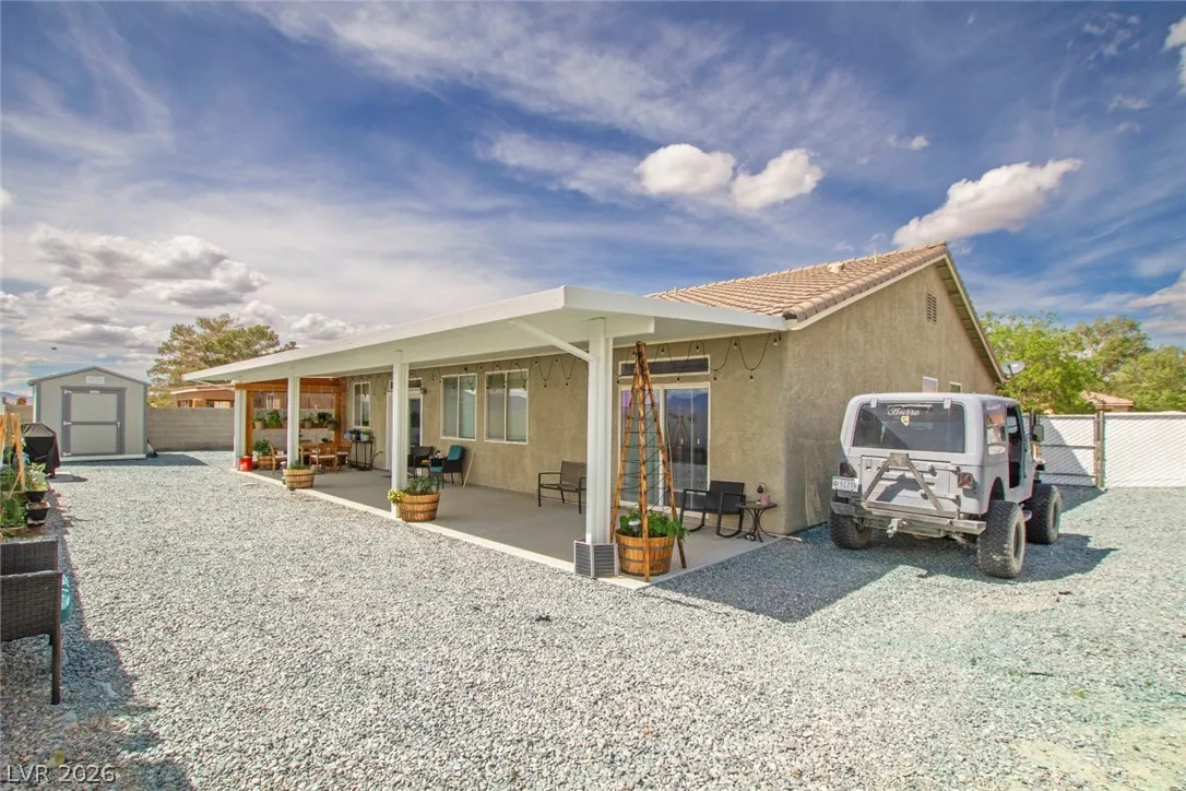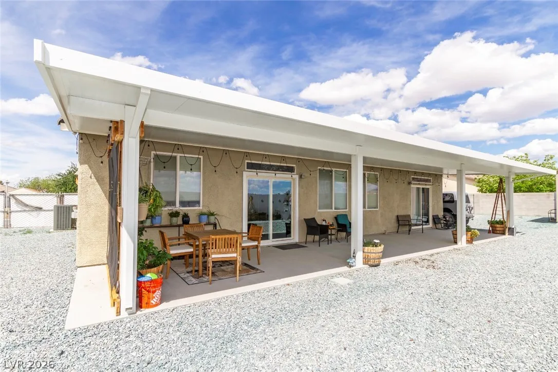 SINGLE STORY 4 BEDROOM GEM WITH RV PARKING!! Private backyard with no neighbors behind and a forever view of the mountains. All appliances included, stainless steel refrigerator, dishwasher, stove, and microwave. Quartz countertops and additional kitchen island make for great countertop prep space. OPEN FLOORPLAN AND NO CARPET!! Master bedroom separate from the secondary bedrooms, all with ceiling fans and window coverings. The backyard retreat features a full length covered patio and low maintenance desert landscaping. Extra value with owner including security camera system and monitor, high end water filtration system, and smart washer/ dryer. Laundry room includes a sink and cabinets. AC unit new in 2024.