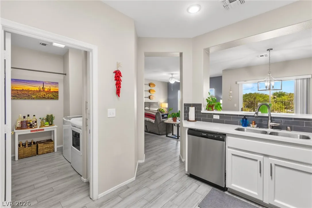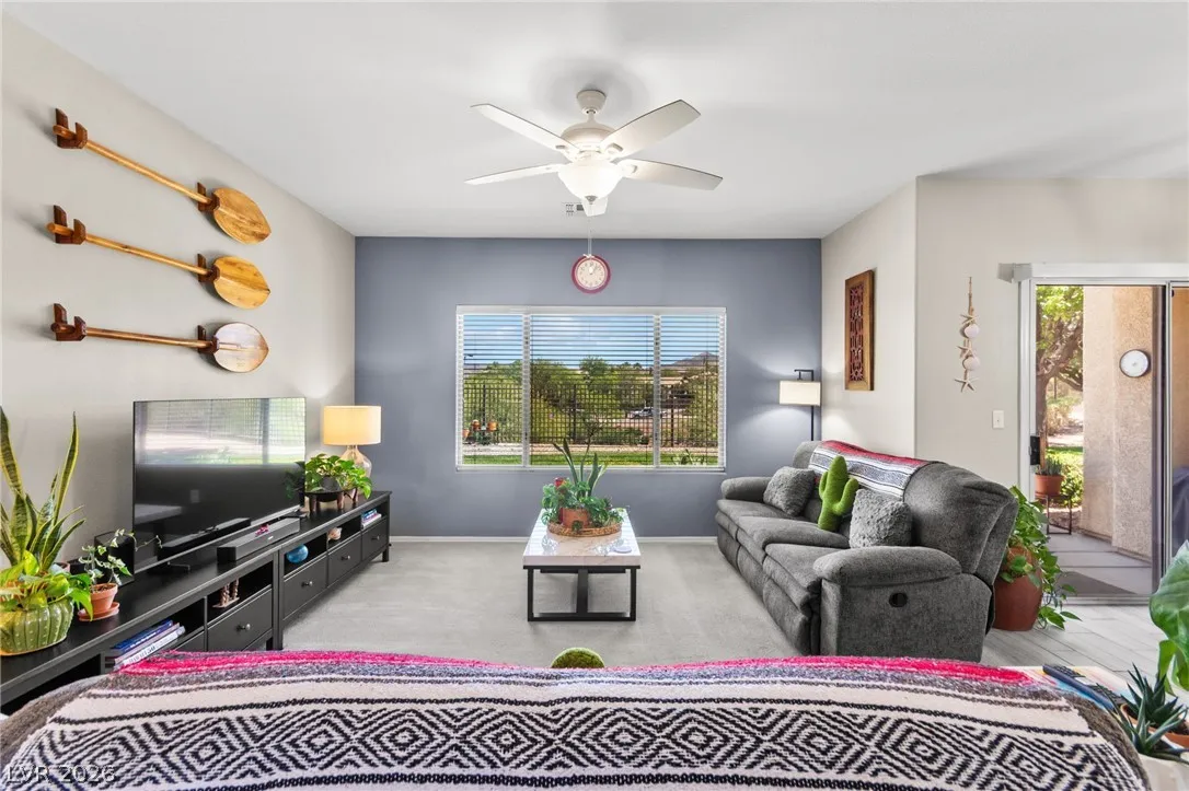 What a beauty in Sun City Anthem. This stunning villa offers incredible curb appeal and a fresh, updated feel throughout. Step inside to newly painted interiors with new tile flooring in the entry, kitchen, high traffic areas, and both bathrooms. The spacious great room flows seamlessly into the dining area and opens to a charming backyard with a covered patio, perfect for relaxing or entertaining. The kitchen shines with new quartz countertops, stainless steel appliances that stay, and a modern glass backsplash. Enjoy a separate laundry area with shelving, ceiling fans, blinds, and updated lighting throughout. The large primary suite features raised panel closet doors, a step in shower, and upgraded quartz counters. Both kitchen and baths include new sinks and faucets. HOA maintains exterior and landscaping. Residents enjoy access to three clubhouses with pools, tennis, racquetball, a theater, and more.